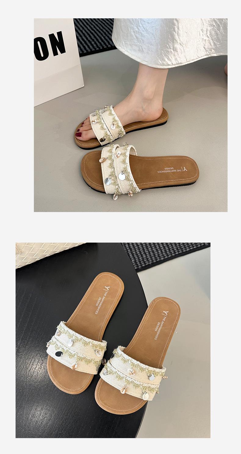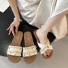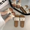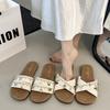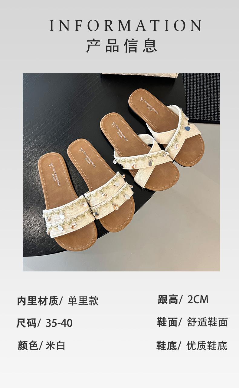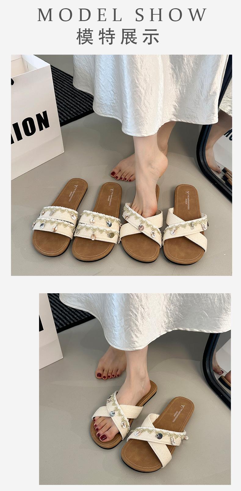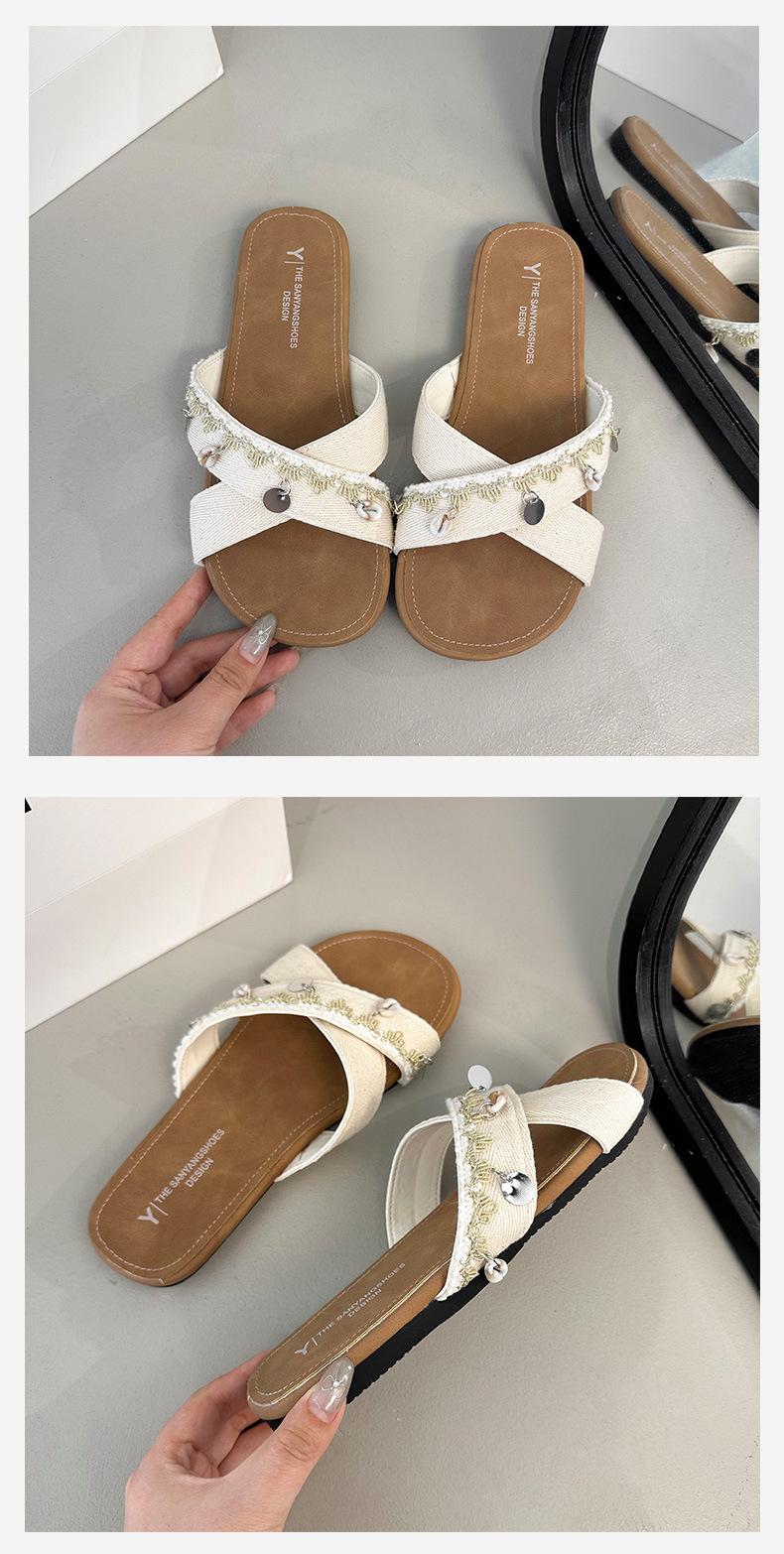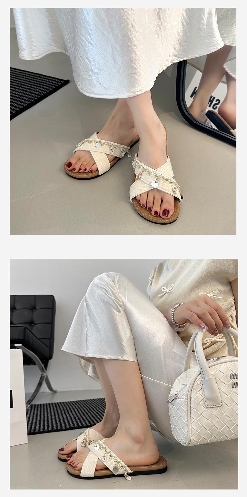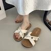 Sandalias planas de tiras cruzadas para mujer Verano para exteriores 2025 Nuevo estilo Chanclas para vacaciones en la playa Combinación casual con falda Sandalias