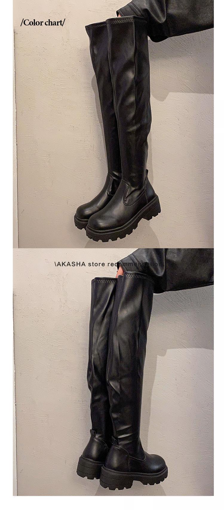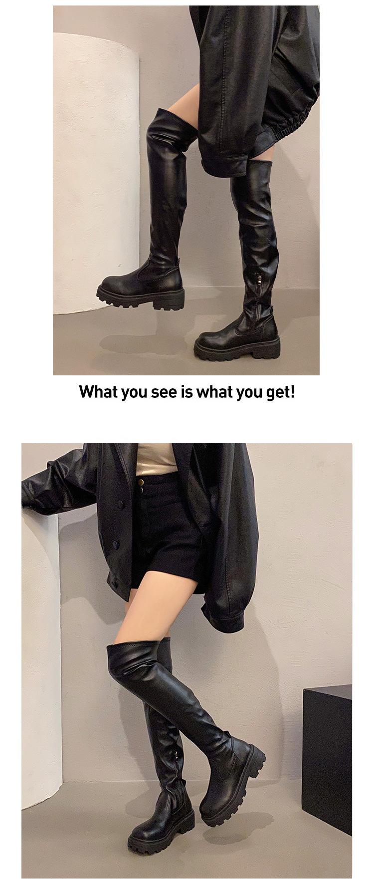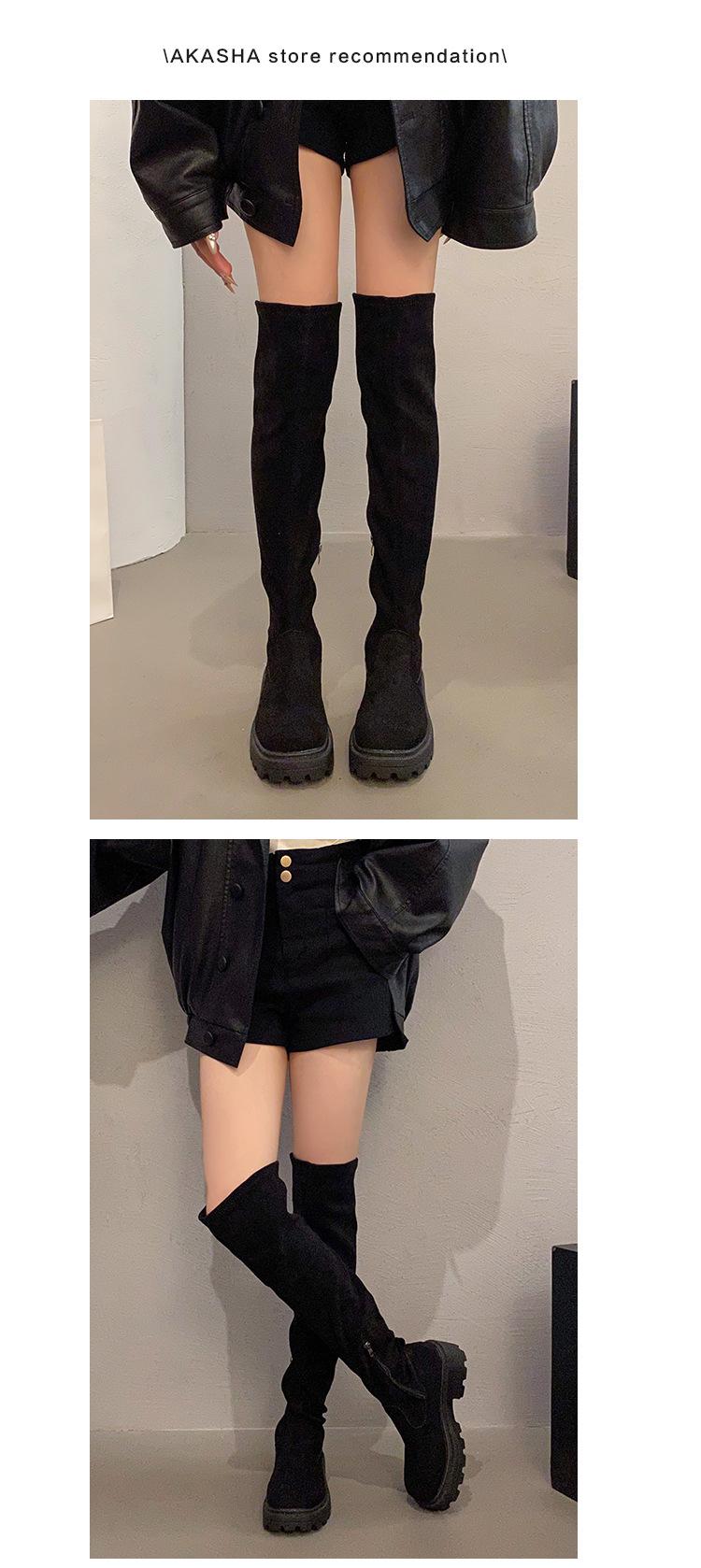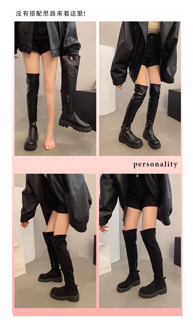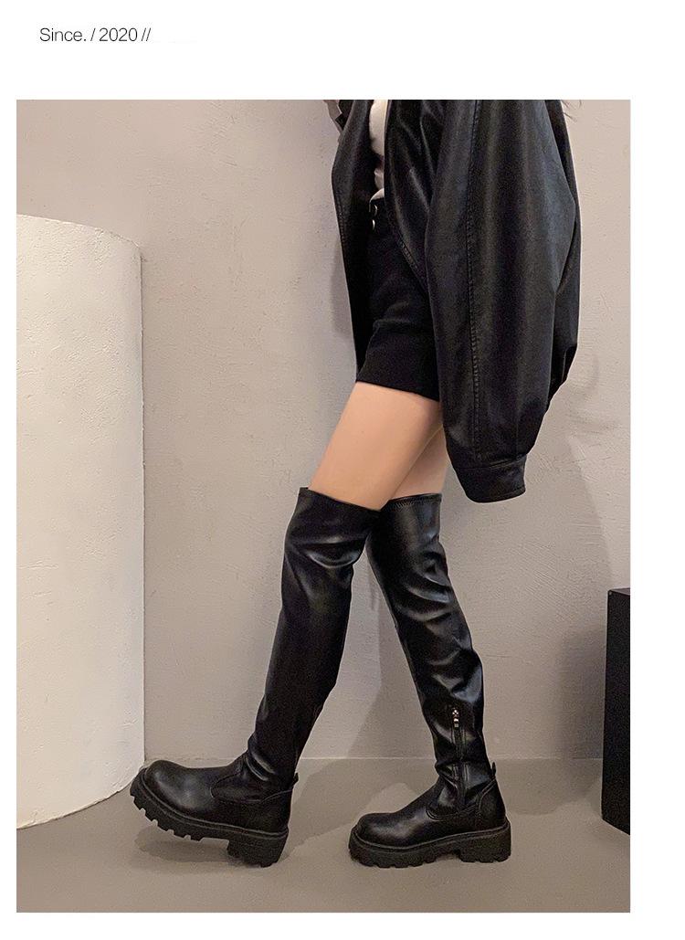 Otoño 2025 esencia para piernas imprescindible botas largas elásticas por encima de la rodilla de plataforma con tacón alto grueso punta redonda mujer