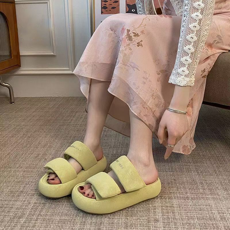 Pantuflas Populares para Mujer para Verano para Uso Exterior 2025 Verano Nuevo Pantuflas Versátiles de Moda con Velcro de Suela Gruesa para Mujer