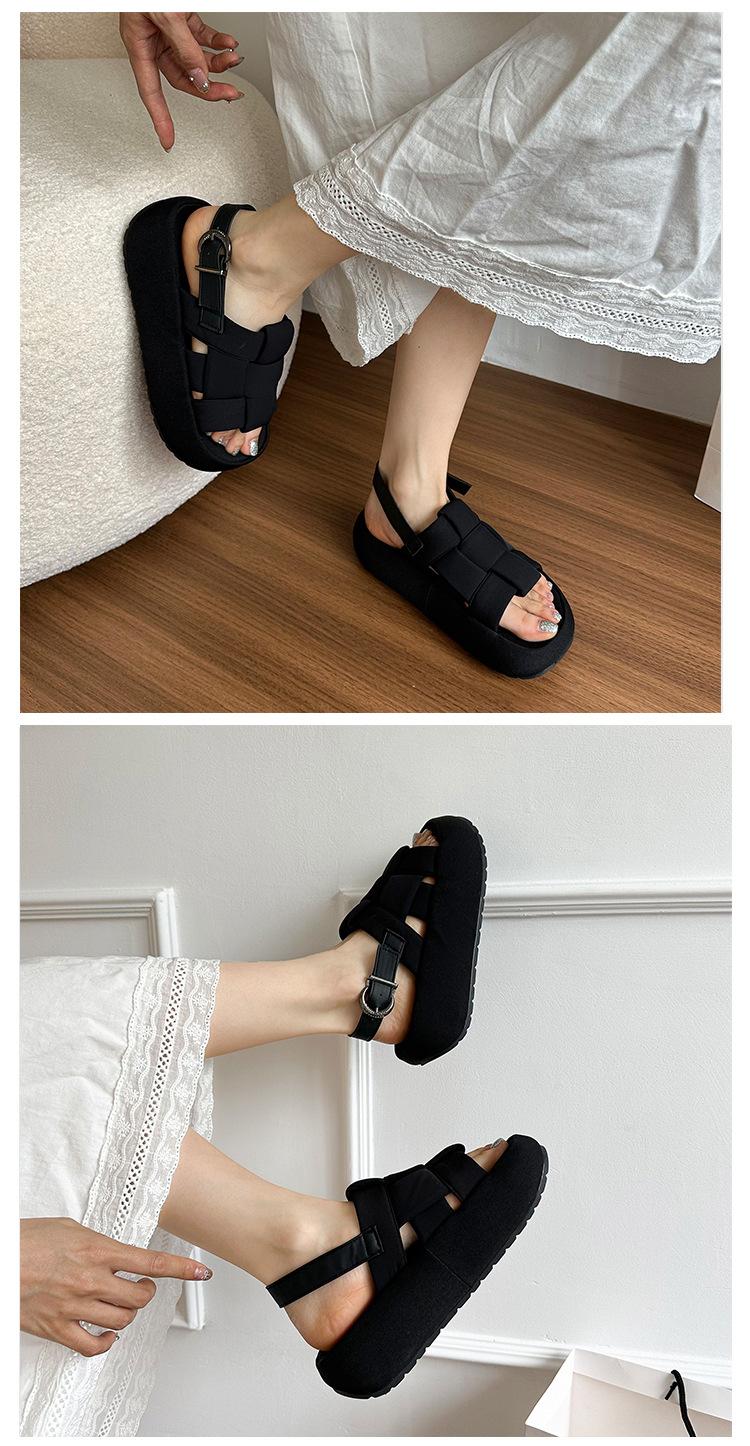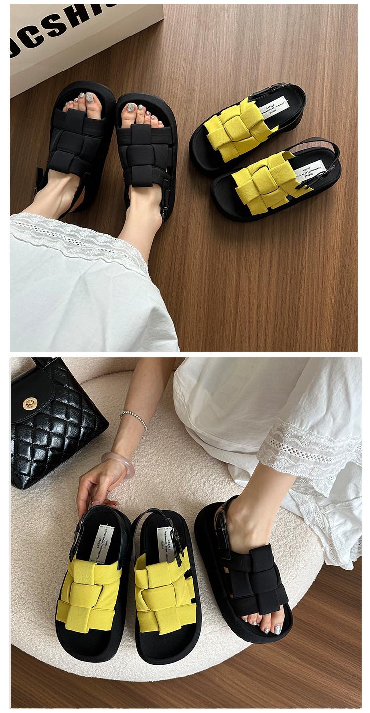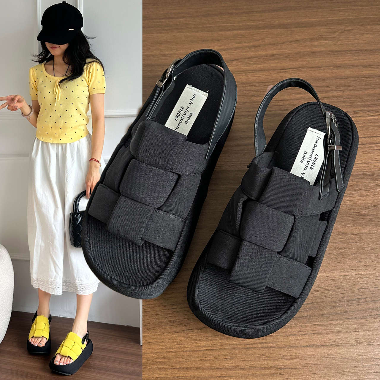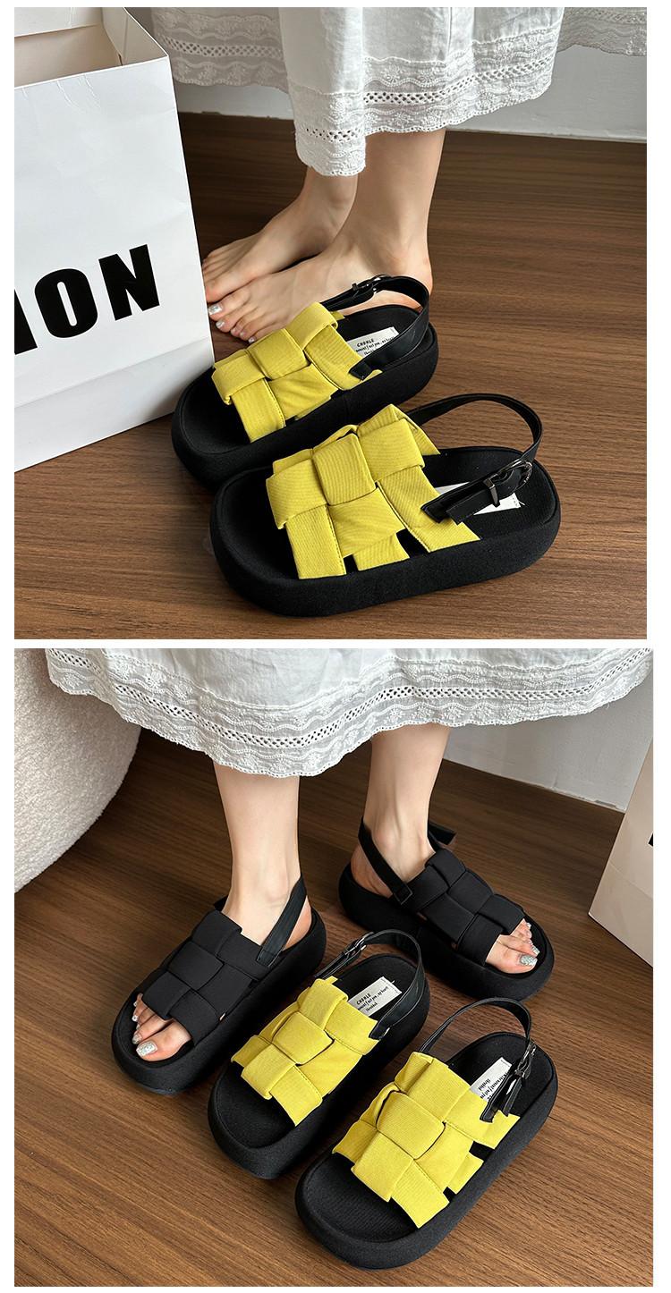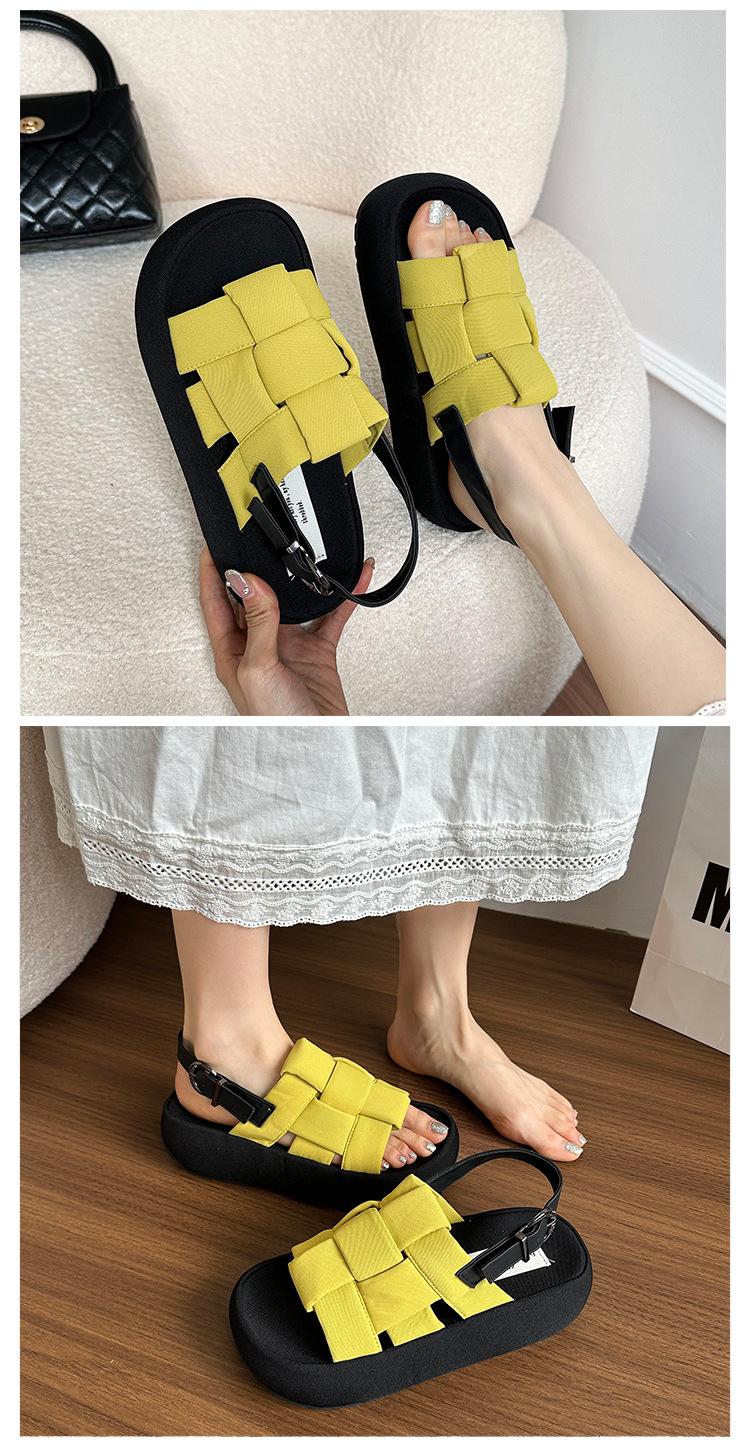 Usar con Falda, Zapatos Romanos de Playa de Punta Abierta Antideslizantes para Mujer, Verano 2025 Nuevas Sandalias Tejidas de Suela Gruesa Súper Populares