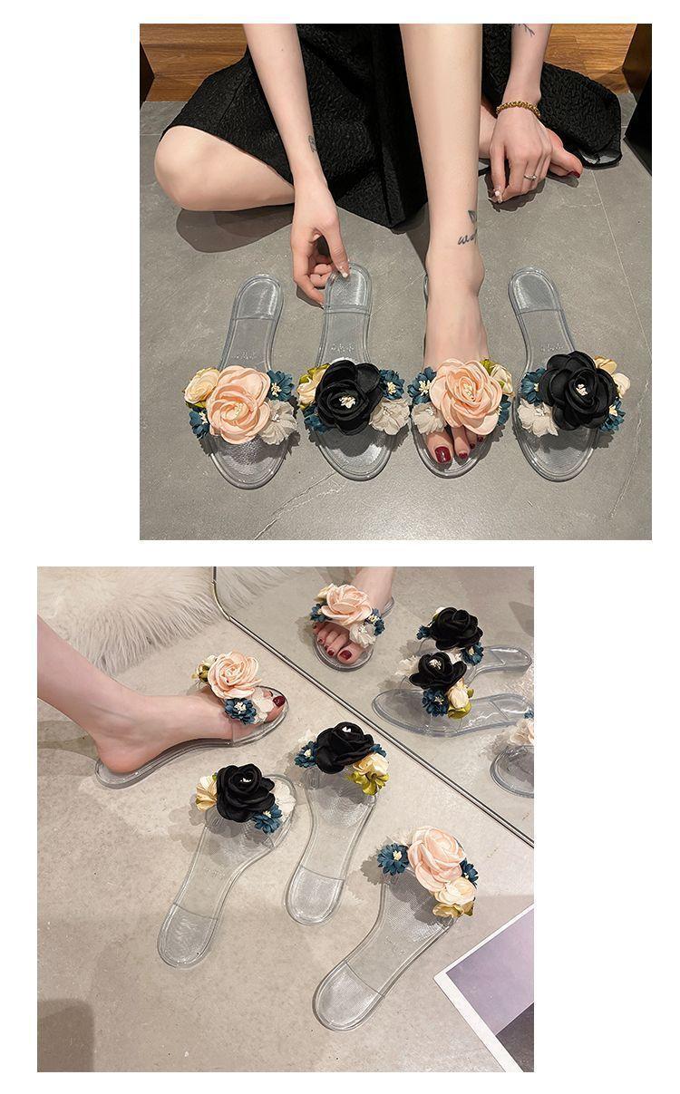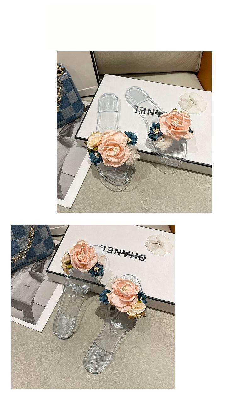 Verano 2025 Nueva Moda Versátil Chanclas Florales Ropa Exterior Zapatillas de Mujer Sandalias de Playa para Exterior Zapatillas Planas