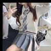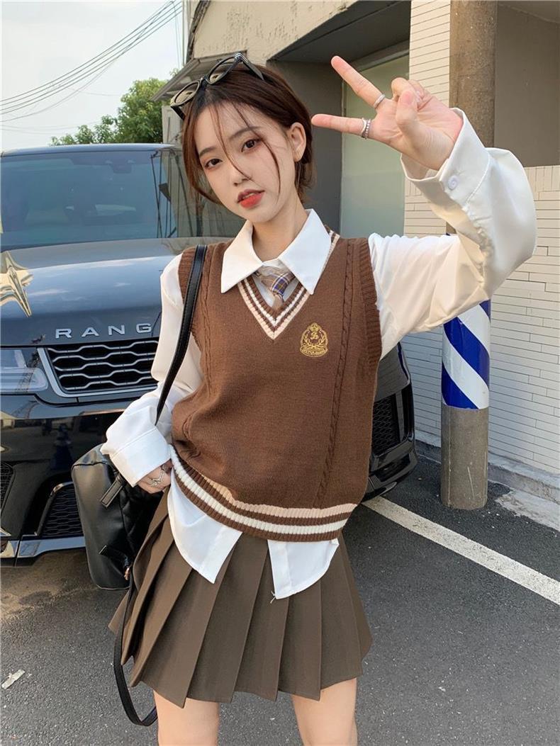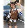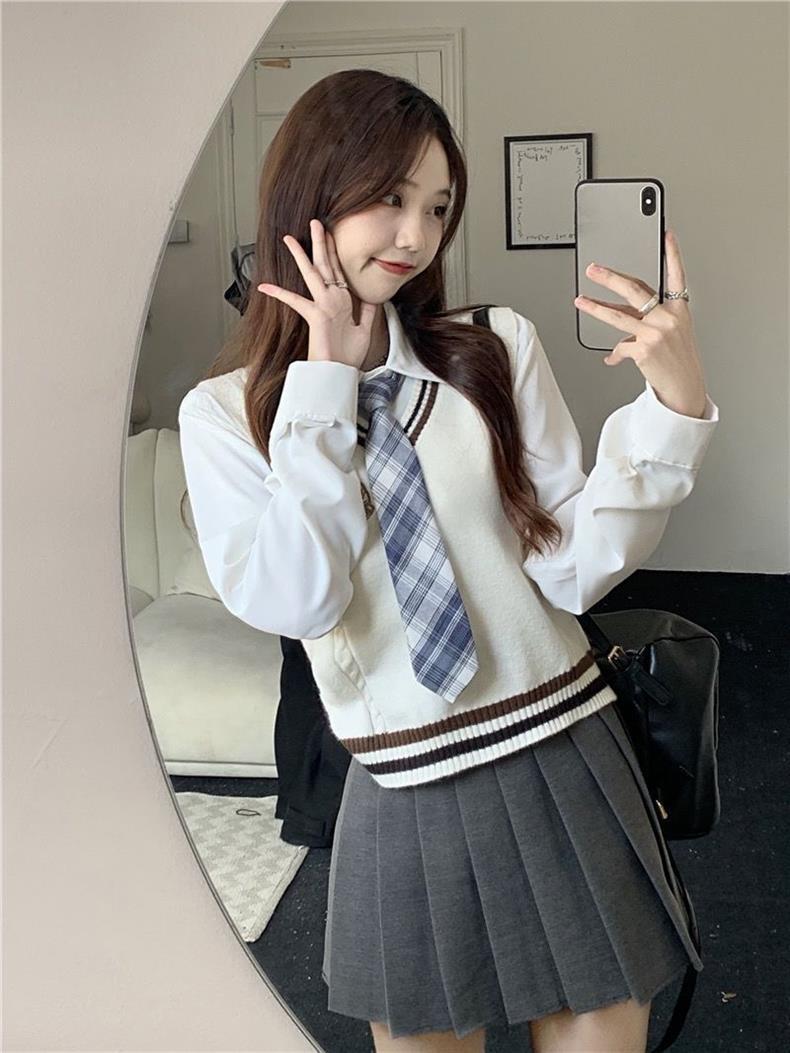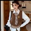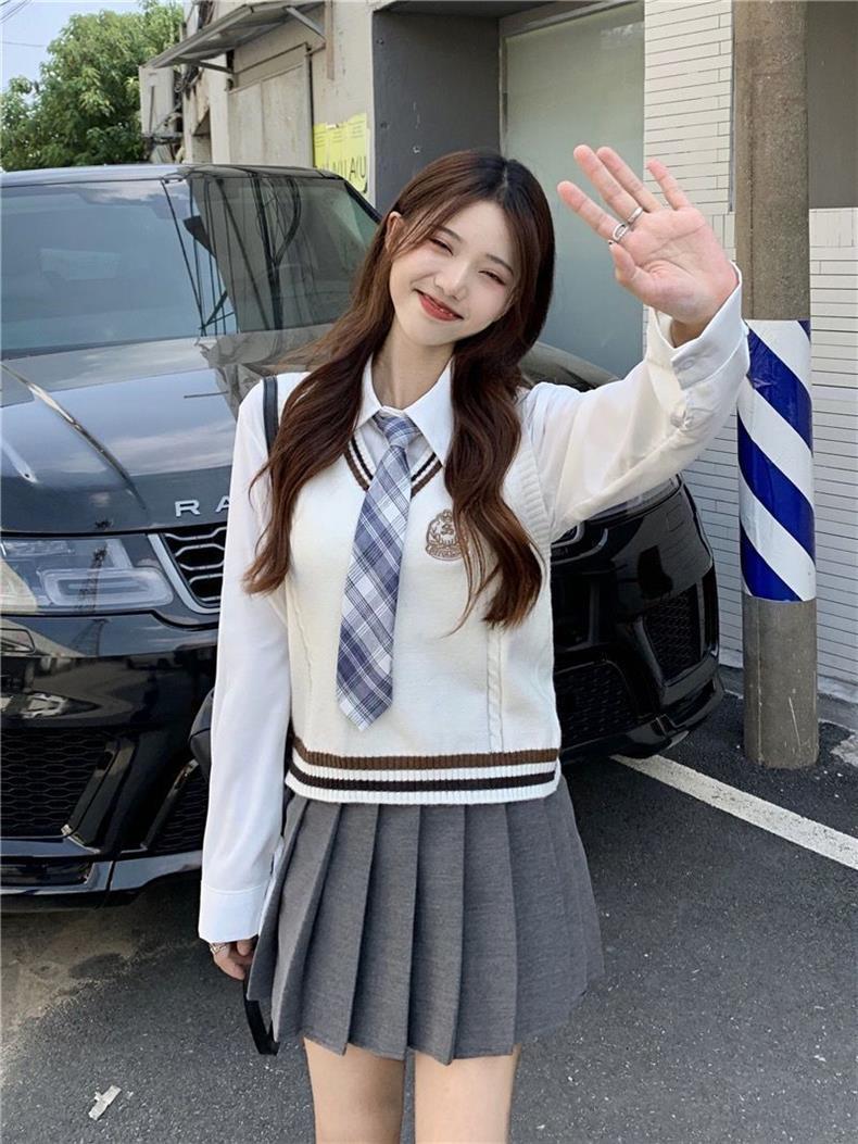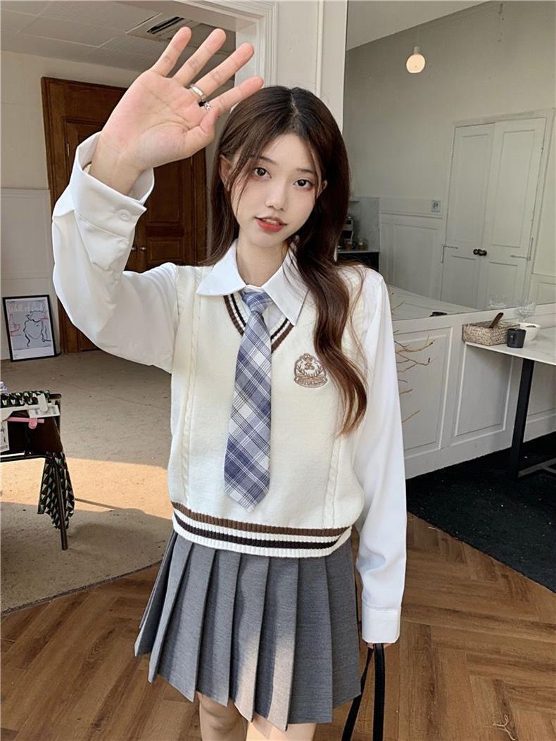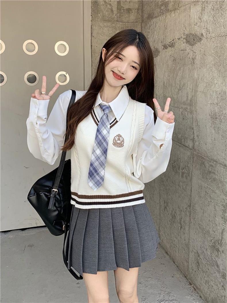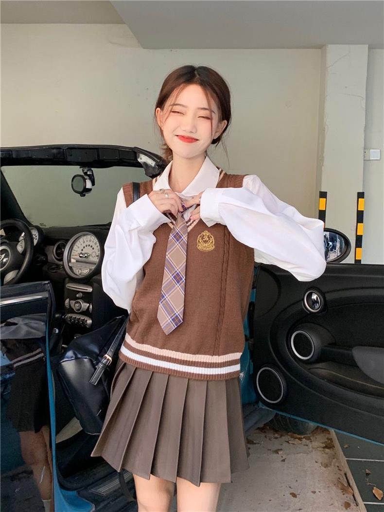 Traje de uniforme jk americano falda estilo universitario para mujer otoño que reduce la edad chaleco de punto camisa falda plisada traje de tres piezas