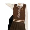 Long sleeve white shirt * send brown plaid tie, Dark coffee vest * single piece, Light apricot vest * single p...