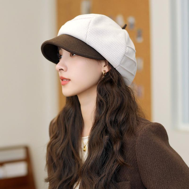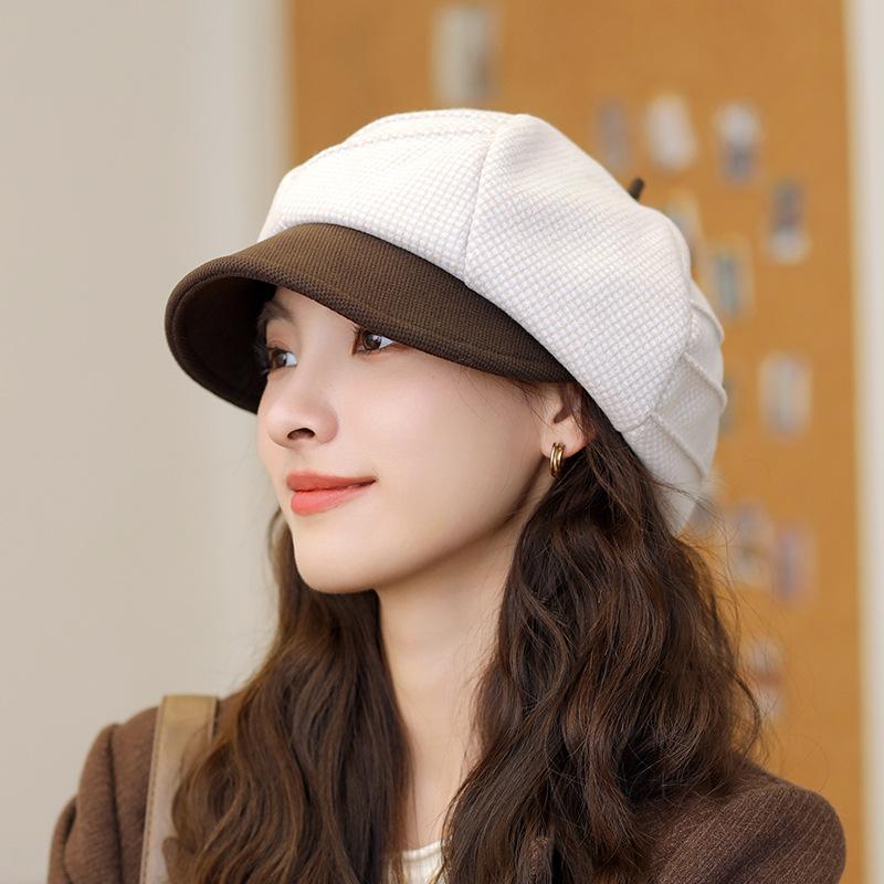 Boina Octogonal de Pata de Gallo y Cuadros para Mujer - Gorra Newsboy de Inspiración Vintage con Orejeras, Perfecta para Primavera y Otoño