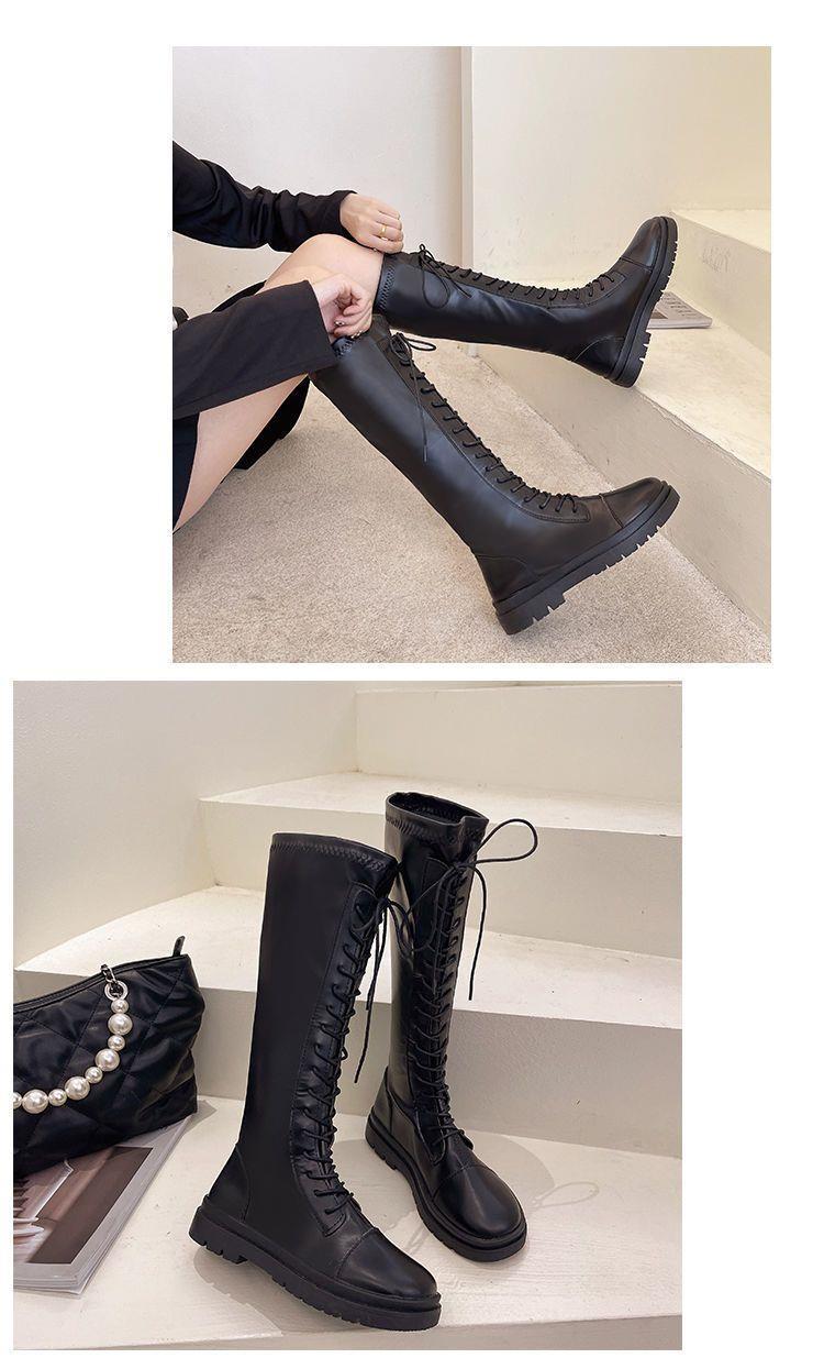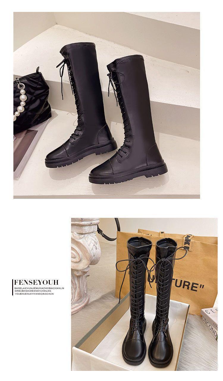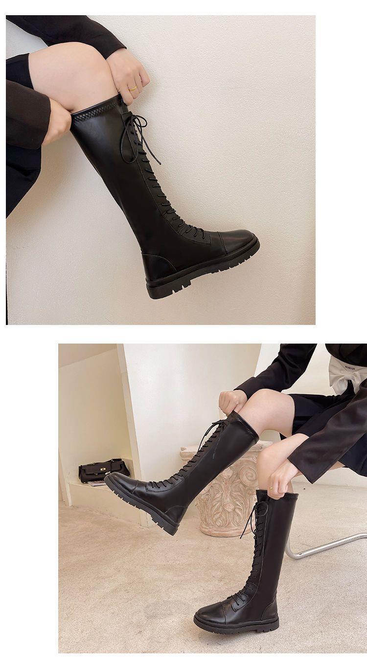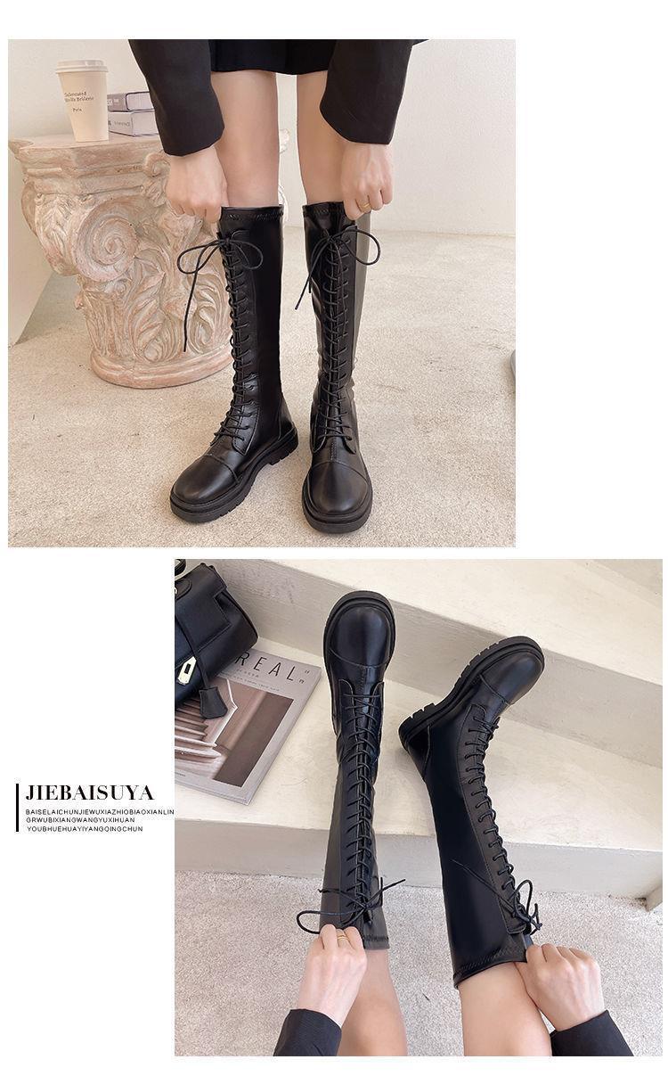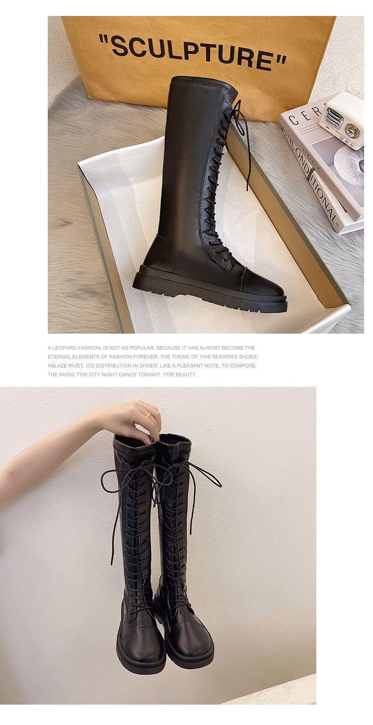 Botas Largas para Mujer Otoño e Invierno Forradas con Forro Polar Botas hasta la Rodilla Botas de Caballero 2021 Nuevas Versátiles con Cordones Botas Planas Altas