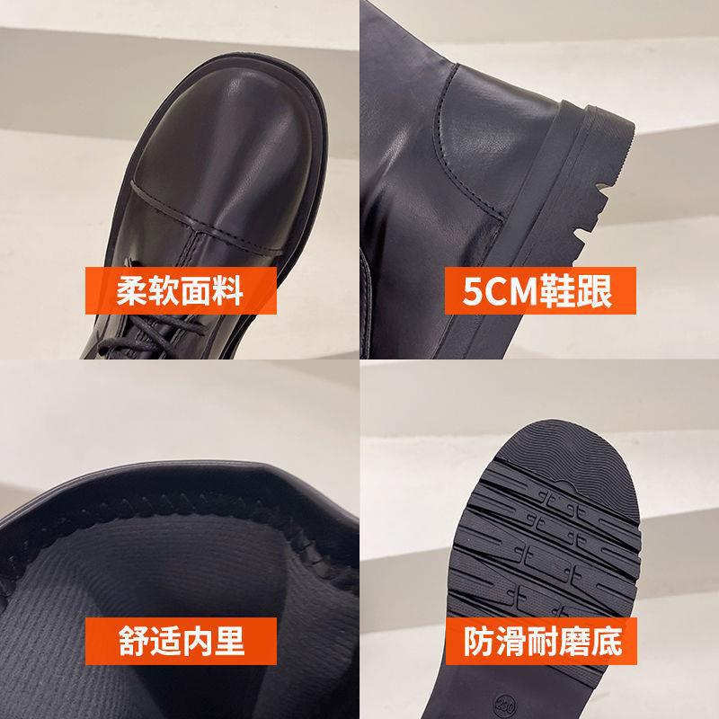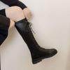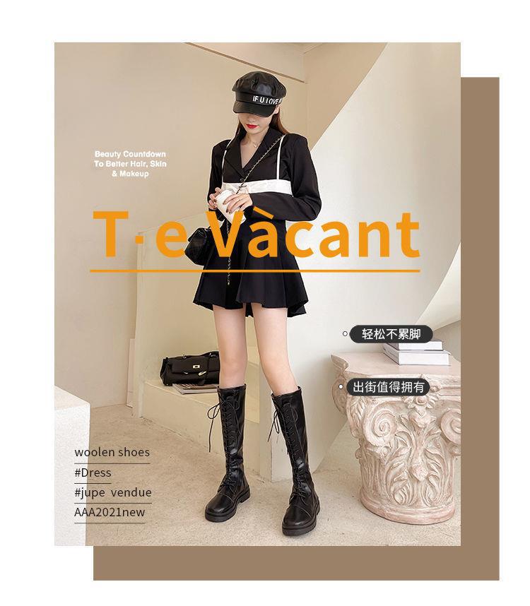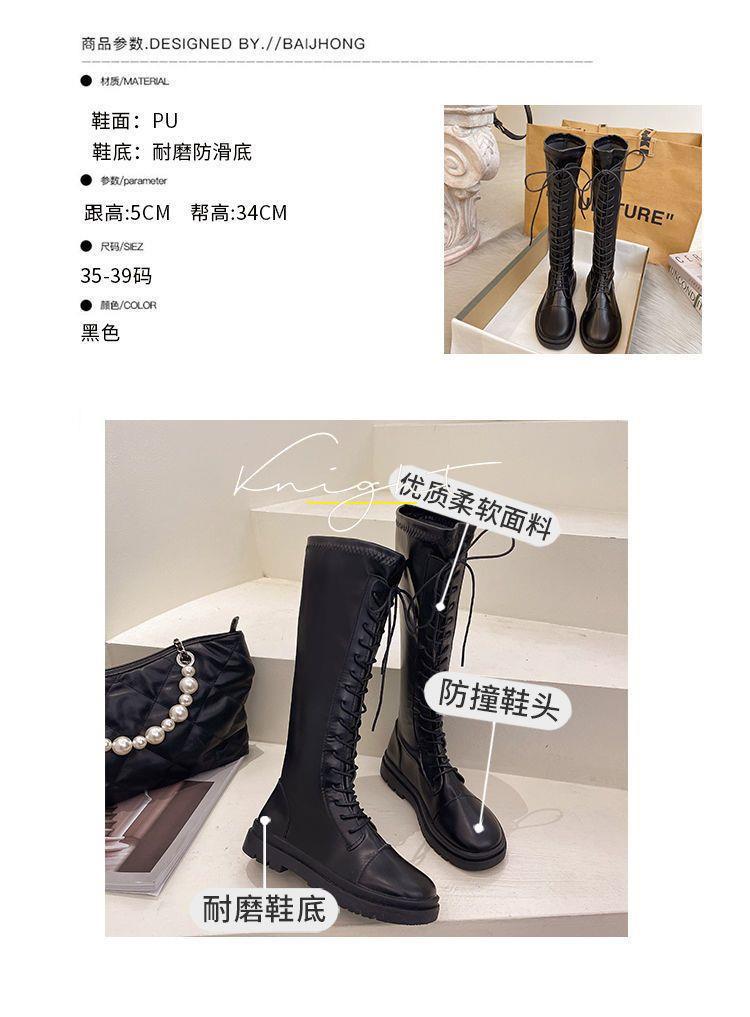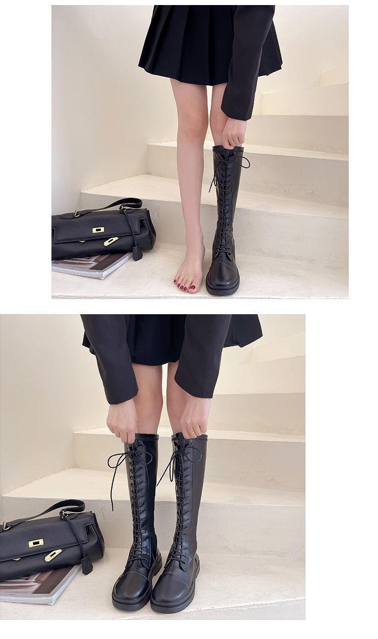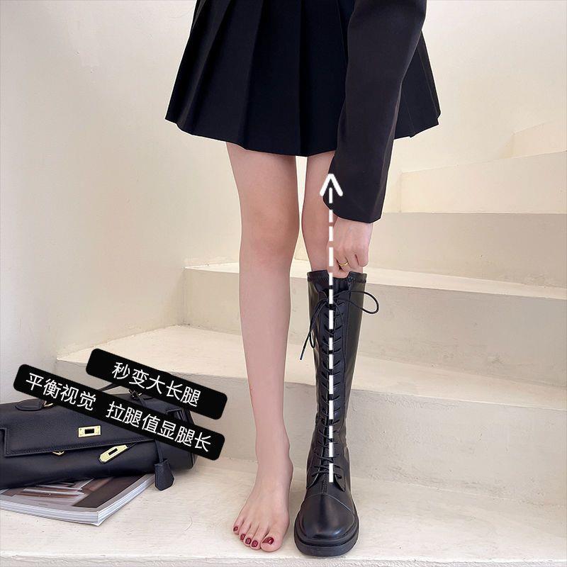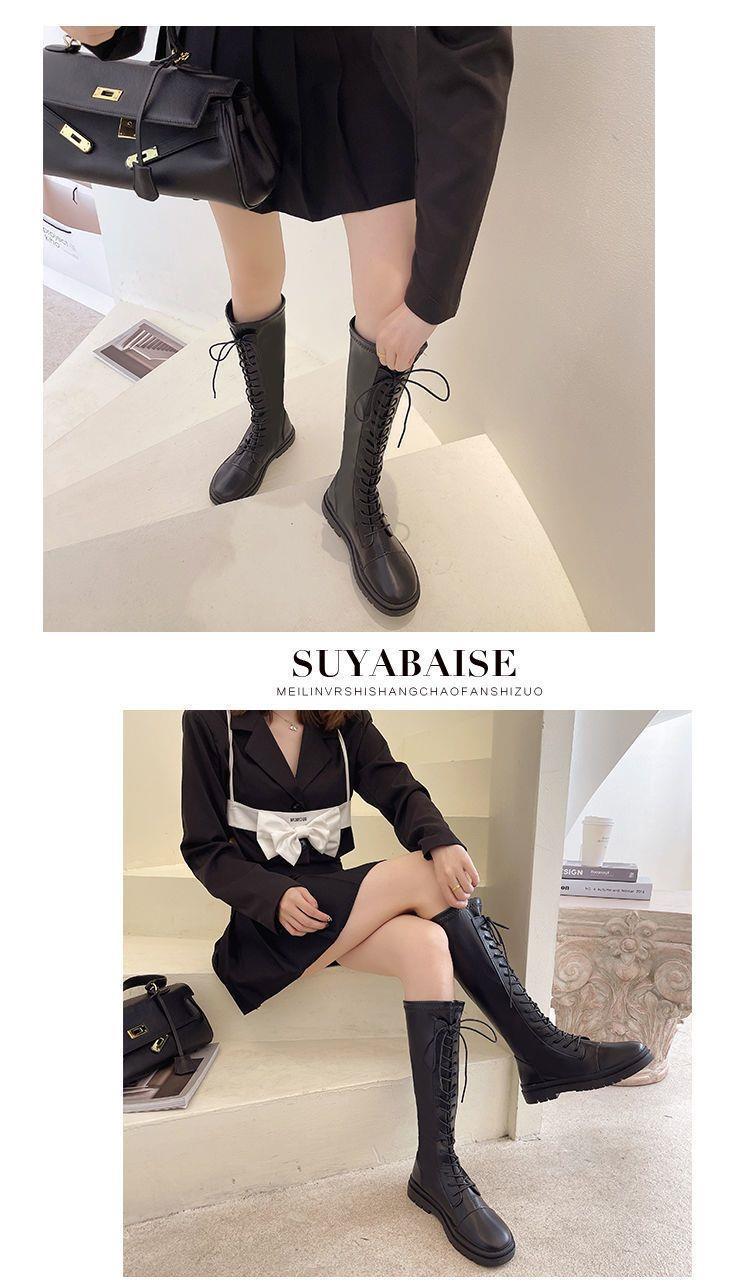 Botas Largas para Mujer Otoño e Invierno Forradas con Forro Polar Botas hasta la Rodilla Botas de Caballero 2021 Nuevas Versátiles con Cordones Botas Planas Altas