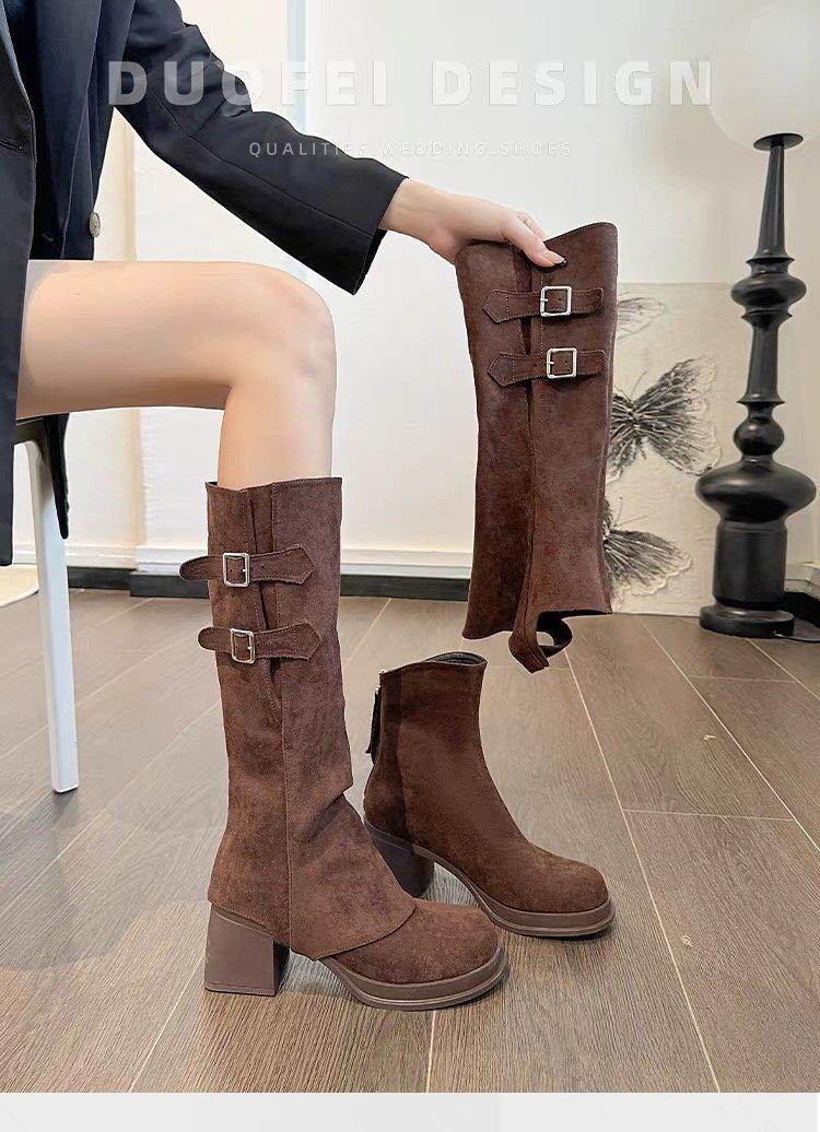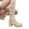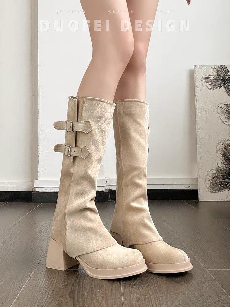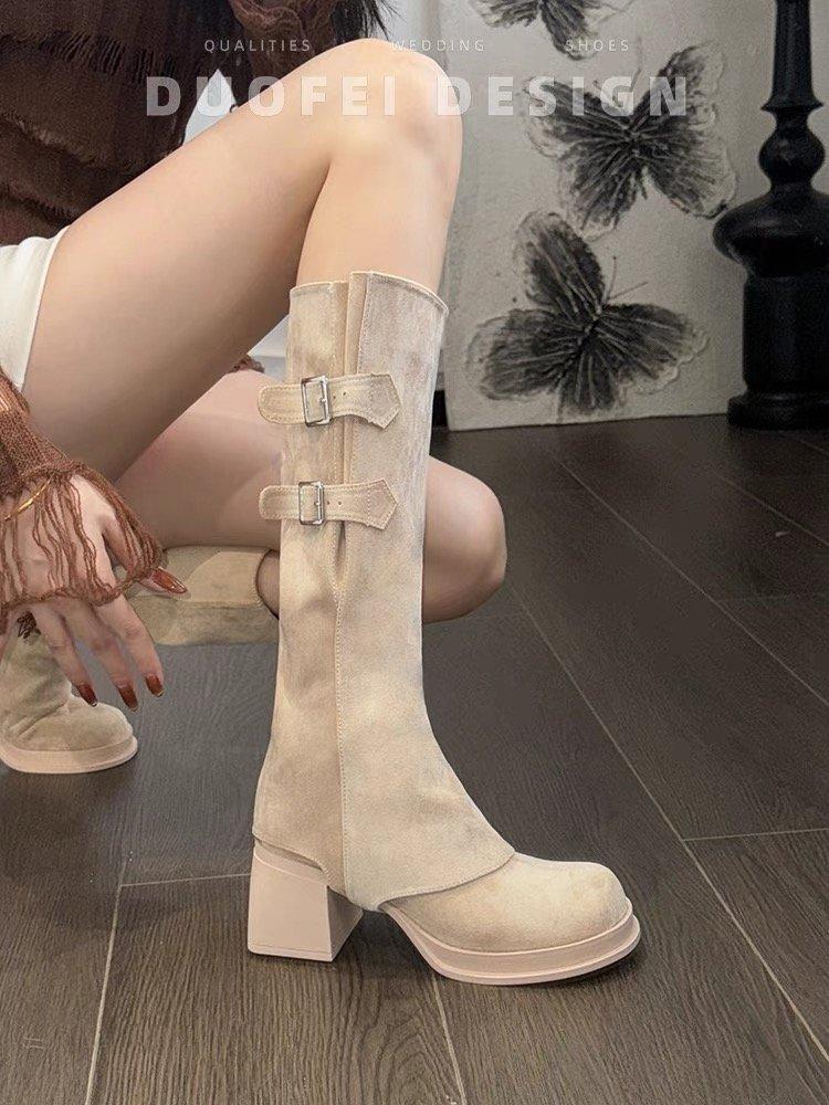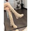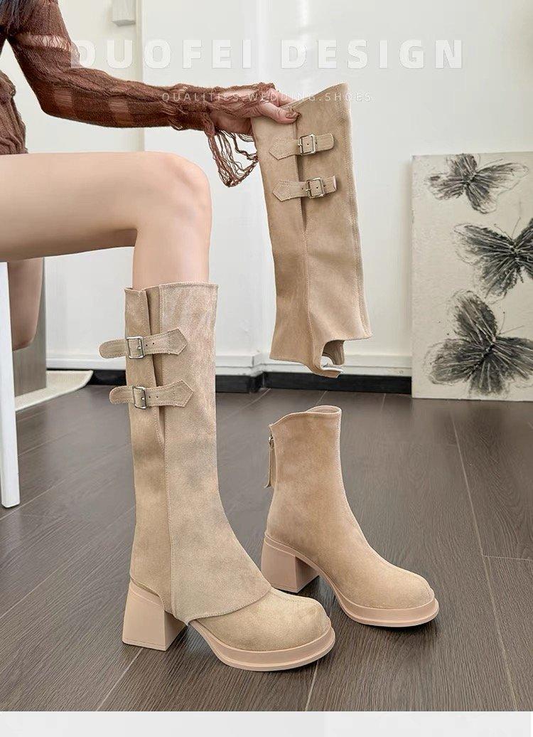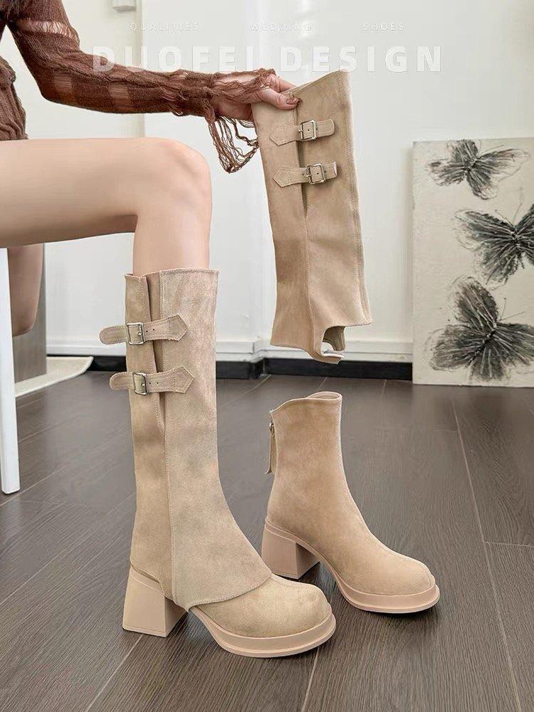 Botas nude de tacón alto para mujer otoño e invierno botas largas 2025 nuevo estilo caliente de tubo alto desmontables dos formas de usar botas delgadas