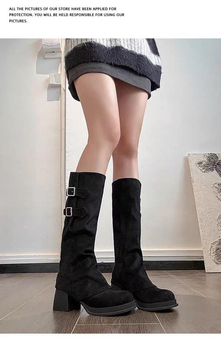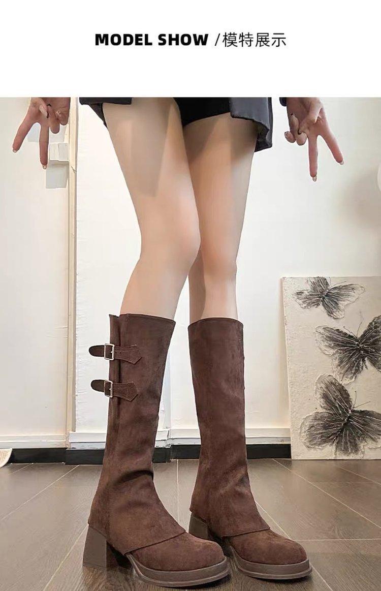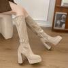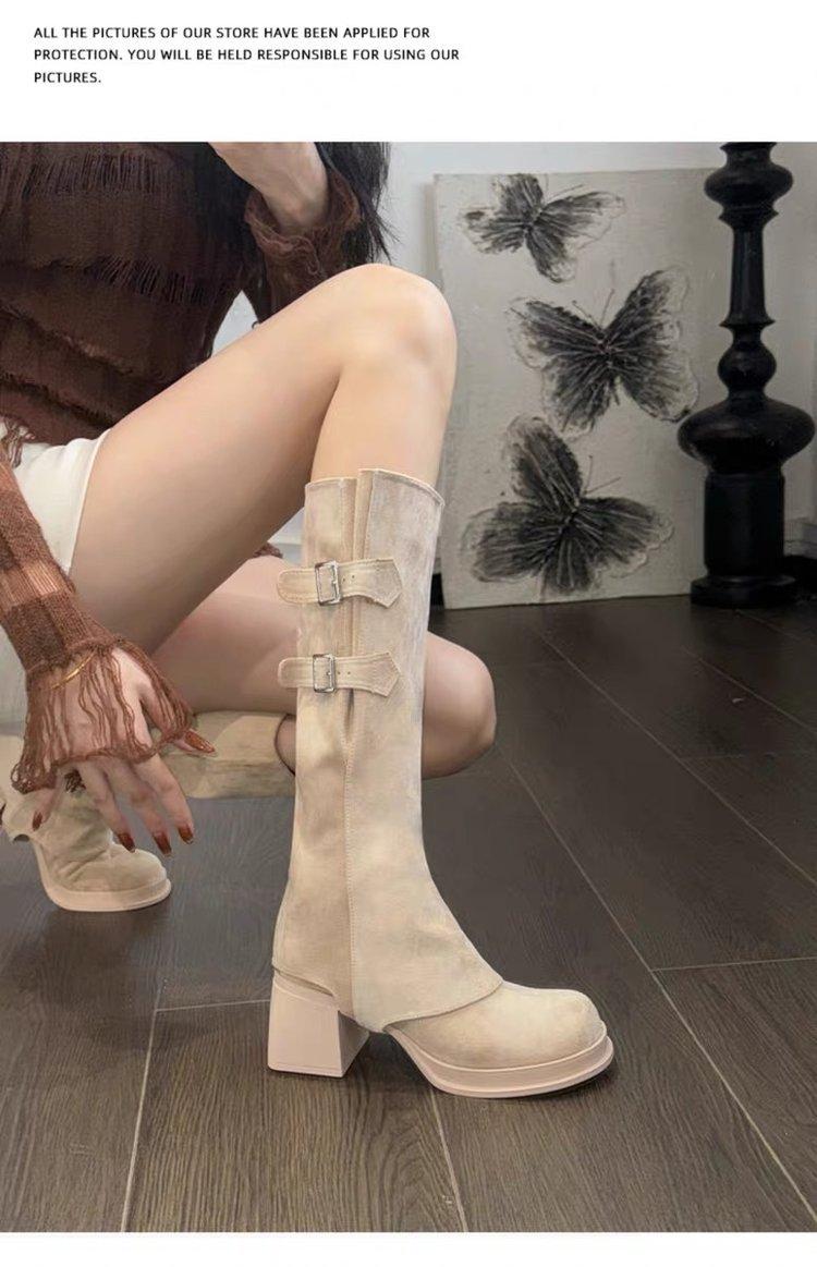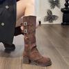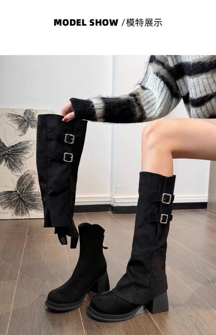 Botas nude de tacón alto para mujer otoño e invierno botas largas 2025 nuevo estilo caliente de tubo alto desmontables dos formas de usar botas delgadas