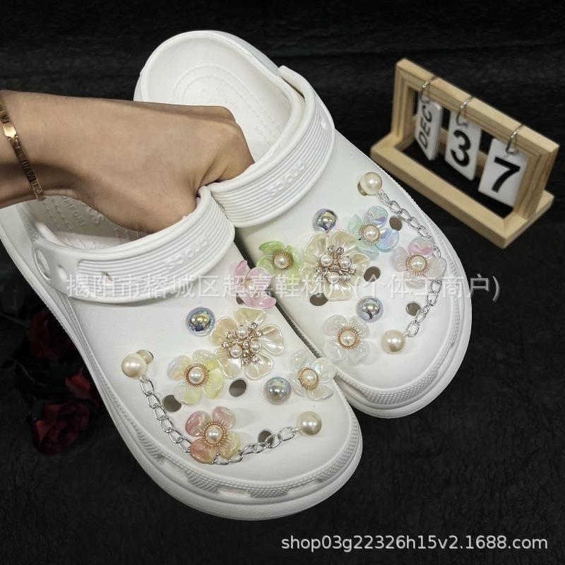 Cadena Cinco Colores Zapatos con Agujeros Accesorios Perla Adornos Florales para Zapatos Corazón de Niña DIY Accesorios Hebilla para Zapatos Venta Caliente Transfronteriza