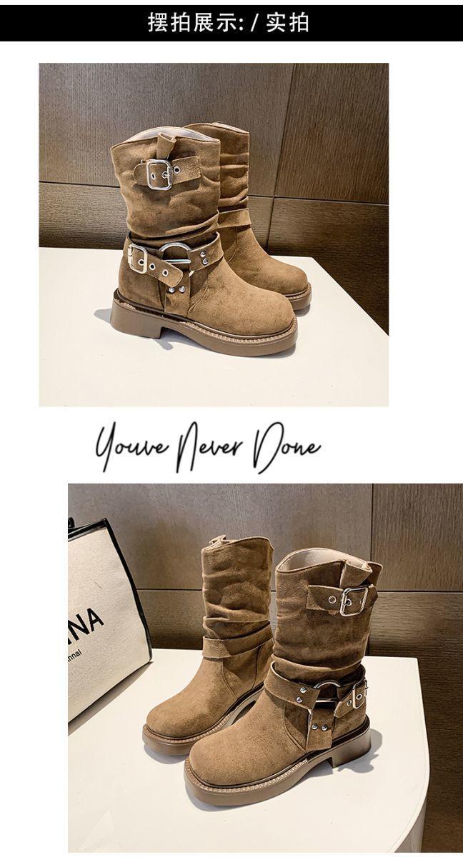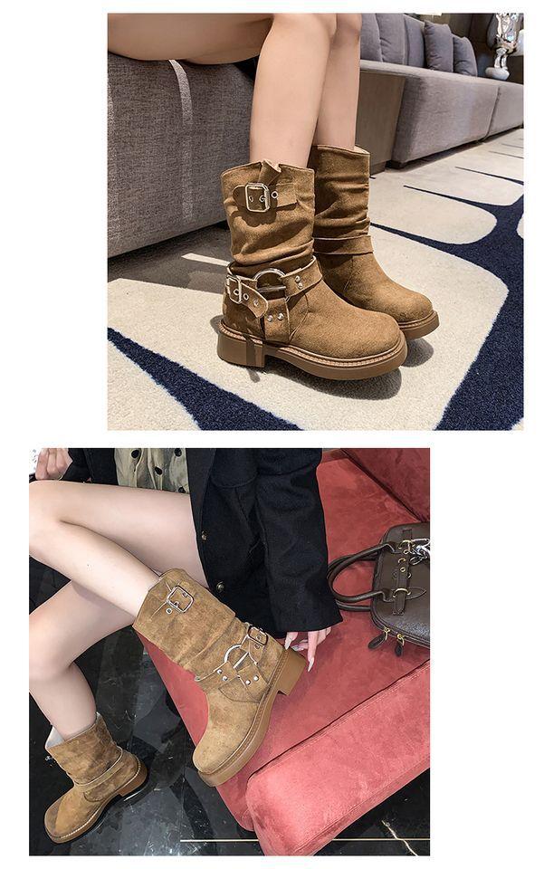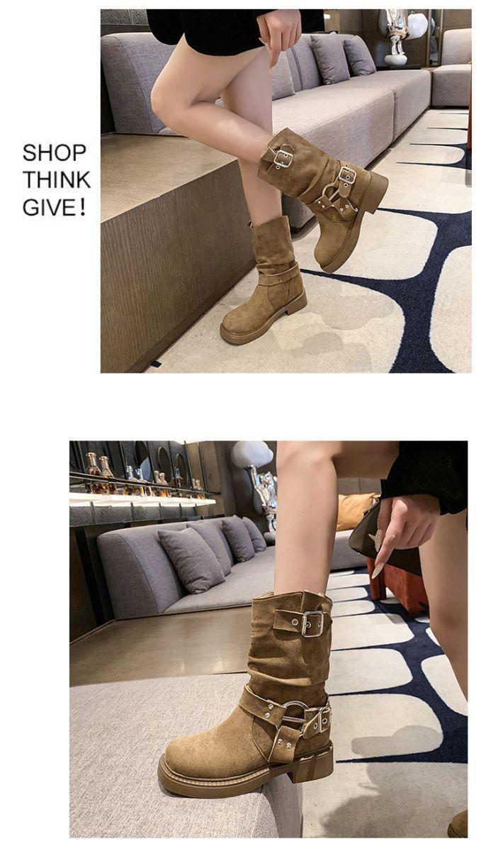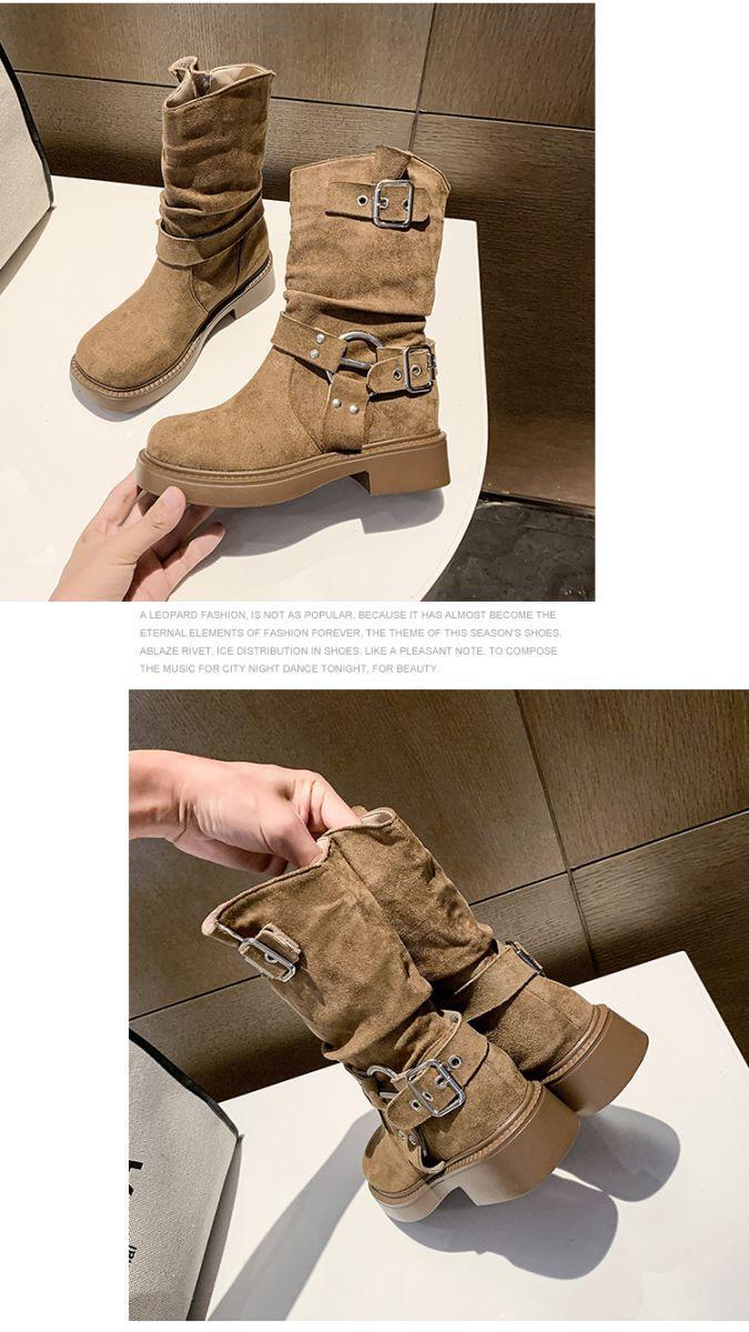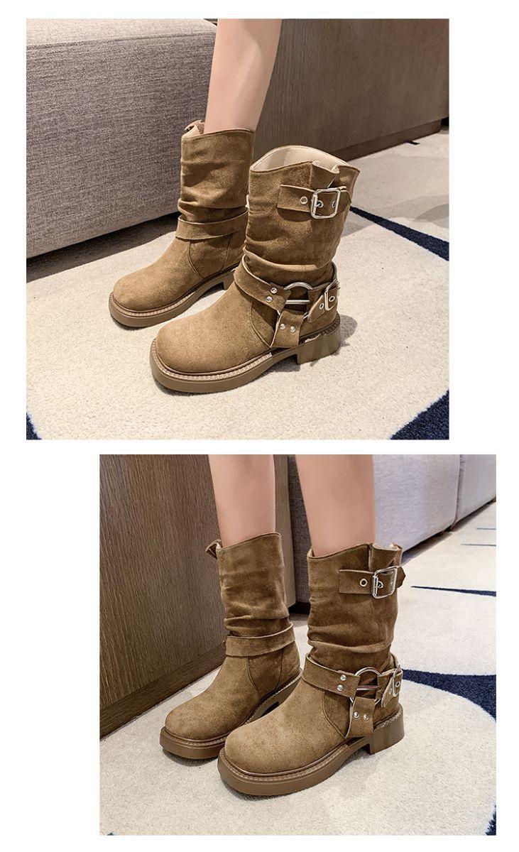 Botas Martin de media pantorrilla de suela gruesa para mujer 2025 verano nuevas red retro botas slouch vaqueras occidentales motociclista botines