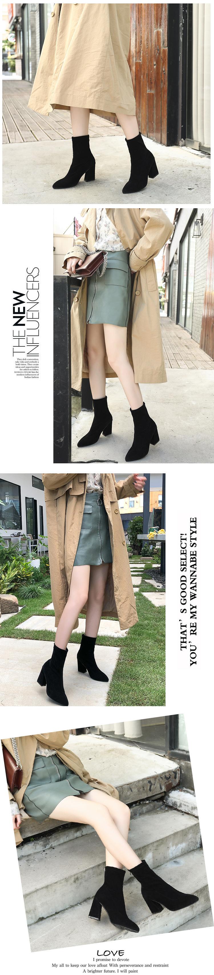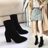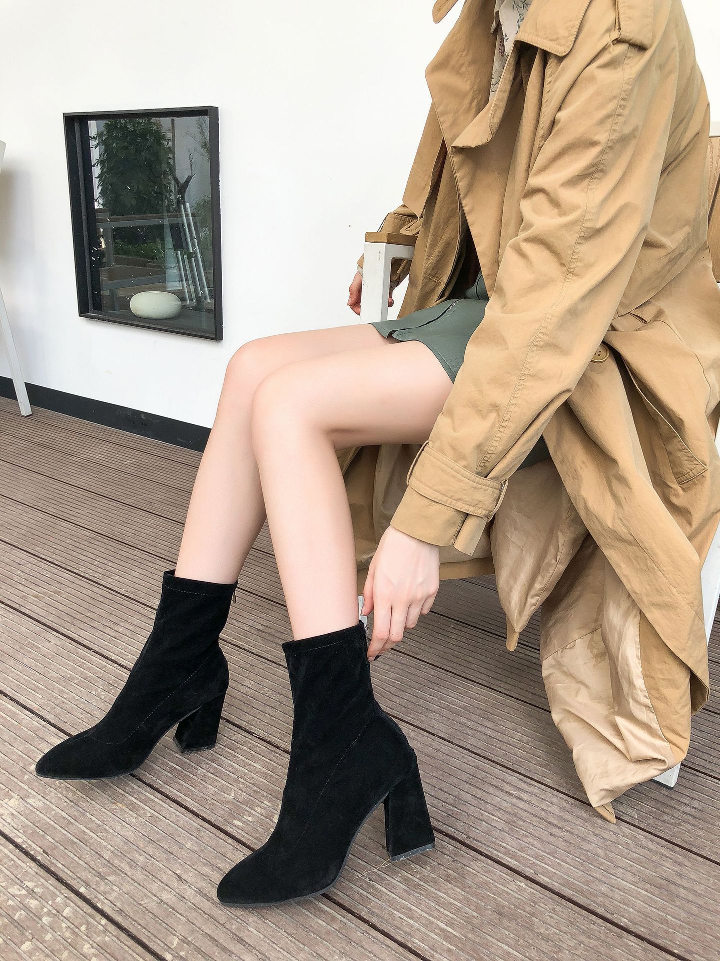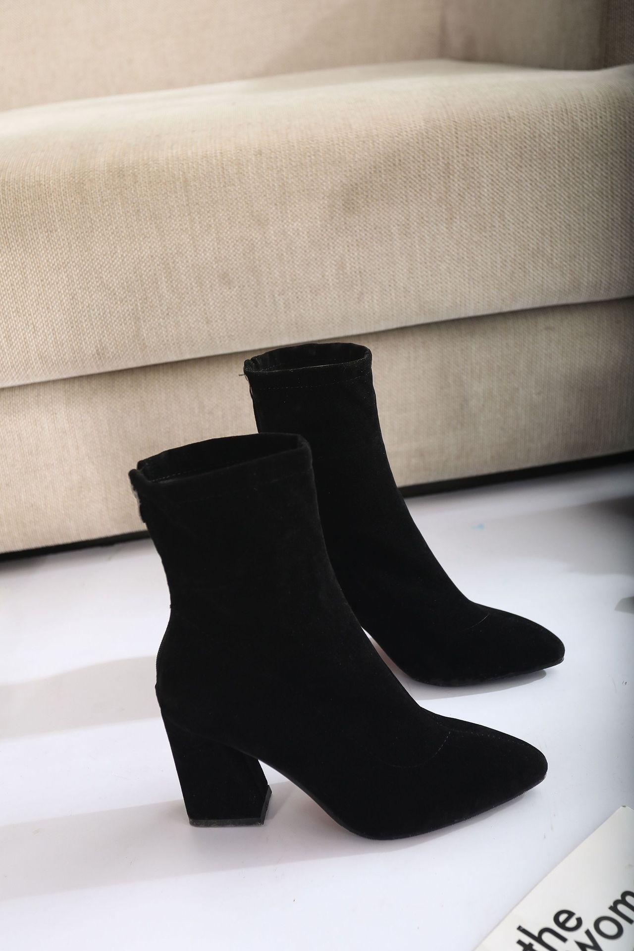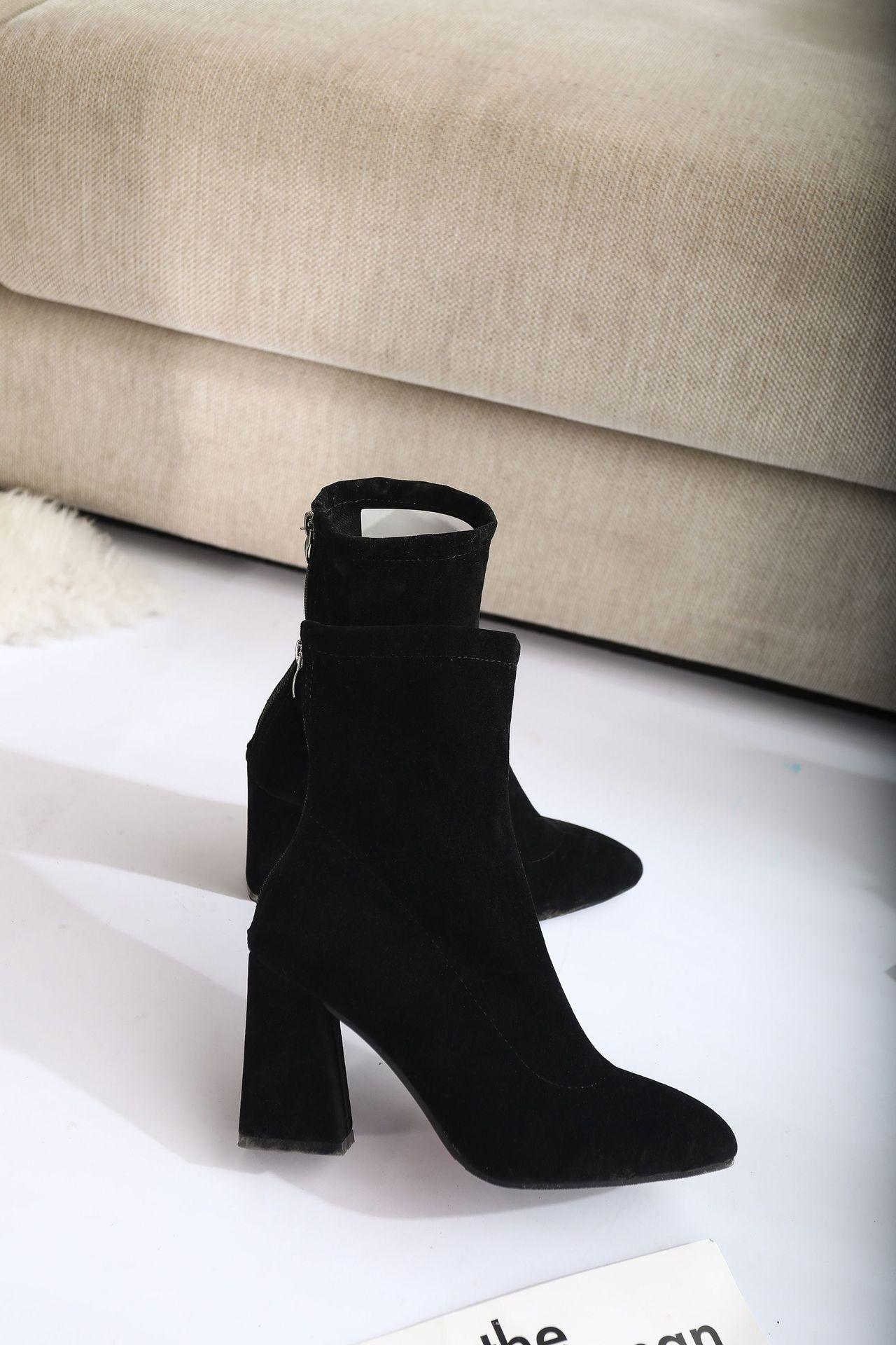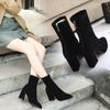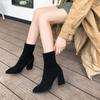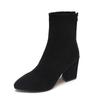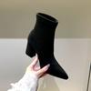 Zapatos zapatos de mujer 2025 nuevo estilo coreano otoño e invierno media pantorrilla punta afilada tacón grueso botines al tobillo tacones altos de mujer botas elásticas de mujer
