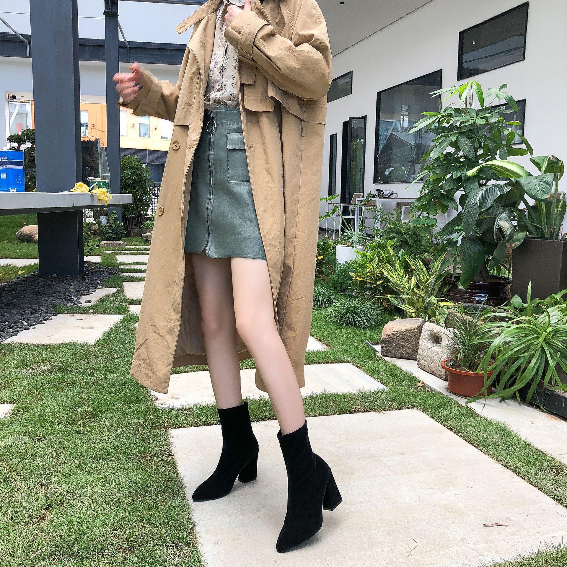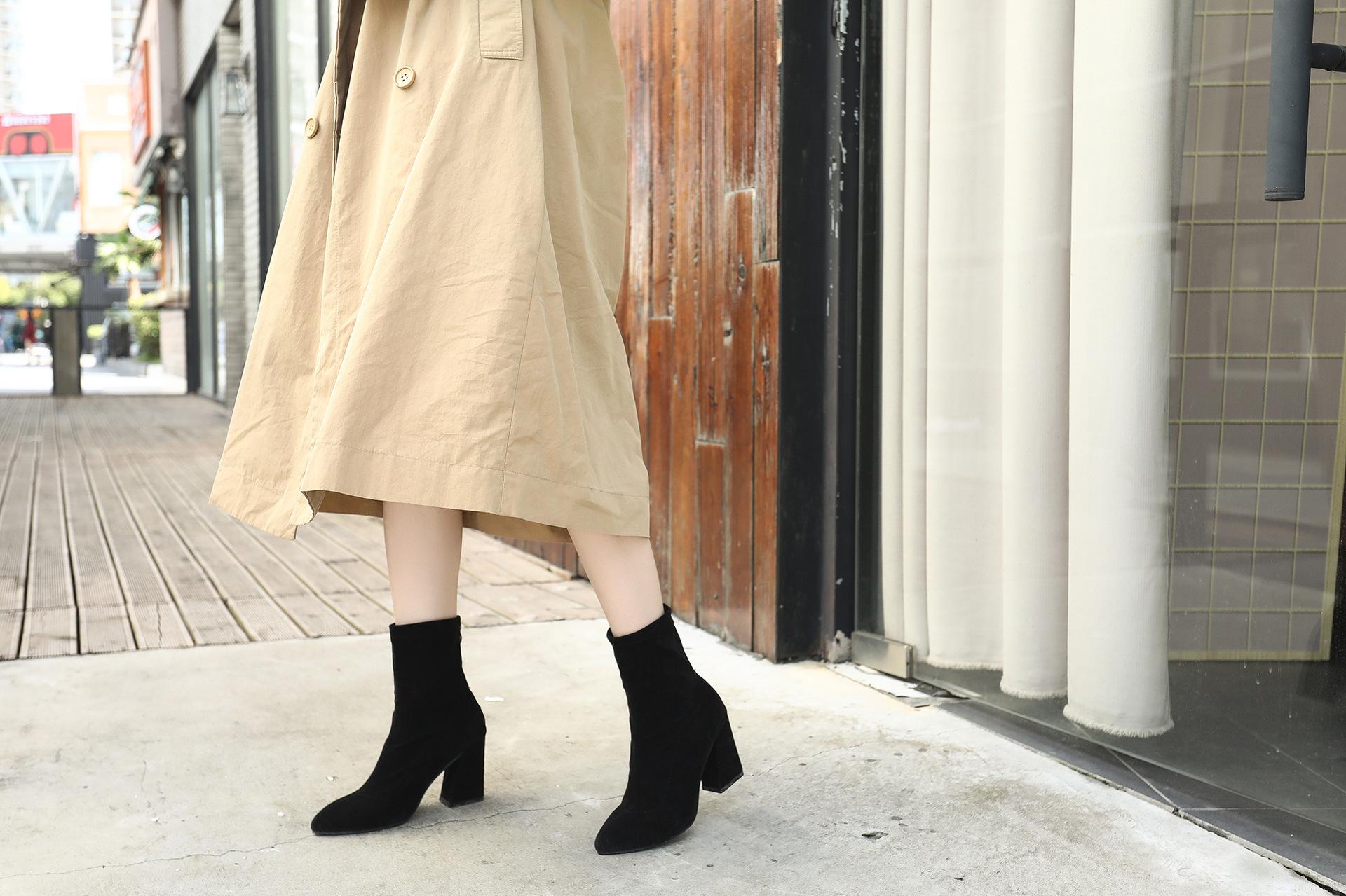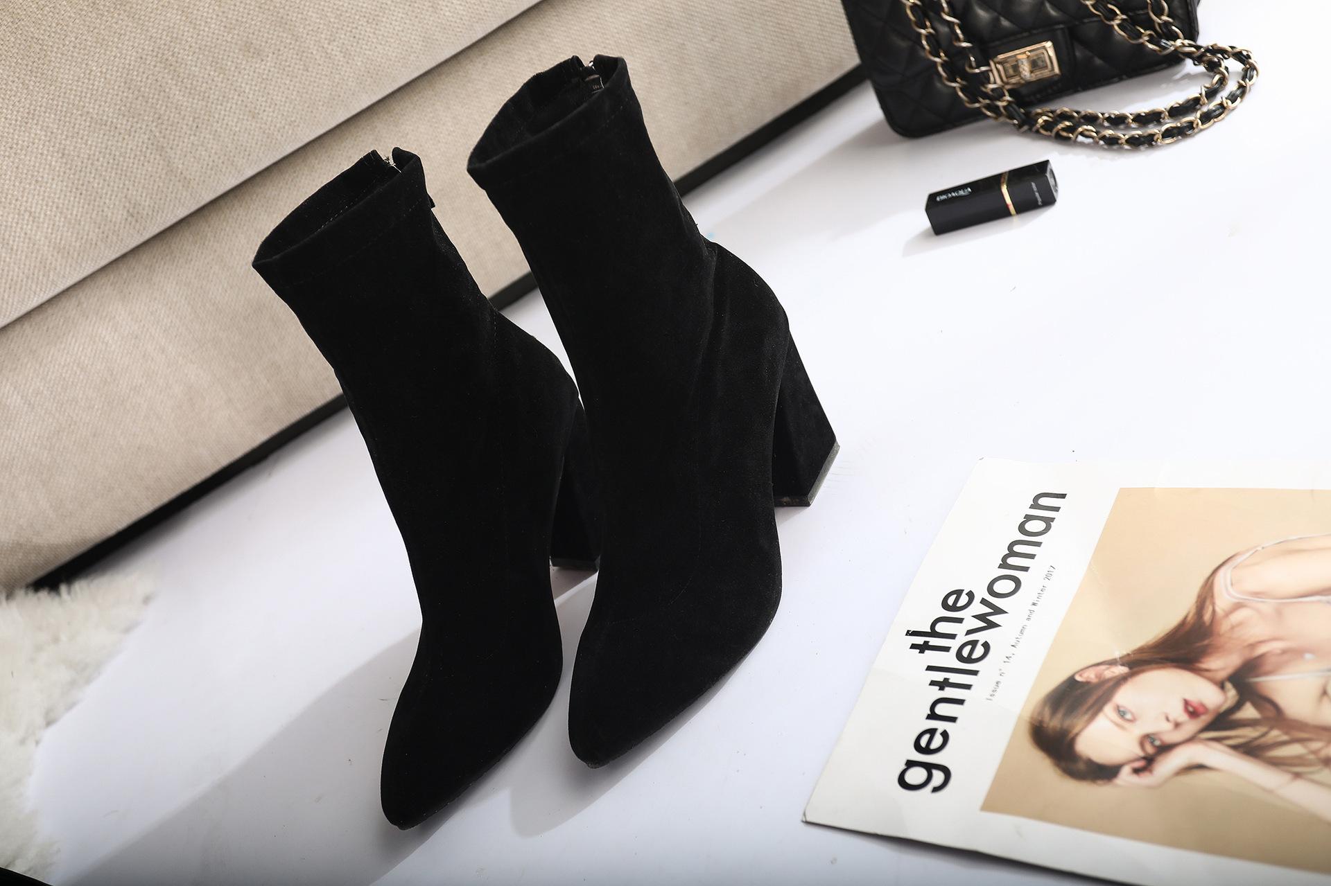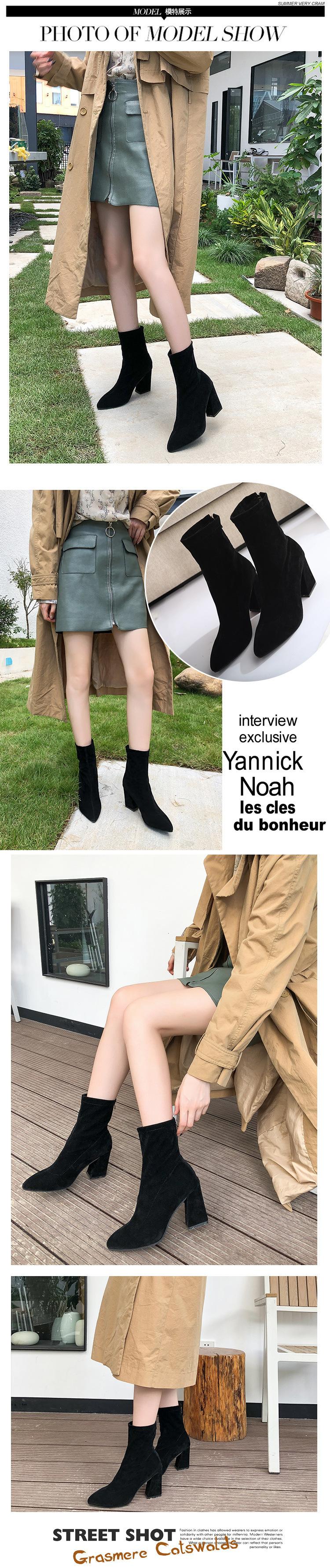 Zapatos zapatos de mujer 2025 nuevo estilo coreano otoño e invierno media pantorrilla punta afilada tacón grueso botines al tobillo tacones altos de mujer botas elásticas de mujer