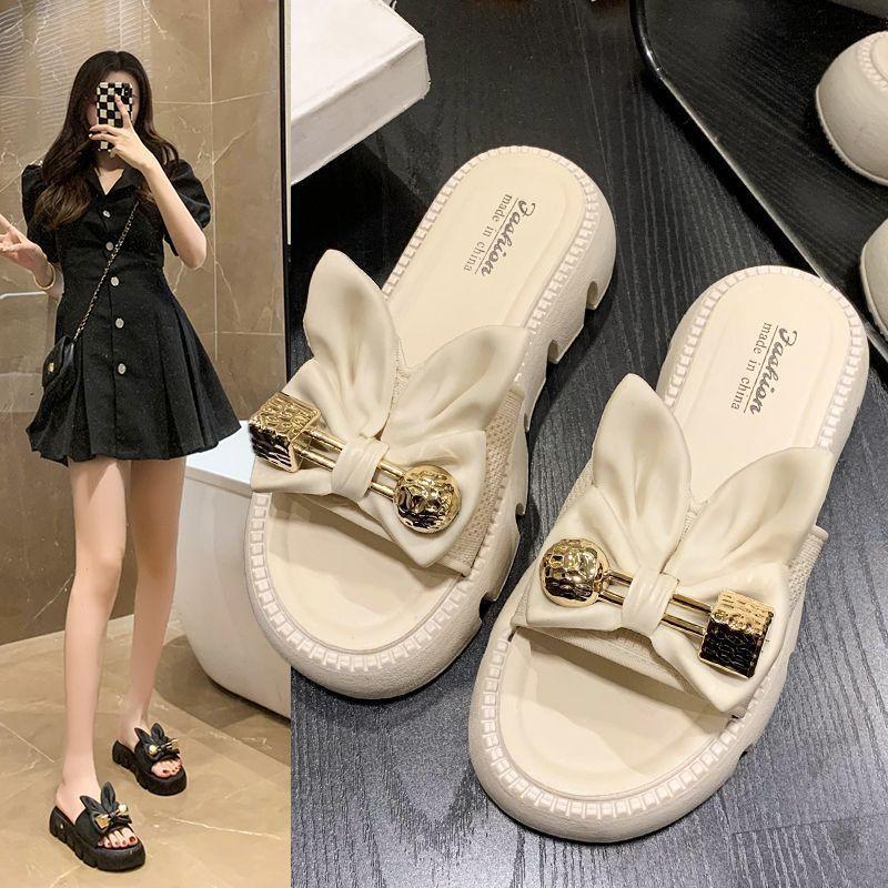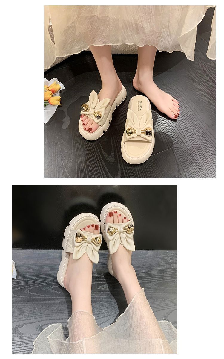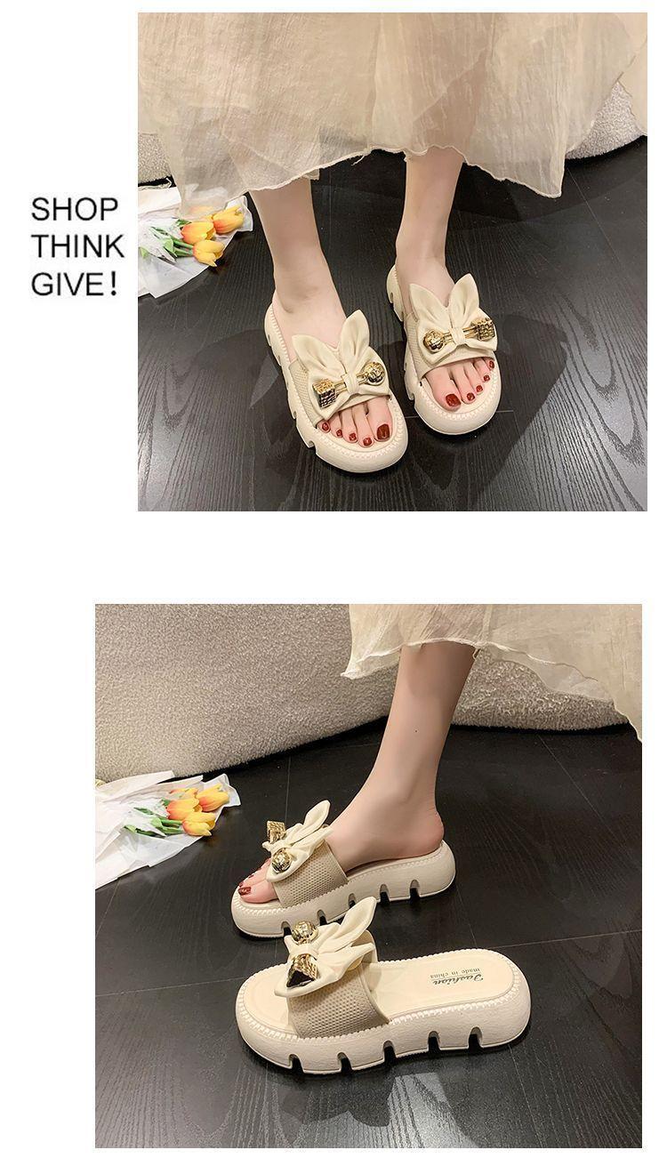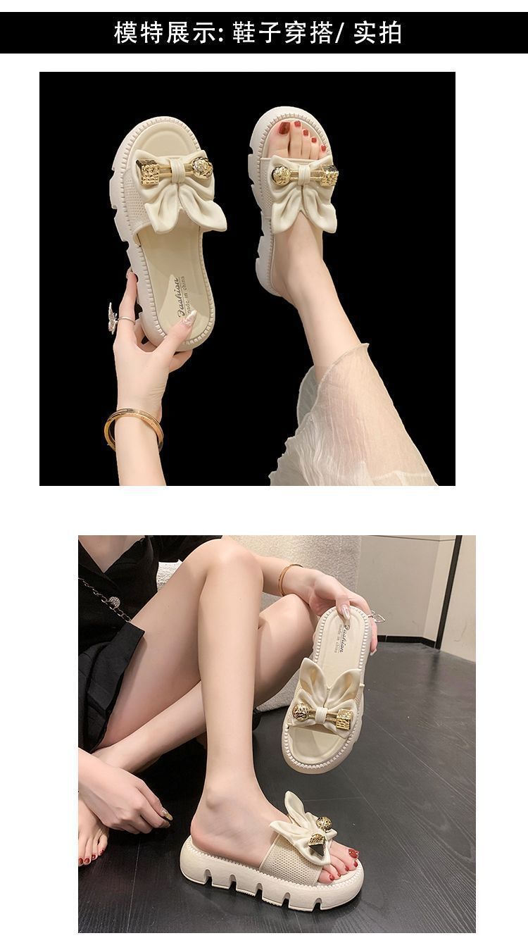 Zapatillas de Lazo de Moda de Hada para Exterior 2025 Verano Nuevas Zapatillas de Plataforma de Verano para Mujer de Suela Gruesa Antideslizantes para Playa