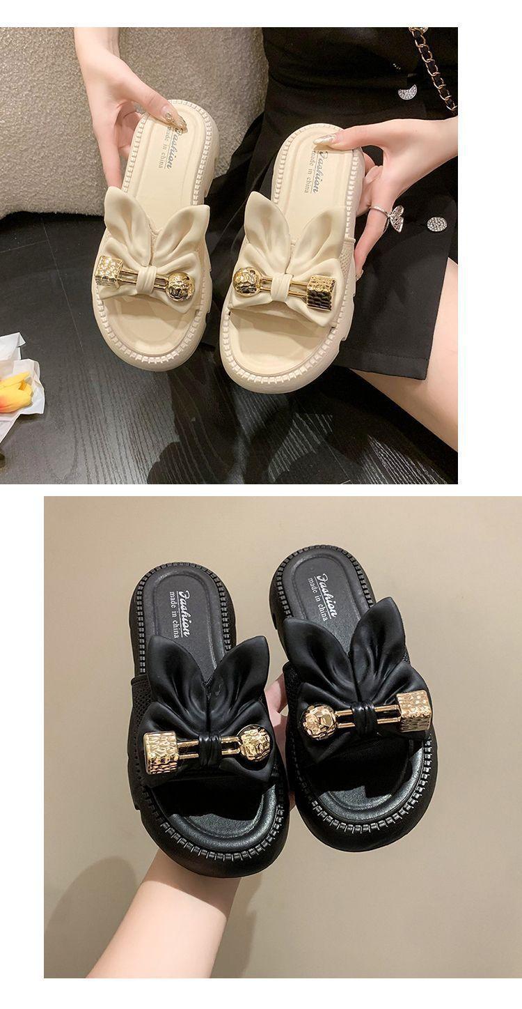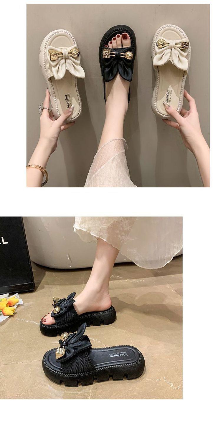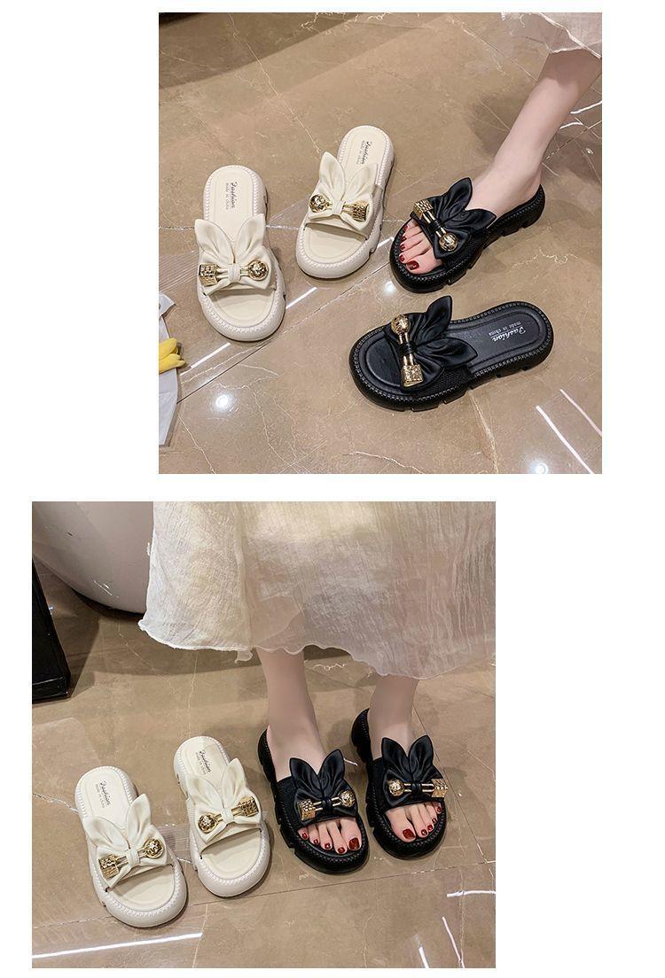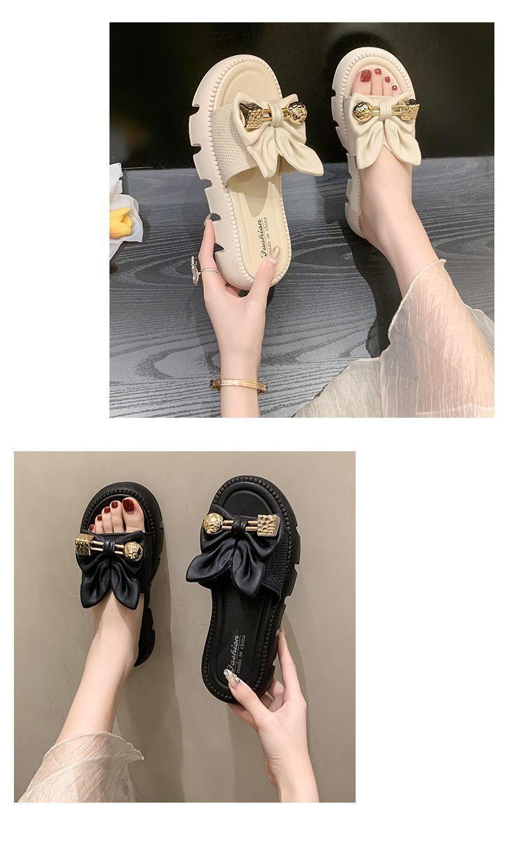 Zapatillas de Lazo de Moda de Hada para Exterior 2025 Verano Nuevas Zapatillas de Plataforma de Verano para Mujer de Suela Gruesa Antideslizantes para Playa