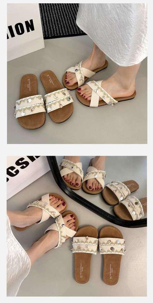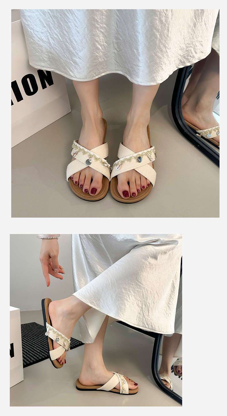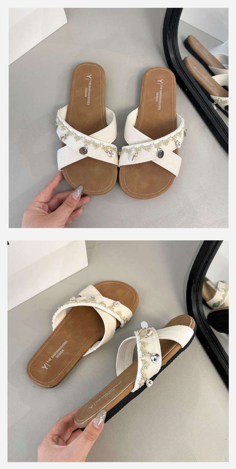 Sandalias planas de tiras cruzadas nuevas 2025 para mujer, verano, exterior, playa, estilo vacacional, chanclas, zapatos casuales para combinar con vestido