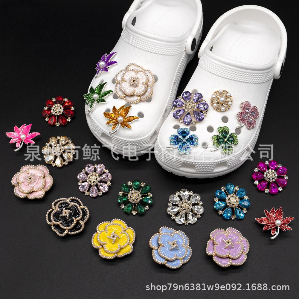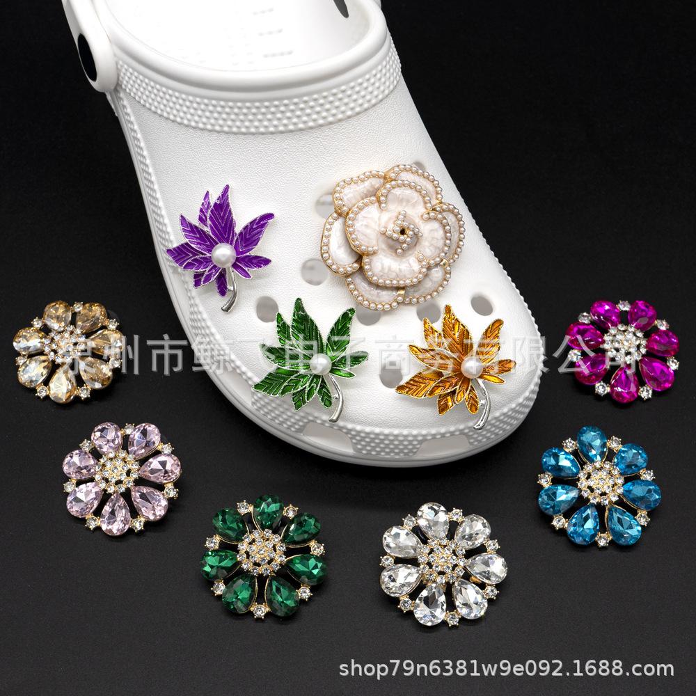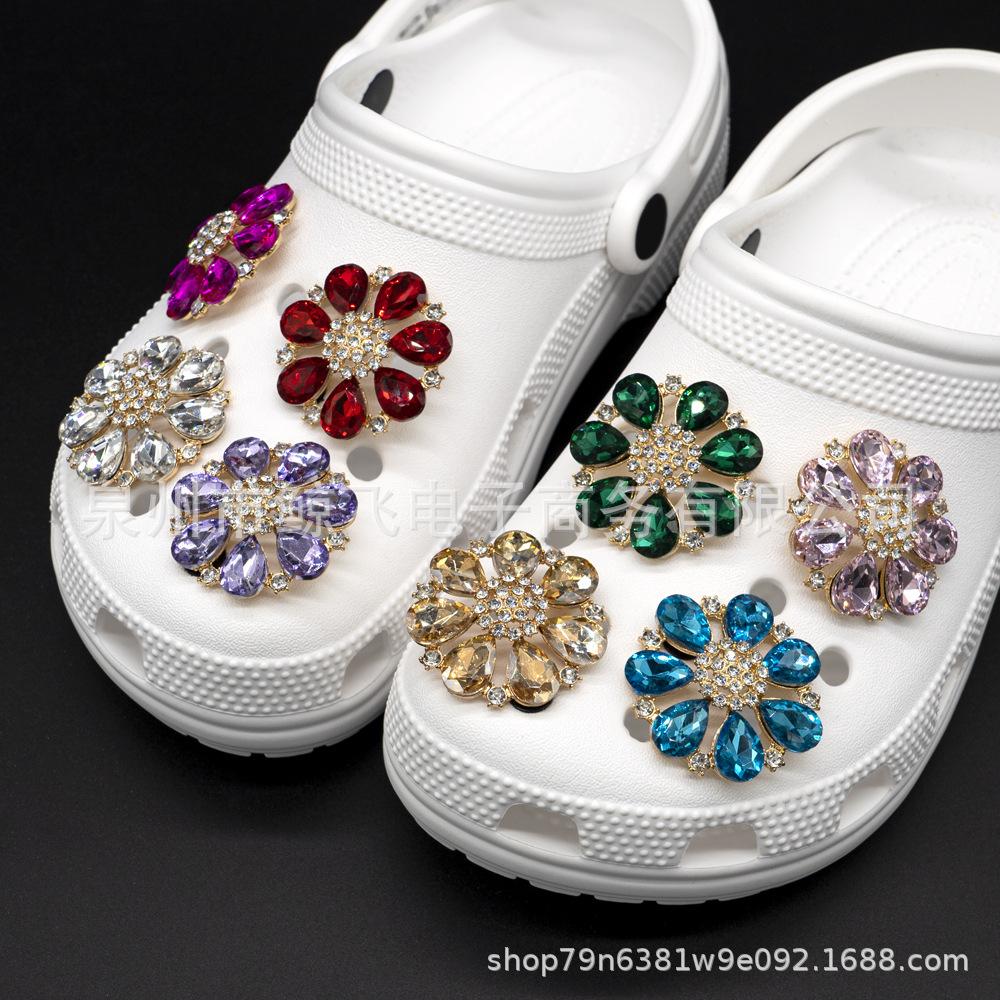 Nuevos Zuecos Metálicos de Venta Caliente Accesorios para Zapatos de Flores Removibles Zapatos de Jardín DIY Hebilla Decorativa Flor de Pedrería Hebilla para Zapatos de Flores