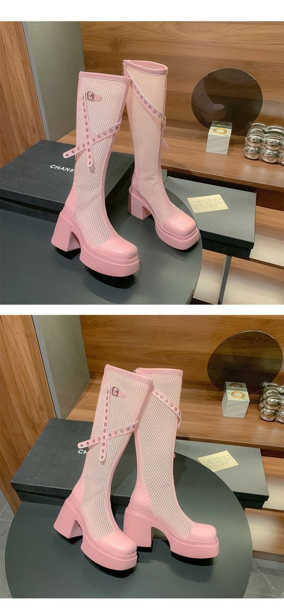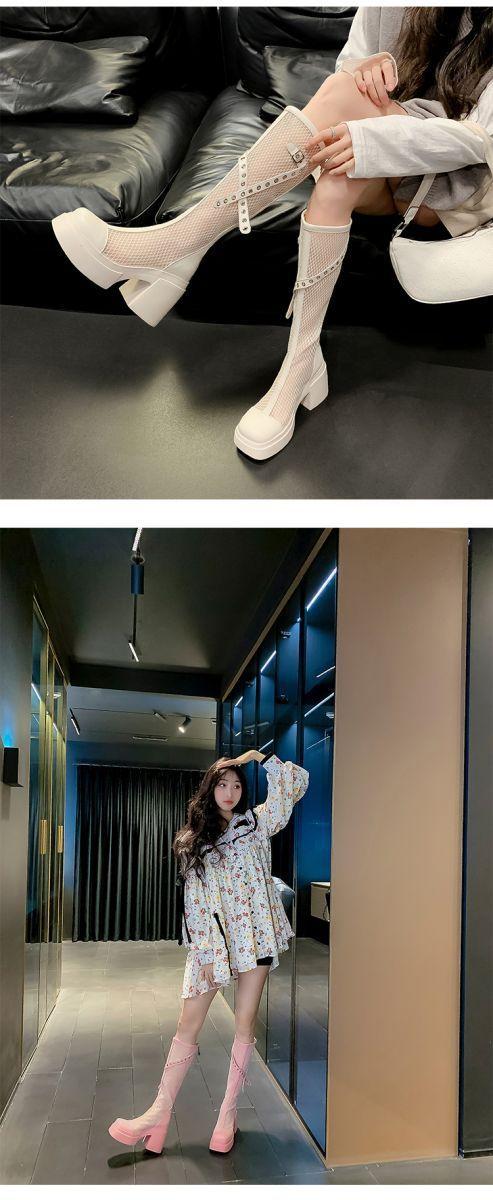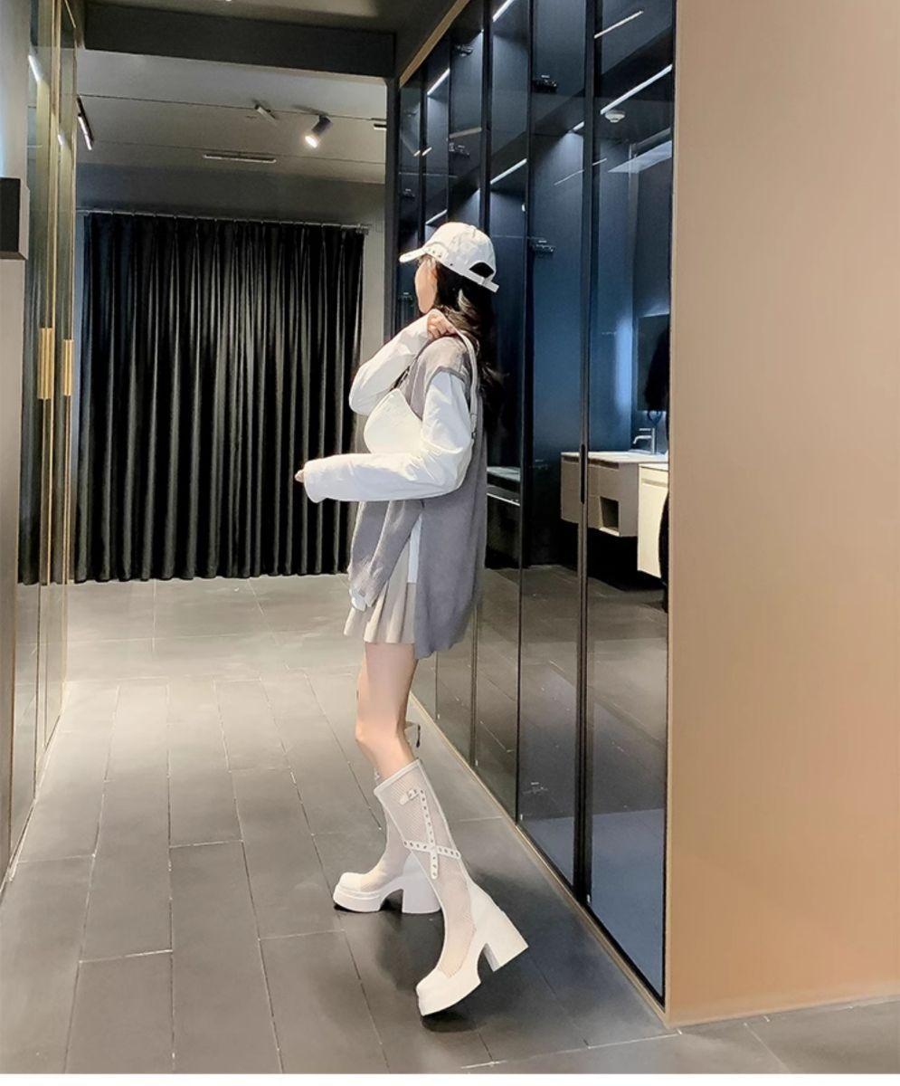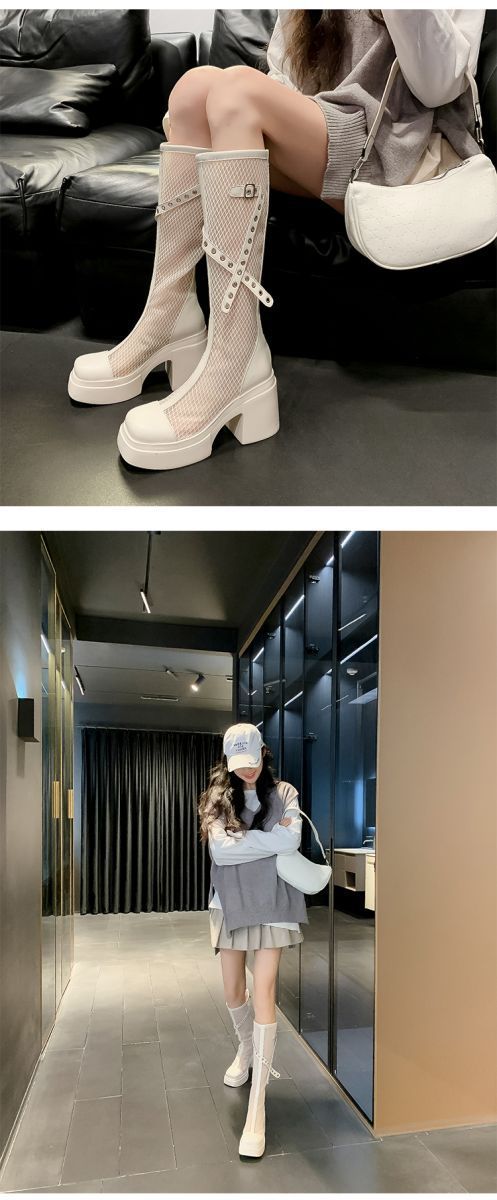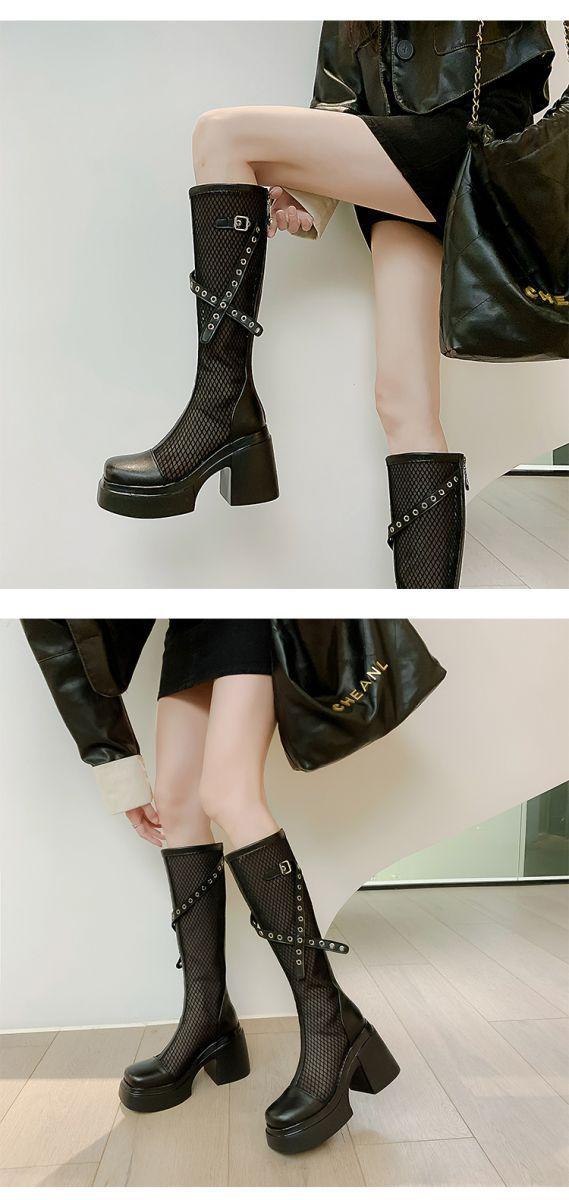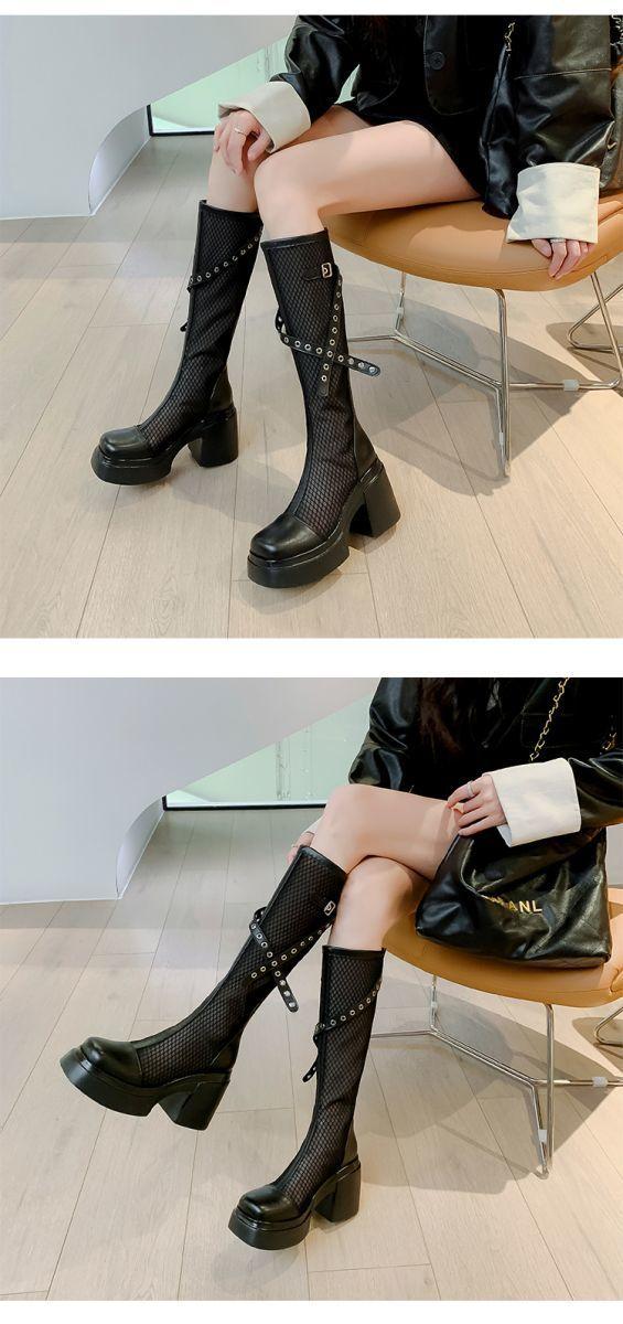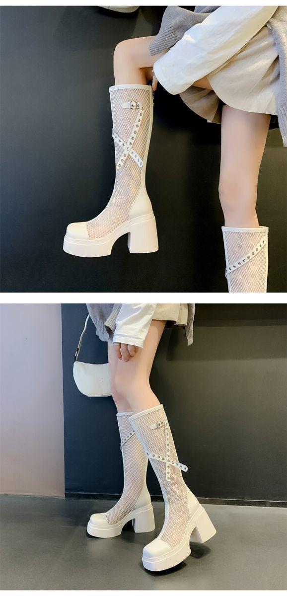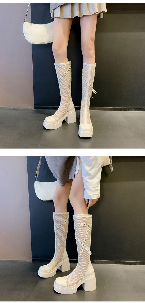 Verano 2025 Super Tacón Alto Tacón Grueso Suela Gruesa Botas de Malla para Mujer Malla Hueca Hebilla de Cinturón Botas Altas Sexys Sandalias Transpirables