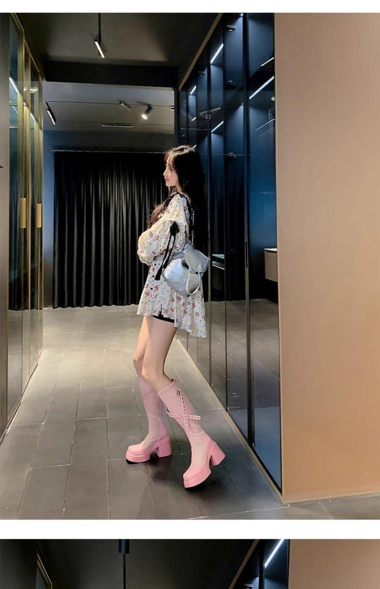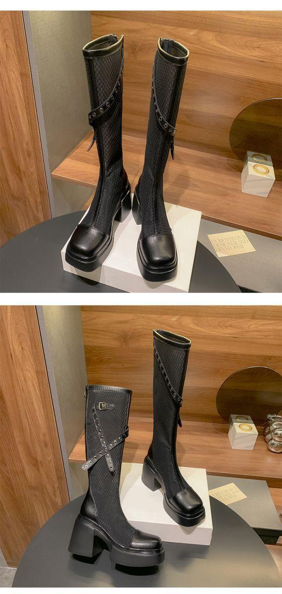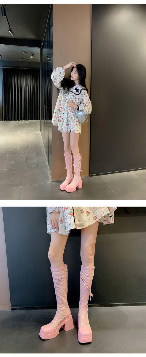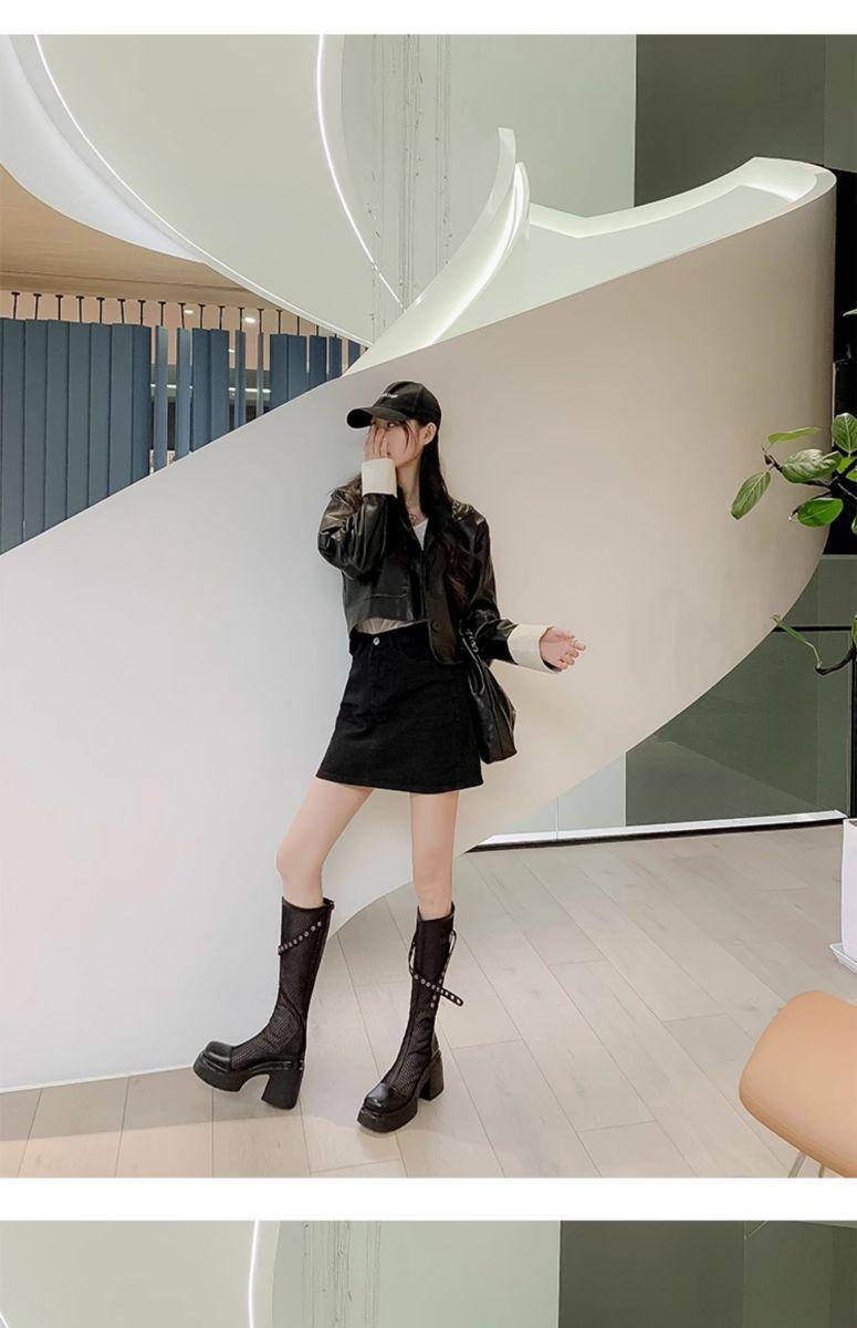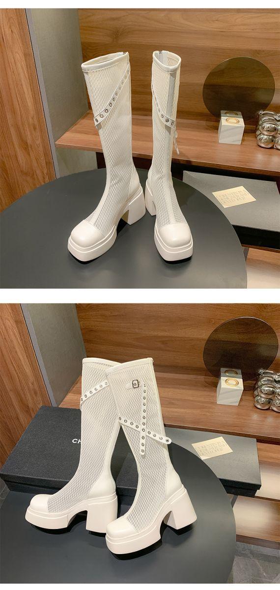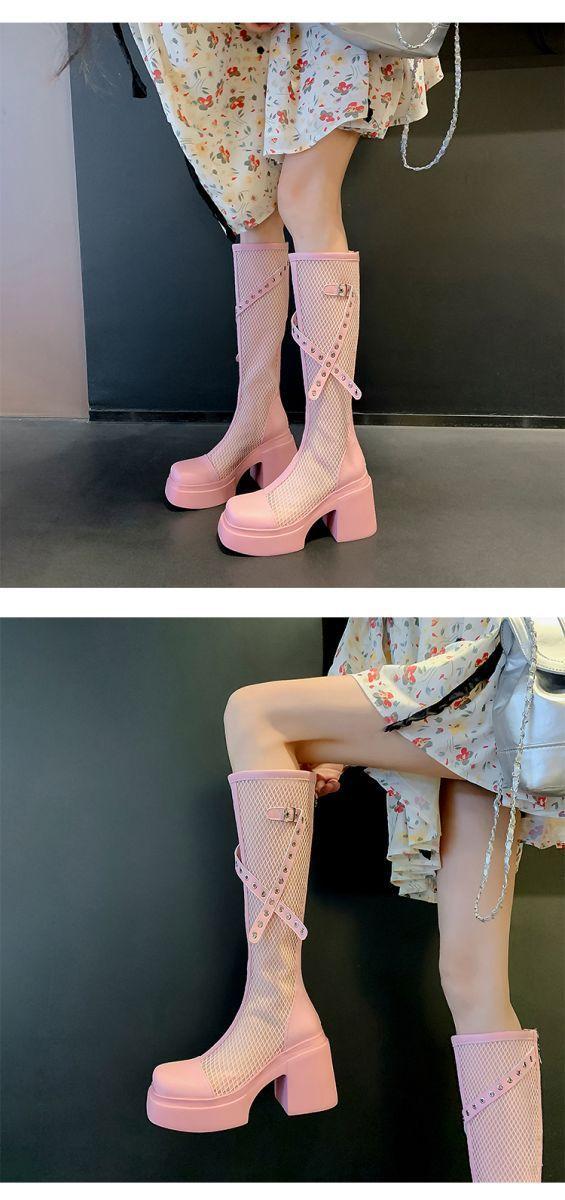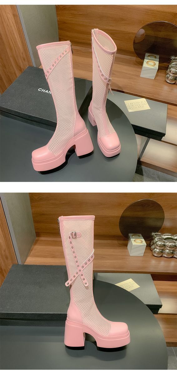 Verano 2025 Super Tacón Alto Tacón Grueso Suela Gruesa Botas de Malla para Mujer Malla Hueca Hebilla de Cinturón Botas Altas Sexys Sandalias Transpirables