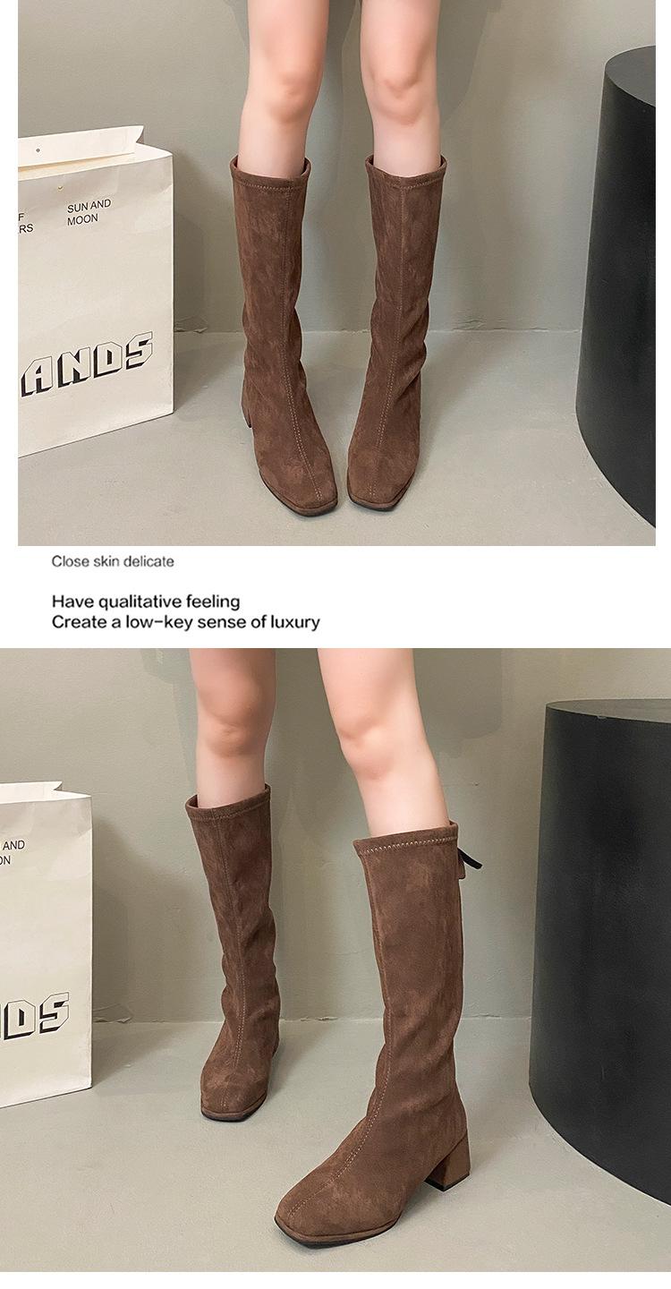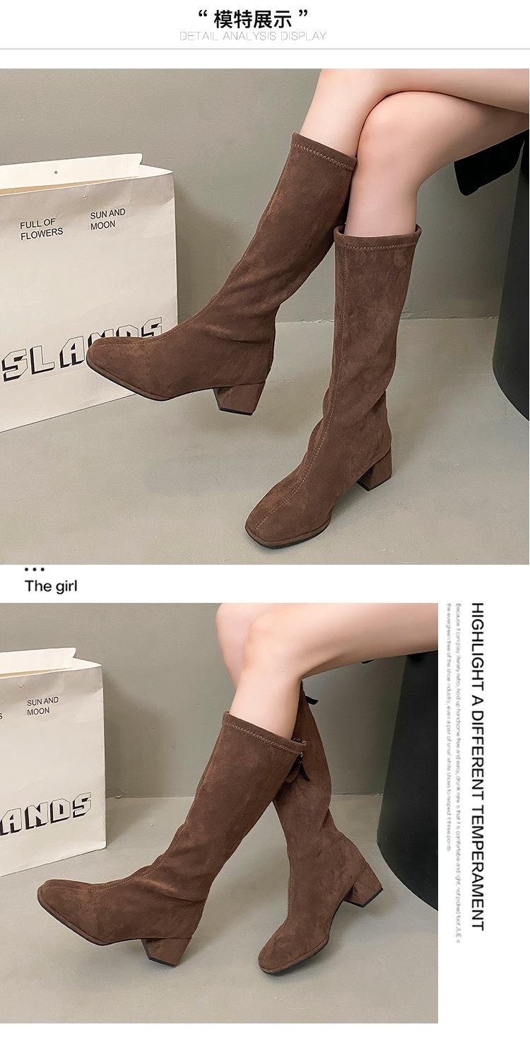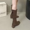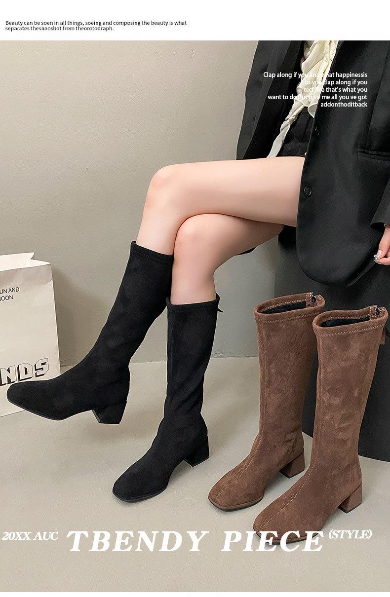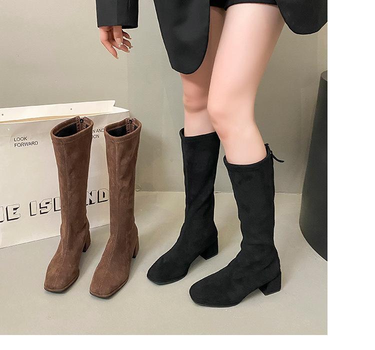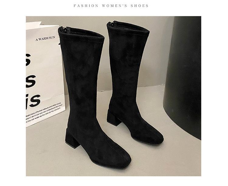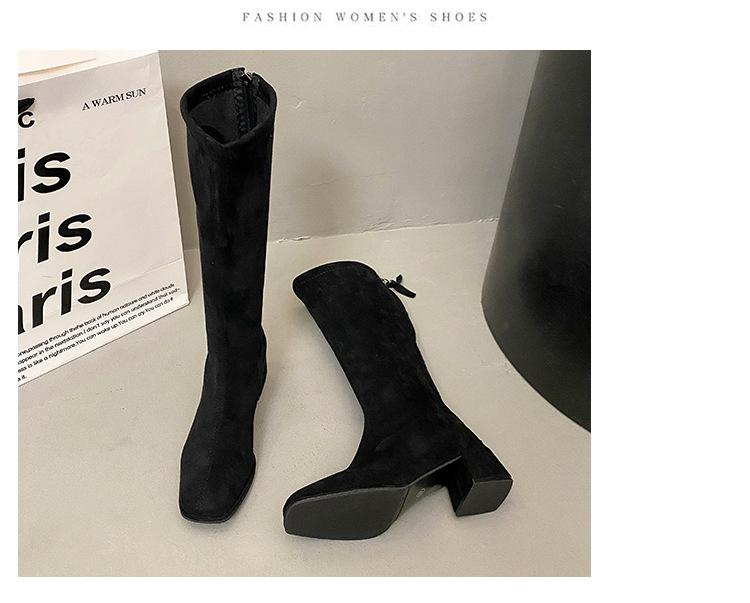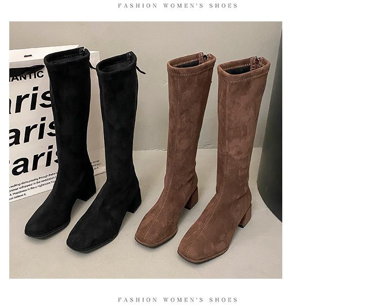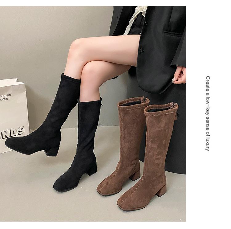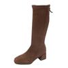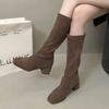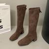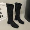 Botas largas de tacón alto grueso francés por encima de la rodilla para mujer, botas largas 2025 otoño/invierno nuevas de gamuza elástica, botas estilizadas