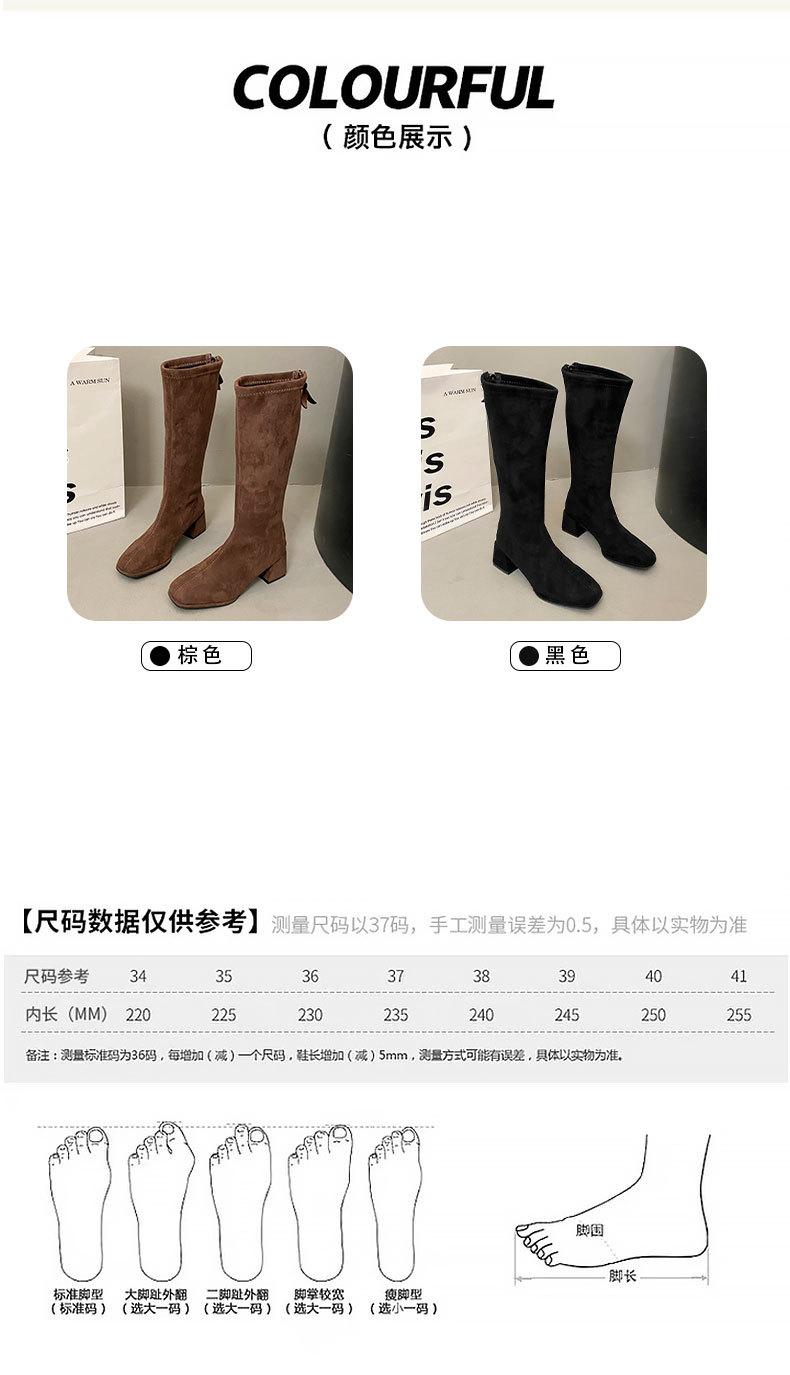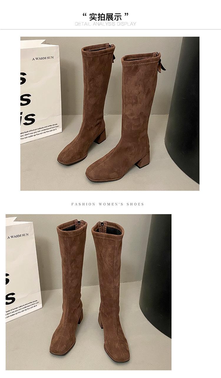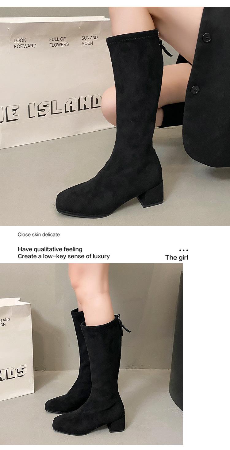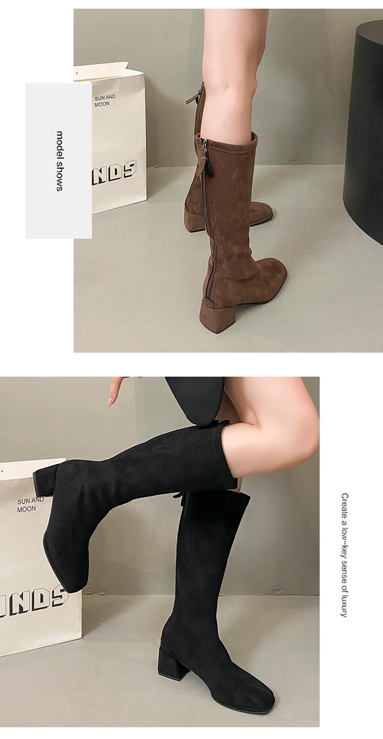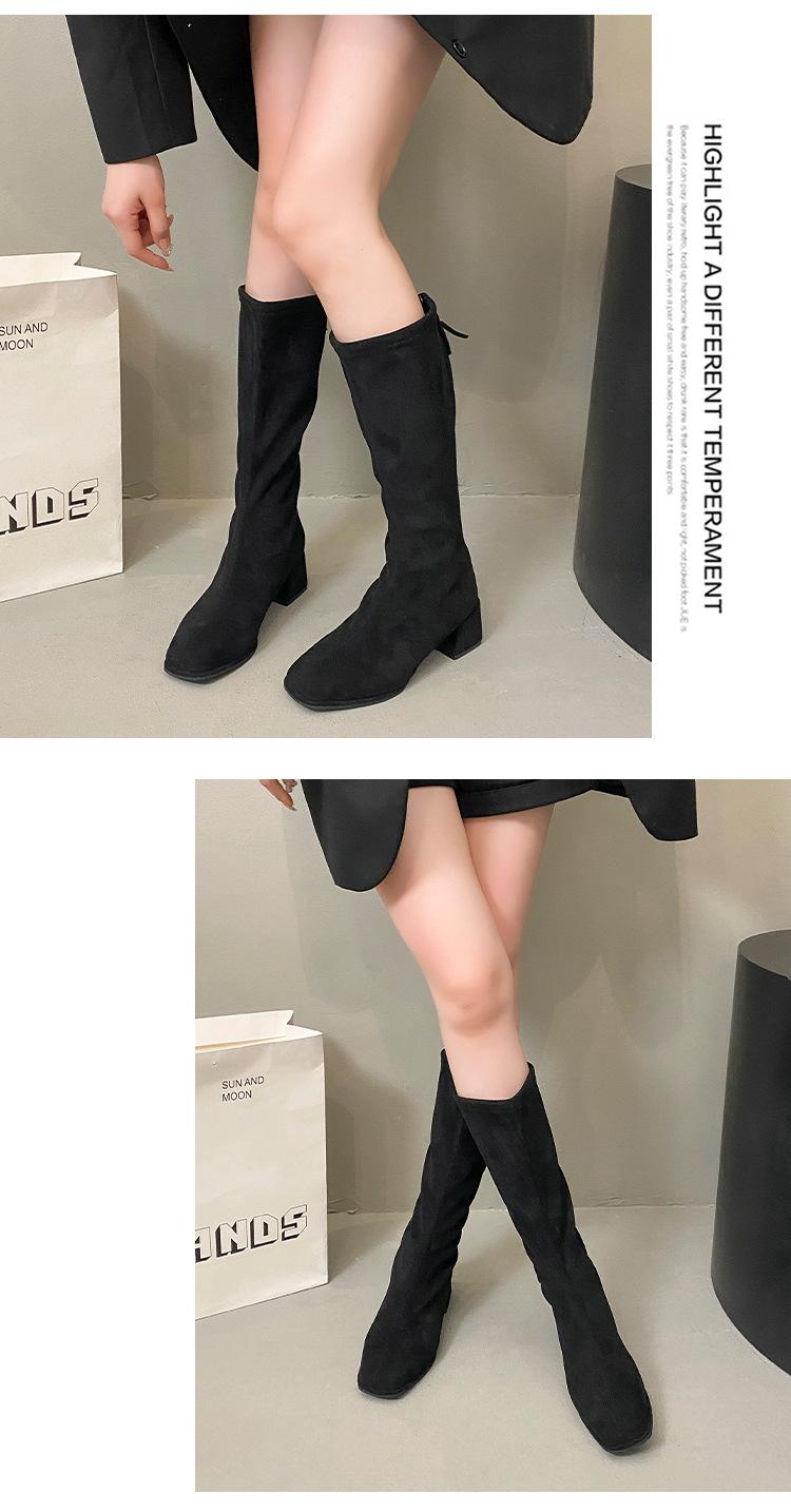 Botas largas de tacón alto grueso francés por encima de la rodilla para mujer, botas largas 2025 otoño/invierno nuevas de gamuza elástica, botas estilizadas