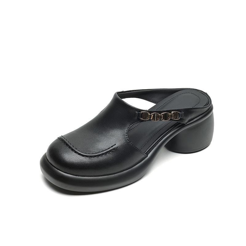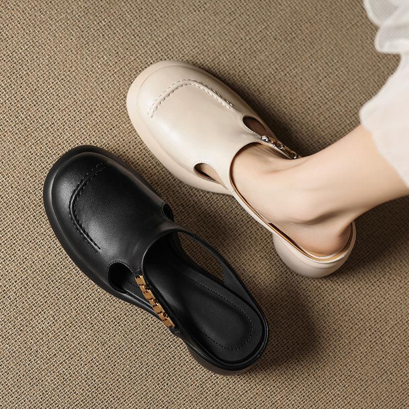 Zapatillas bajas retro francesas para mujer para usar en exteriores 2025 Nuevas mulas planas de verano para uso exterior Sandalias de suela gruesa