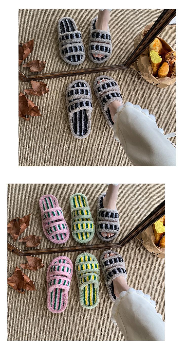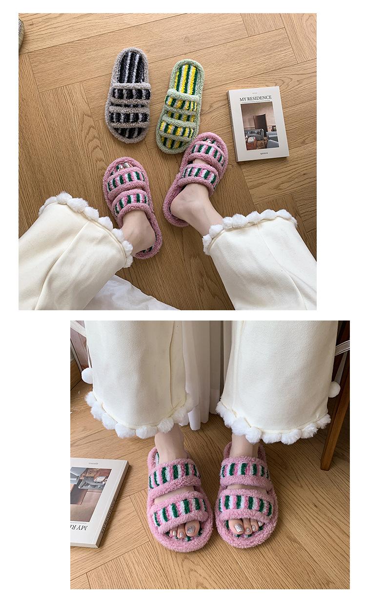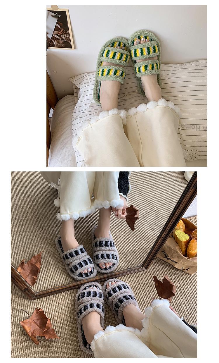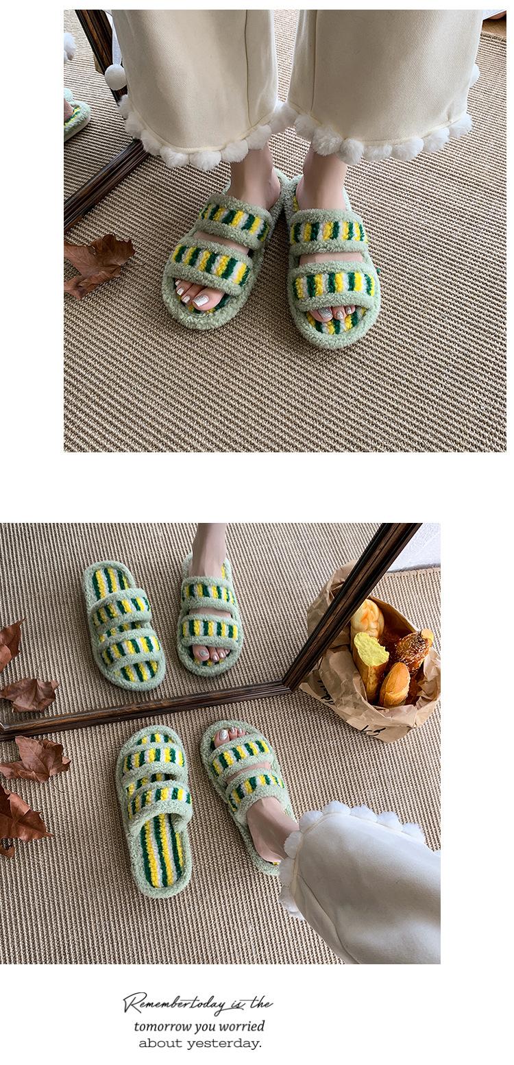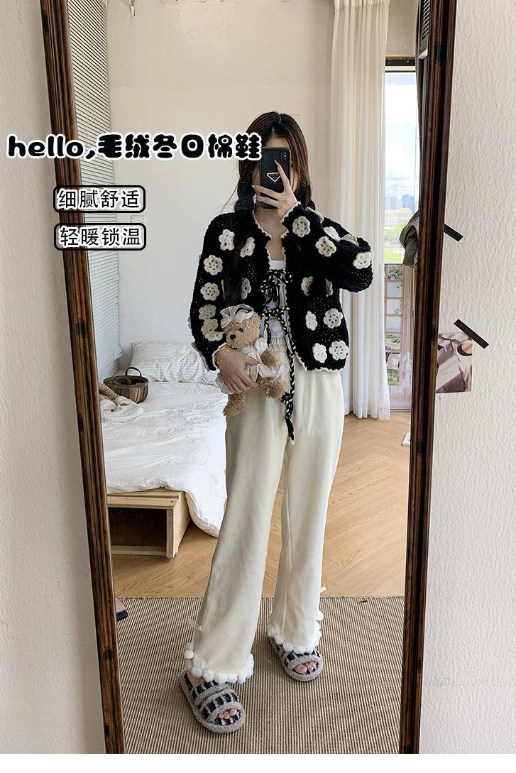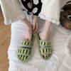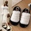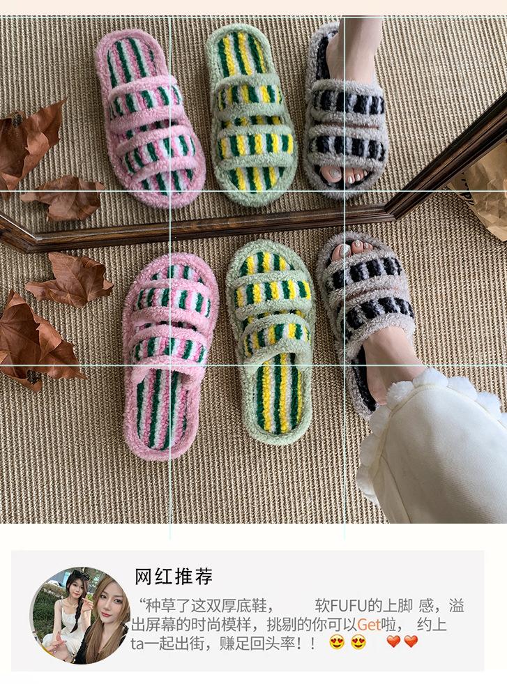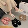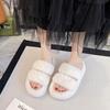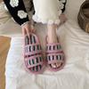 Pantuflas Difusas de Una Tira Estilo Coreano para Mujer para Exterior 2025 Otoño/Invierno Nueva Moda Versátiles de Suela Gruesa para Casa de Algodón de Punta Abierta