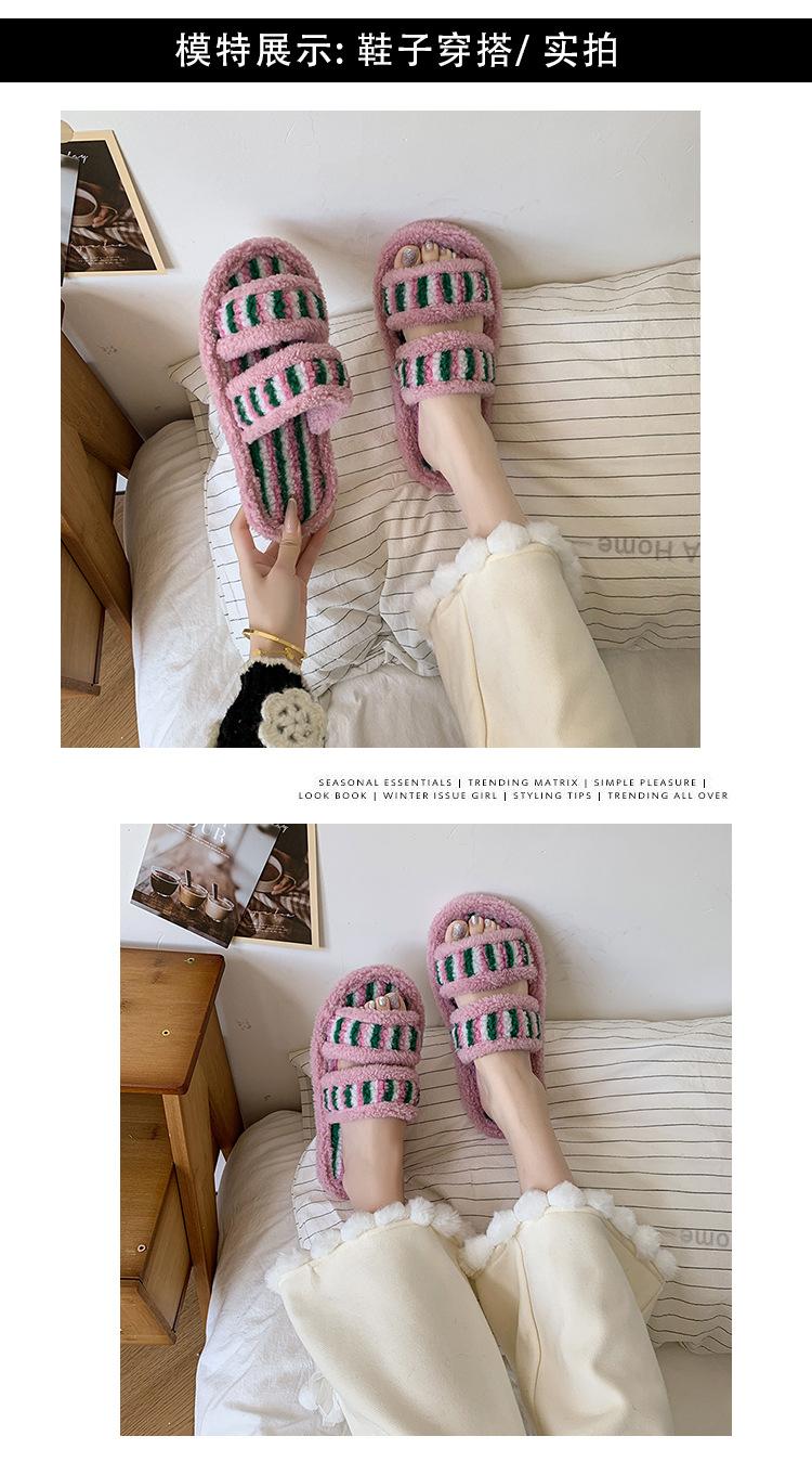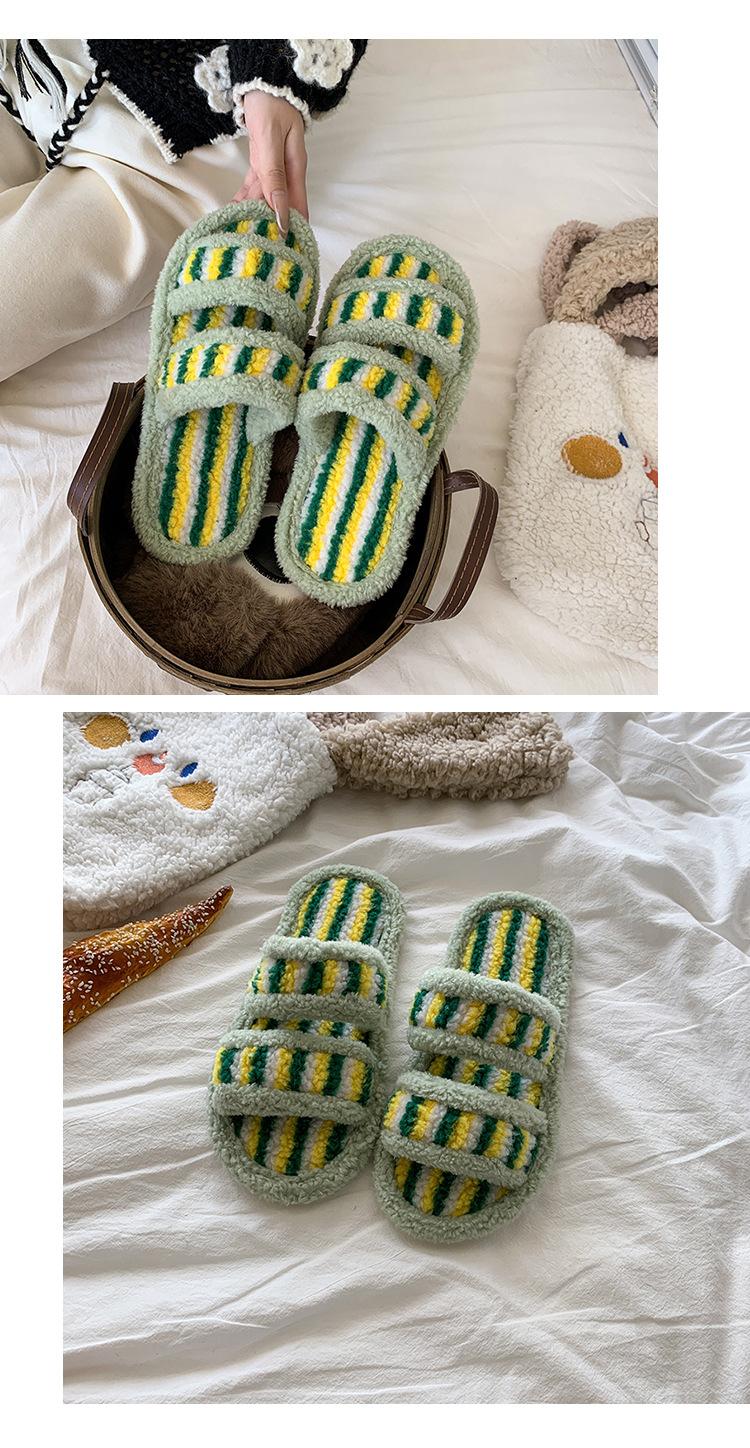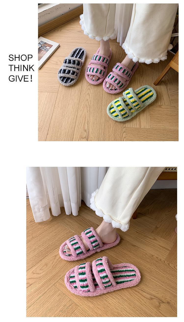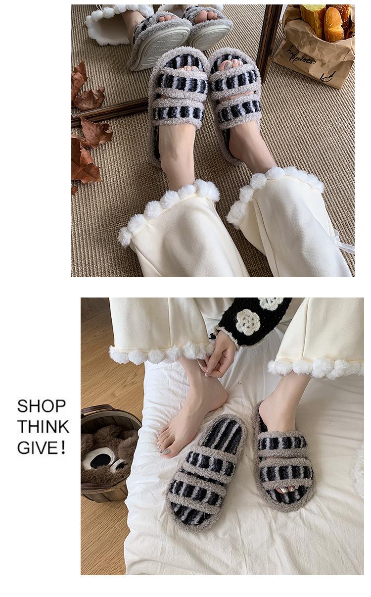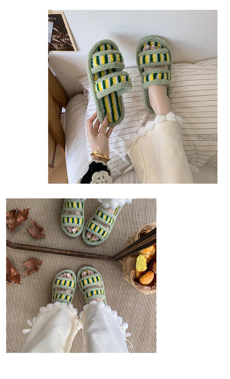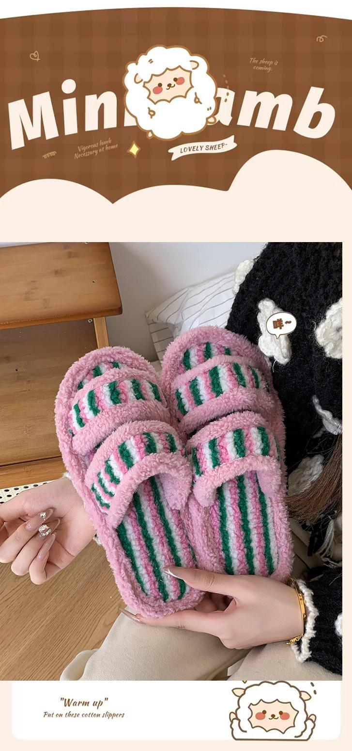 Pantuflas Difusas de Una Tira Estilo Coreano para Mujer para Exterior 2025 Otoño/Invierno Nueva Moda Versátiles de Suela Gruesa para Casa de Algodón de Punta Abierta