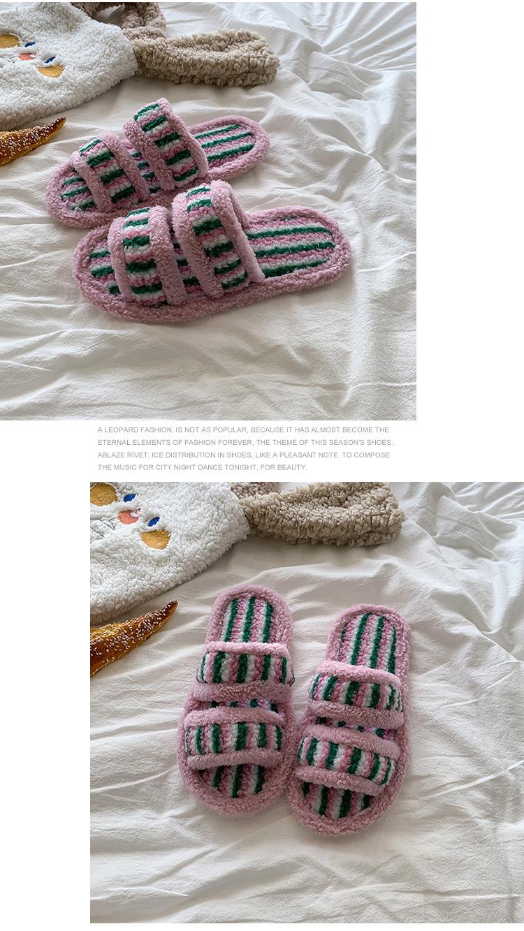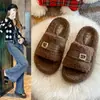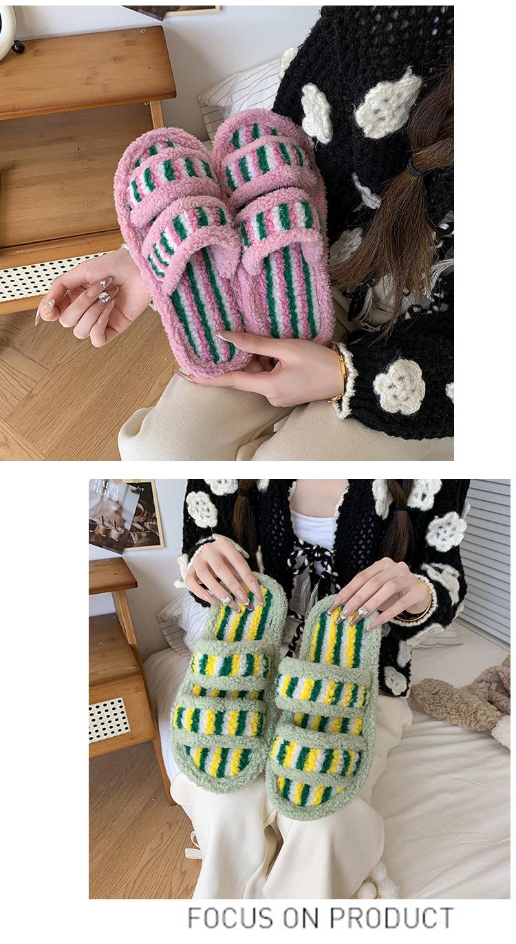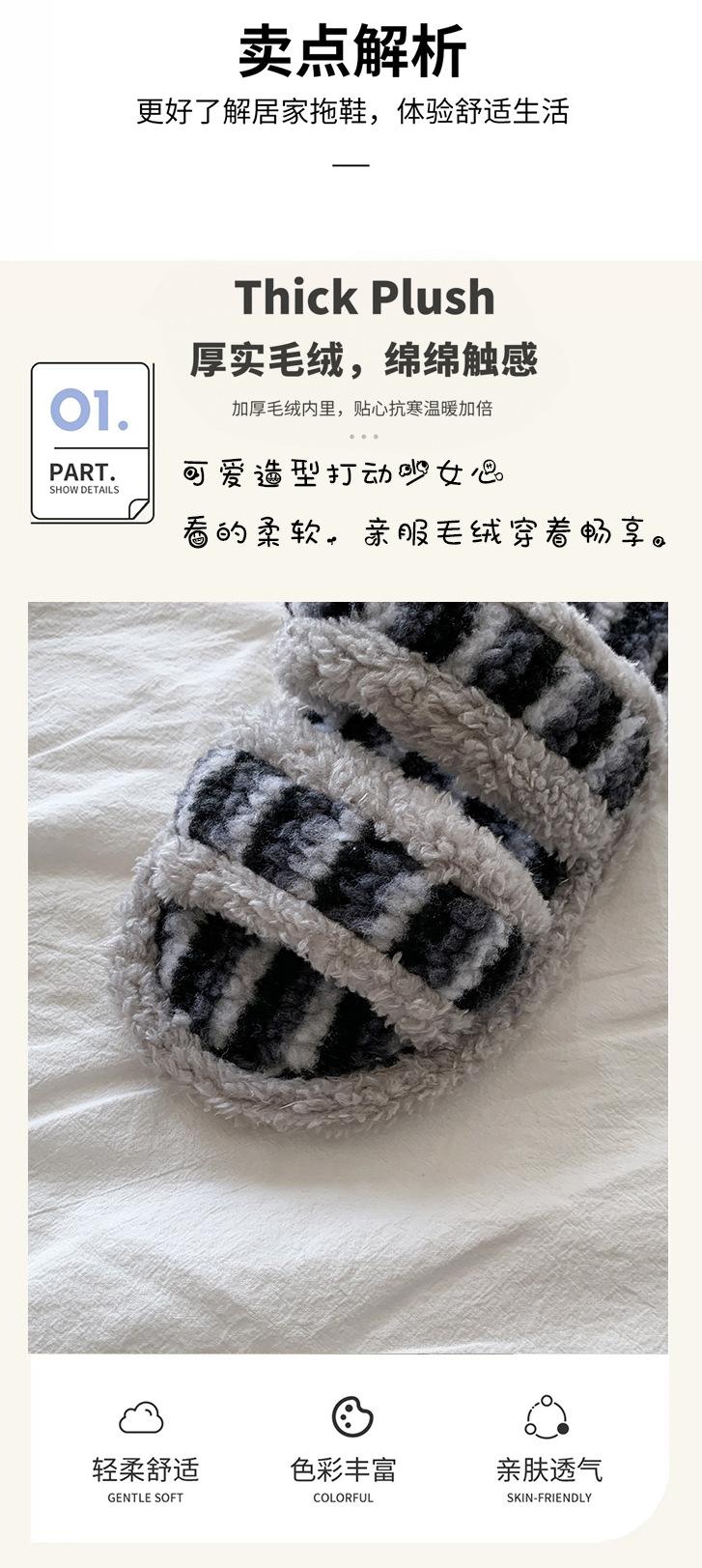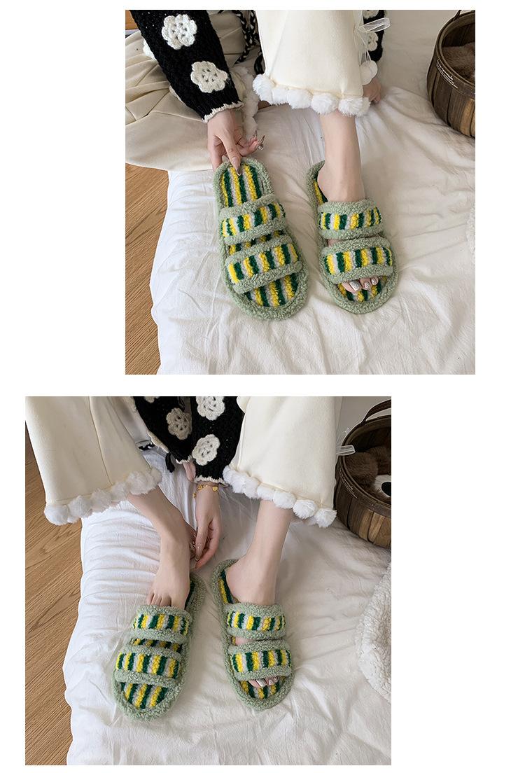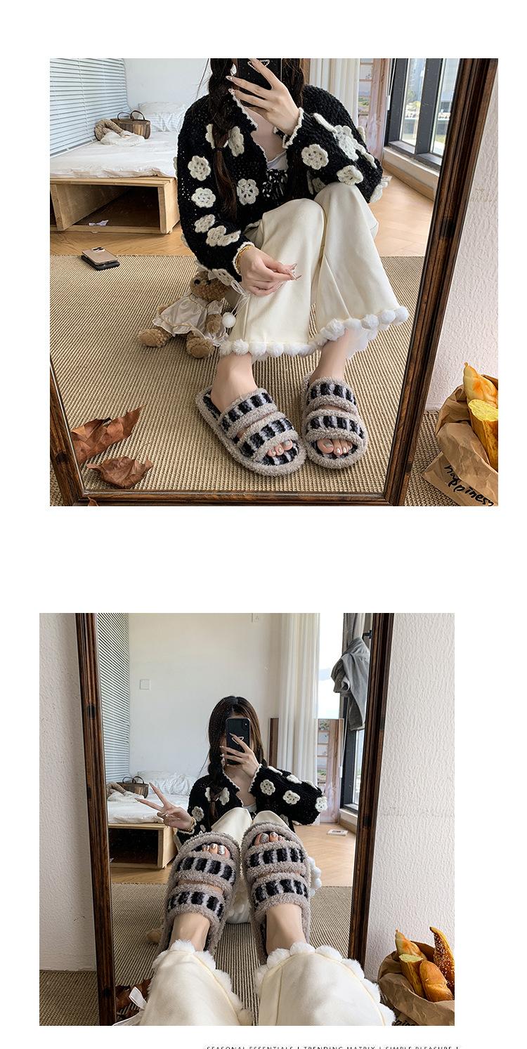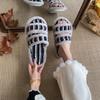 Pantuflas Difusas de Una Tira Estilo Coreano para Mujer para Exterior 2025 Otoño/Invierno Nueva Moda Versátiles de Suela Gruesa para Casa de Algodón de Punta Abierta