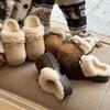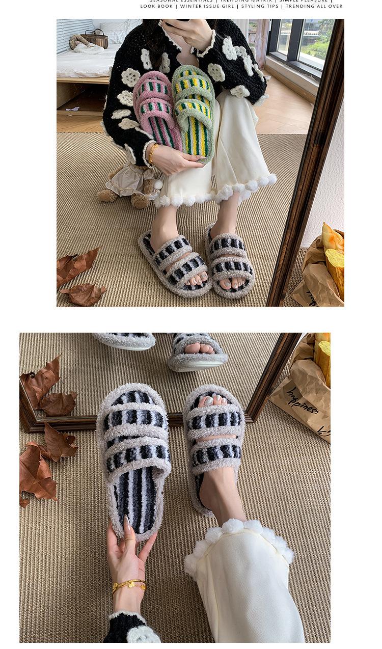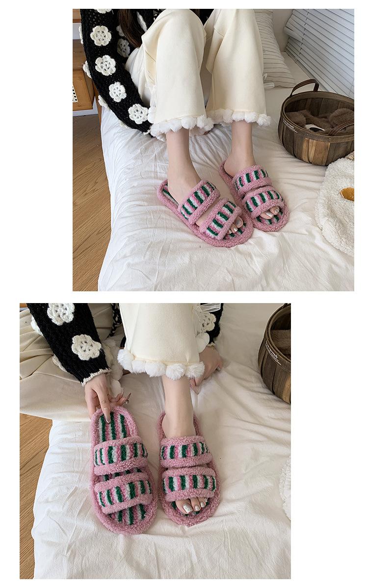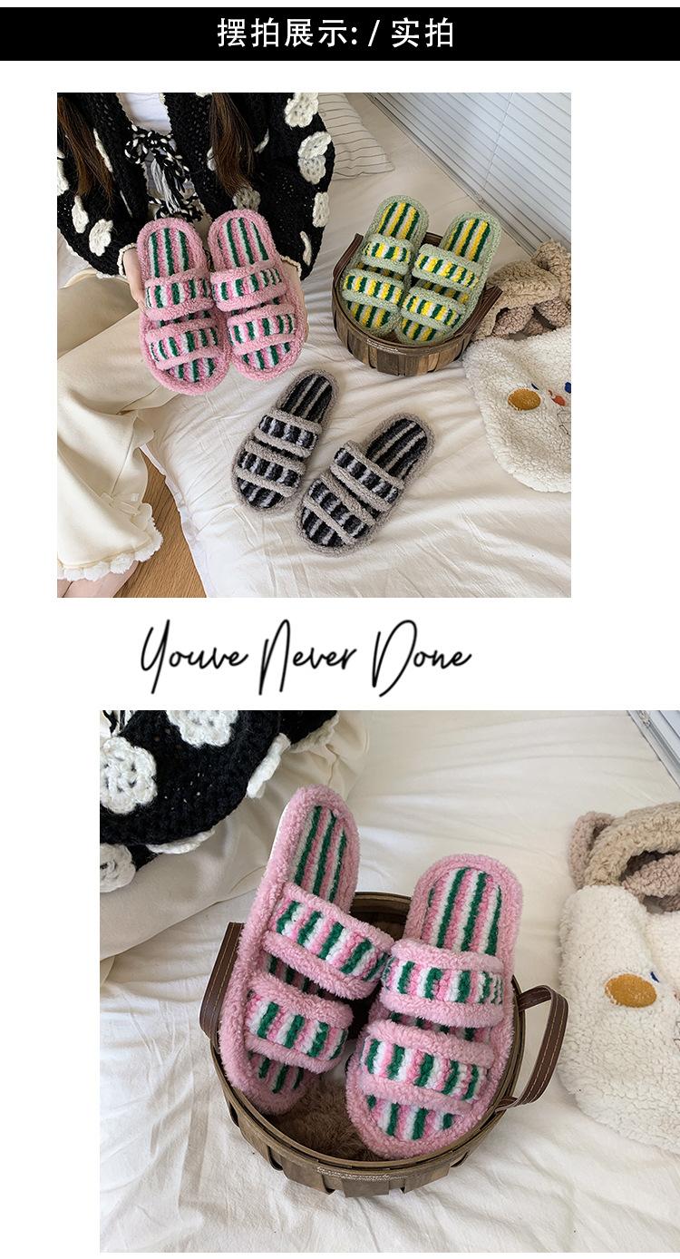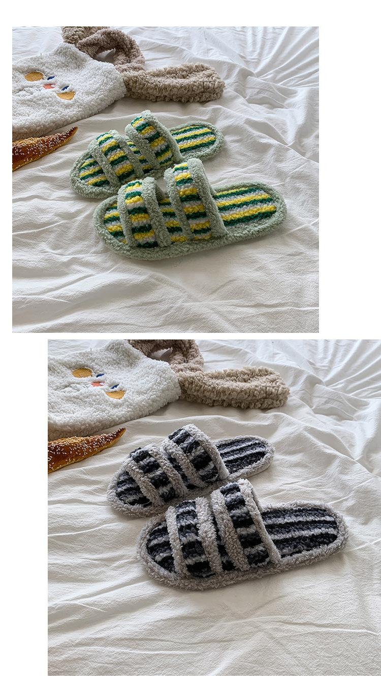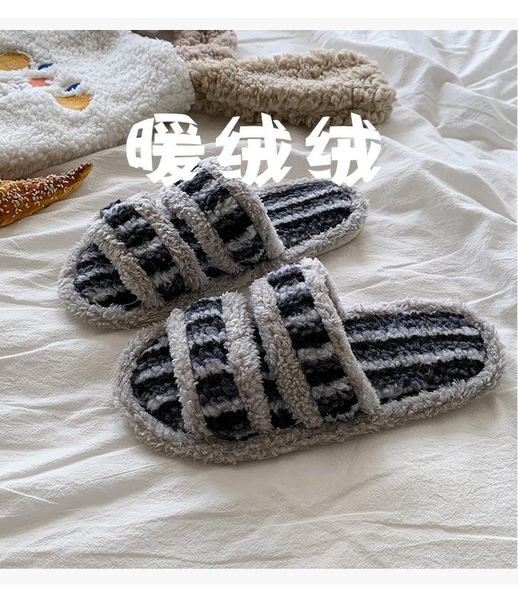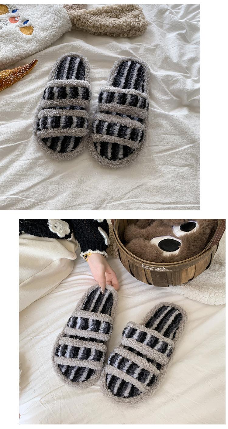 Pantuflas Difusas de Una Tira Estilo Coreano para Mujer para Exterior 2025 Otoño/Invierno Nueva Moda Versátiles de Suela Gruesa para Casa de Algodón de Punta Abierta