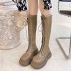 Botas largas con cordones de diseño único para mujer, nuevas botas largas de suela gruesa de alto valor para otoño e invierno 2022, botas delgadas de moda