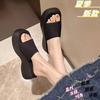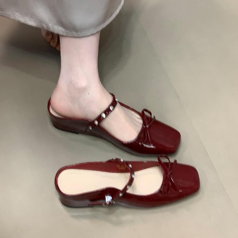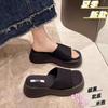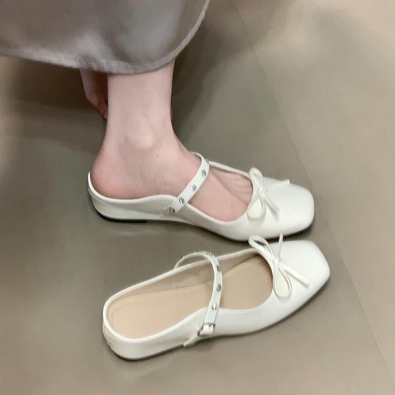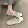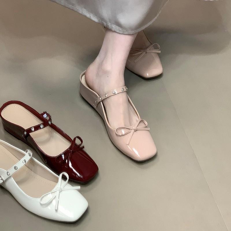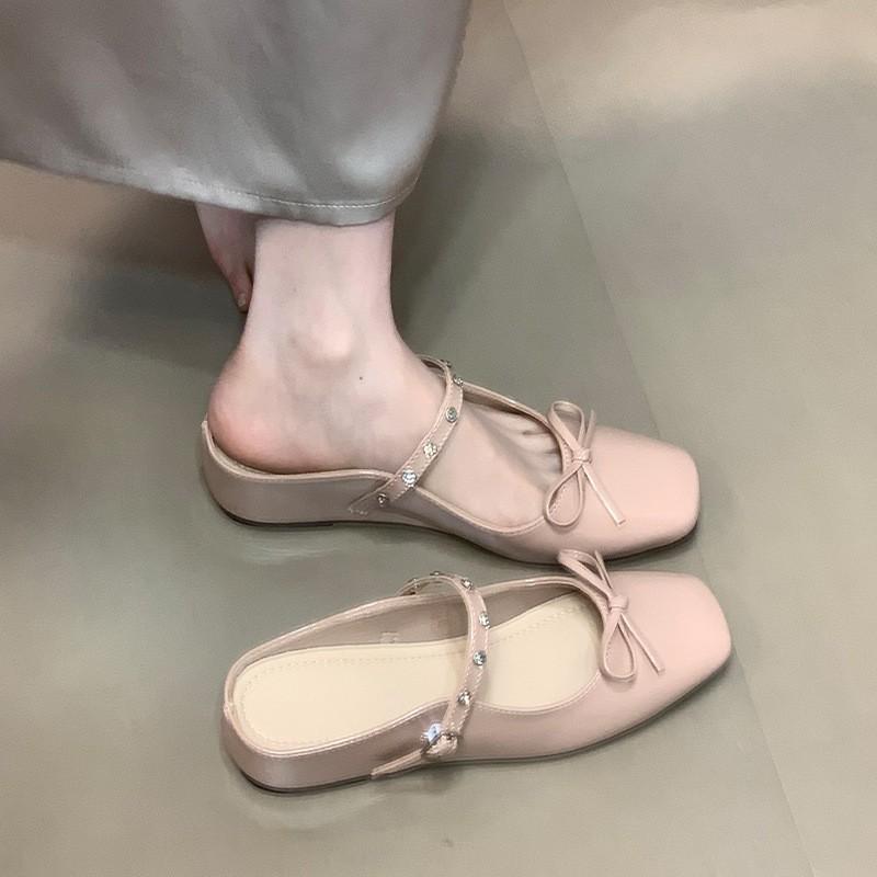Zapatillas de media caña con plataforma interior, suela gruesa, lazo, suela suave, puntera color rosa nude para verano para mujer, sandalias mule para exterior