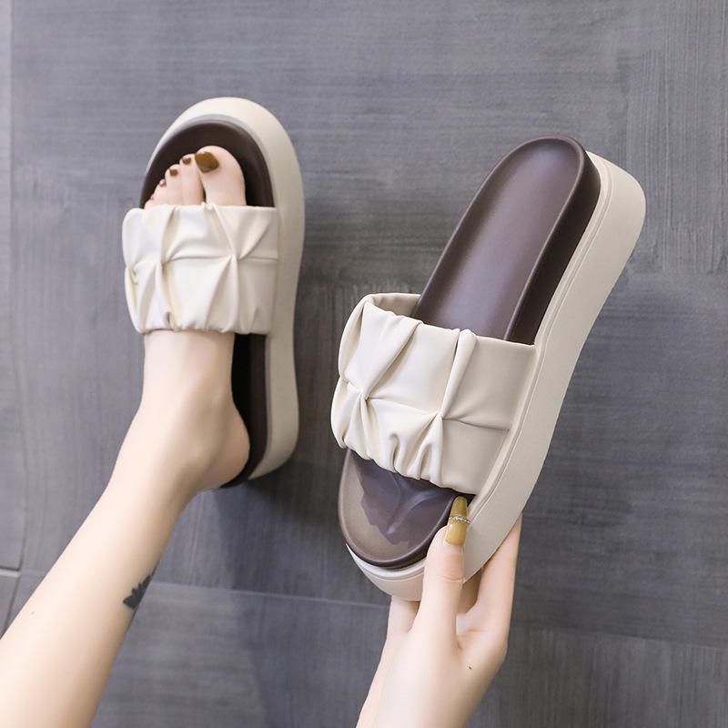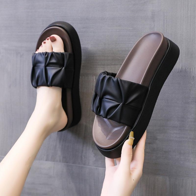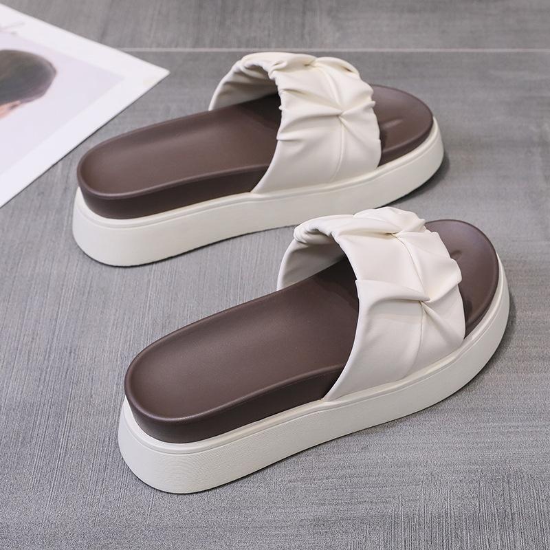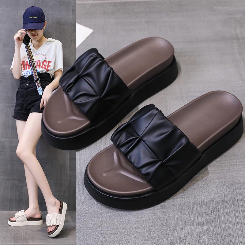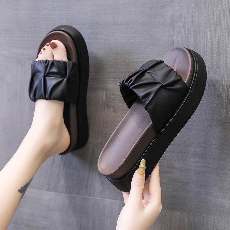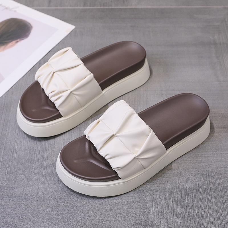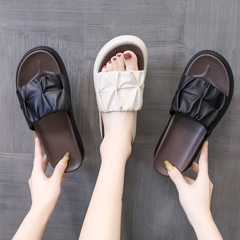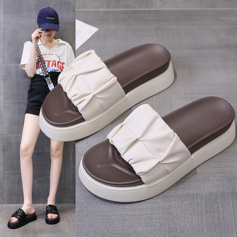 Sandalias y pantuflas para mujer verano para exteriores 2025 nuevo zapatos de playa de suela gruesa viento de hadas plisado suela suave pantuflas de playa