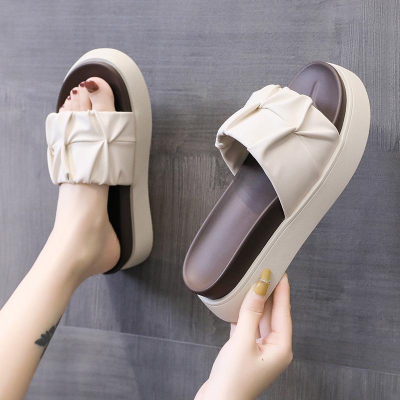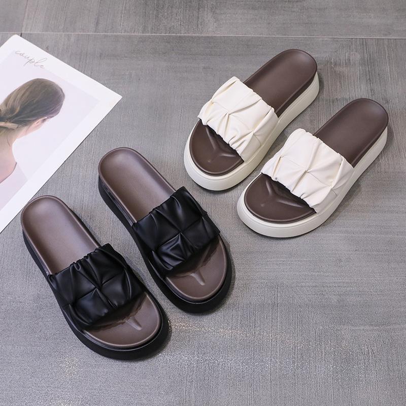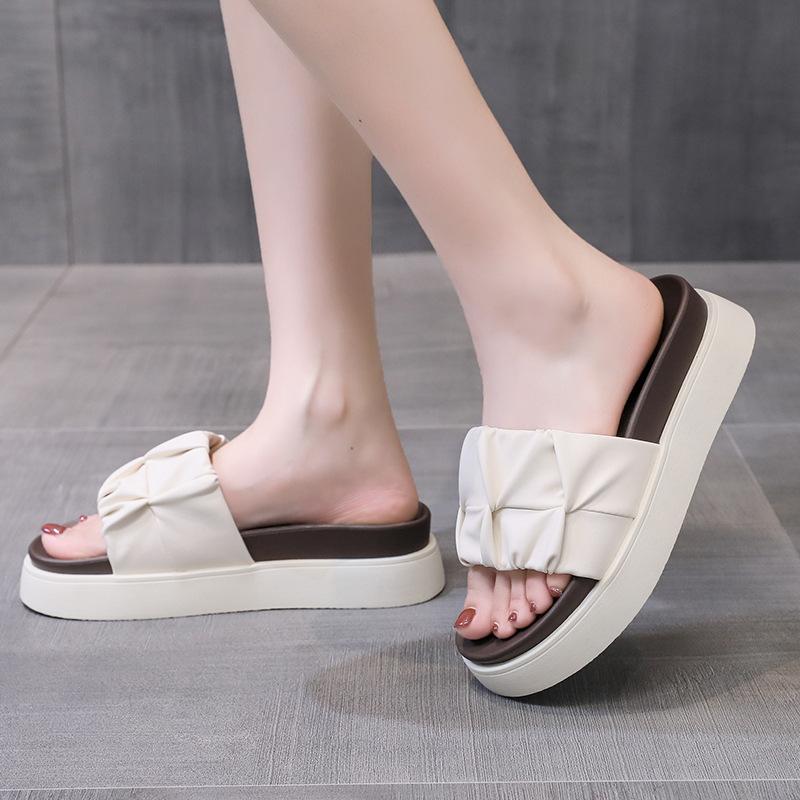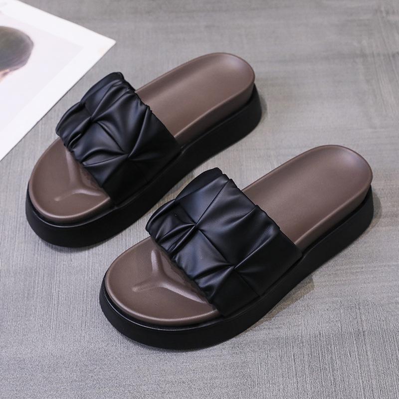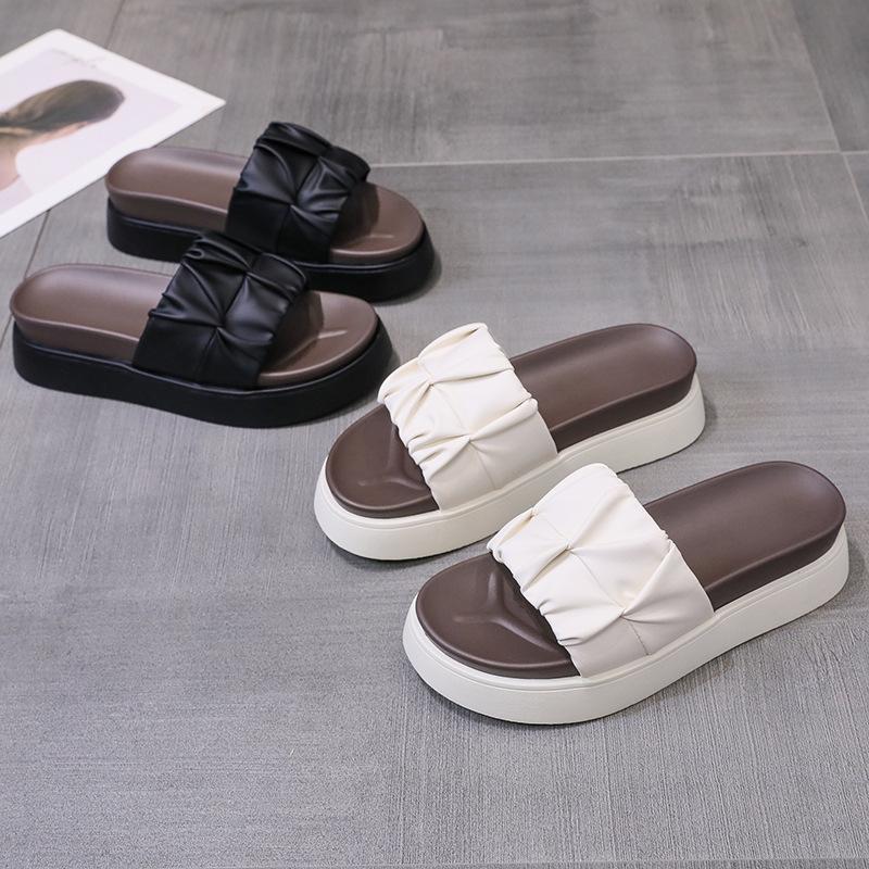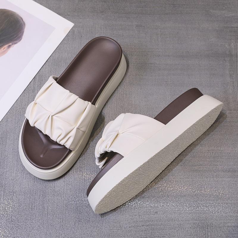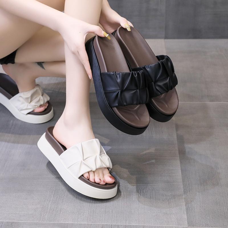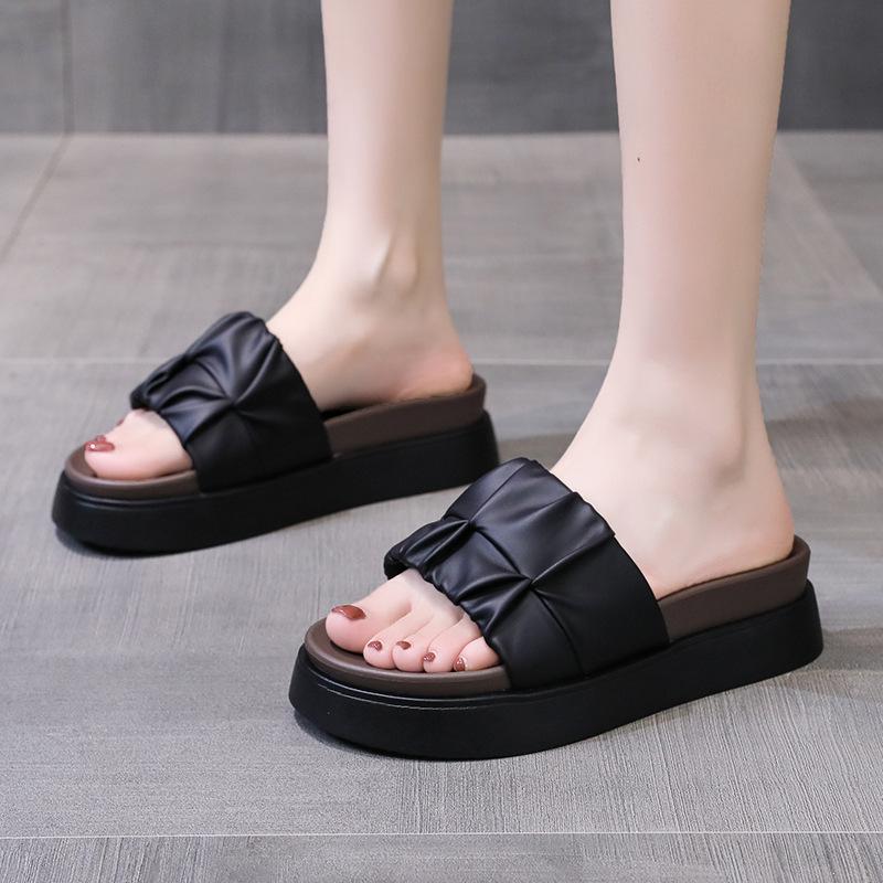 Sandalias y pantuflas para mujer verano para exteriores 2025 nuevo zapatos de playa de suela gruesa viento de hadas plisado suela suave pantuflas de playa