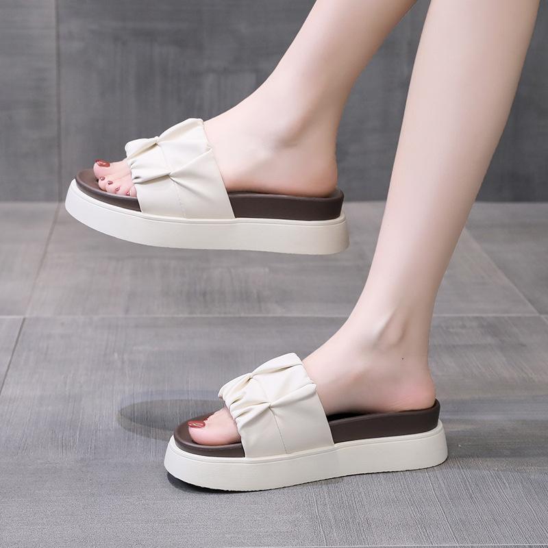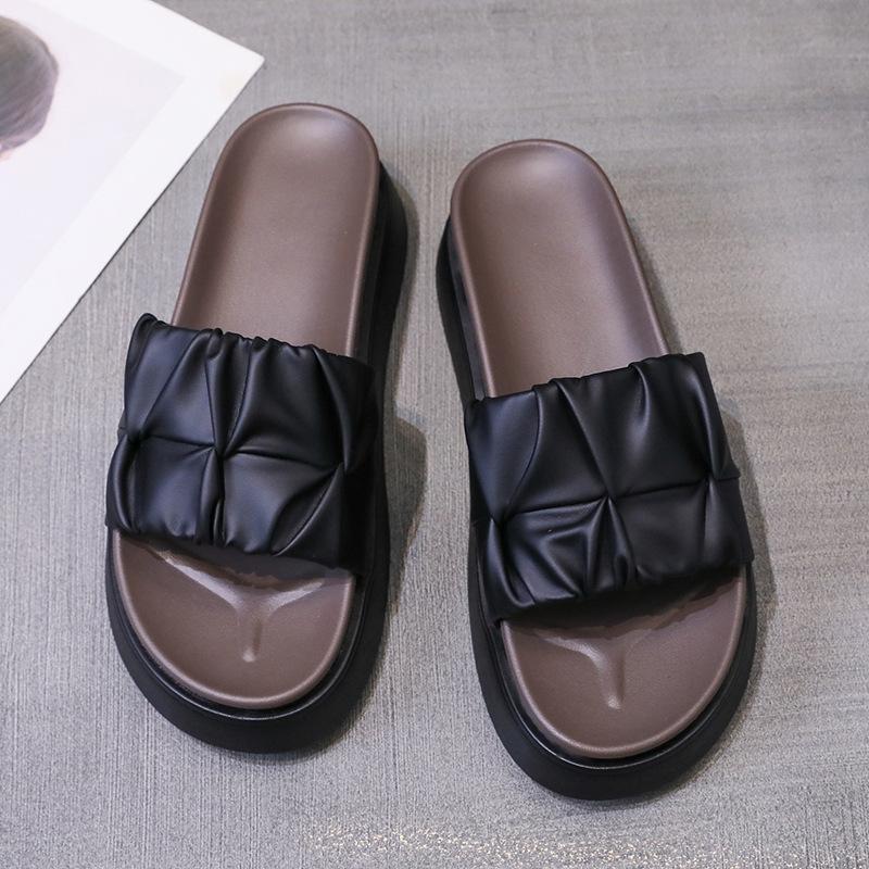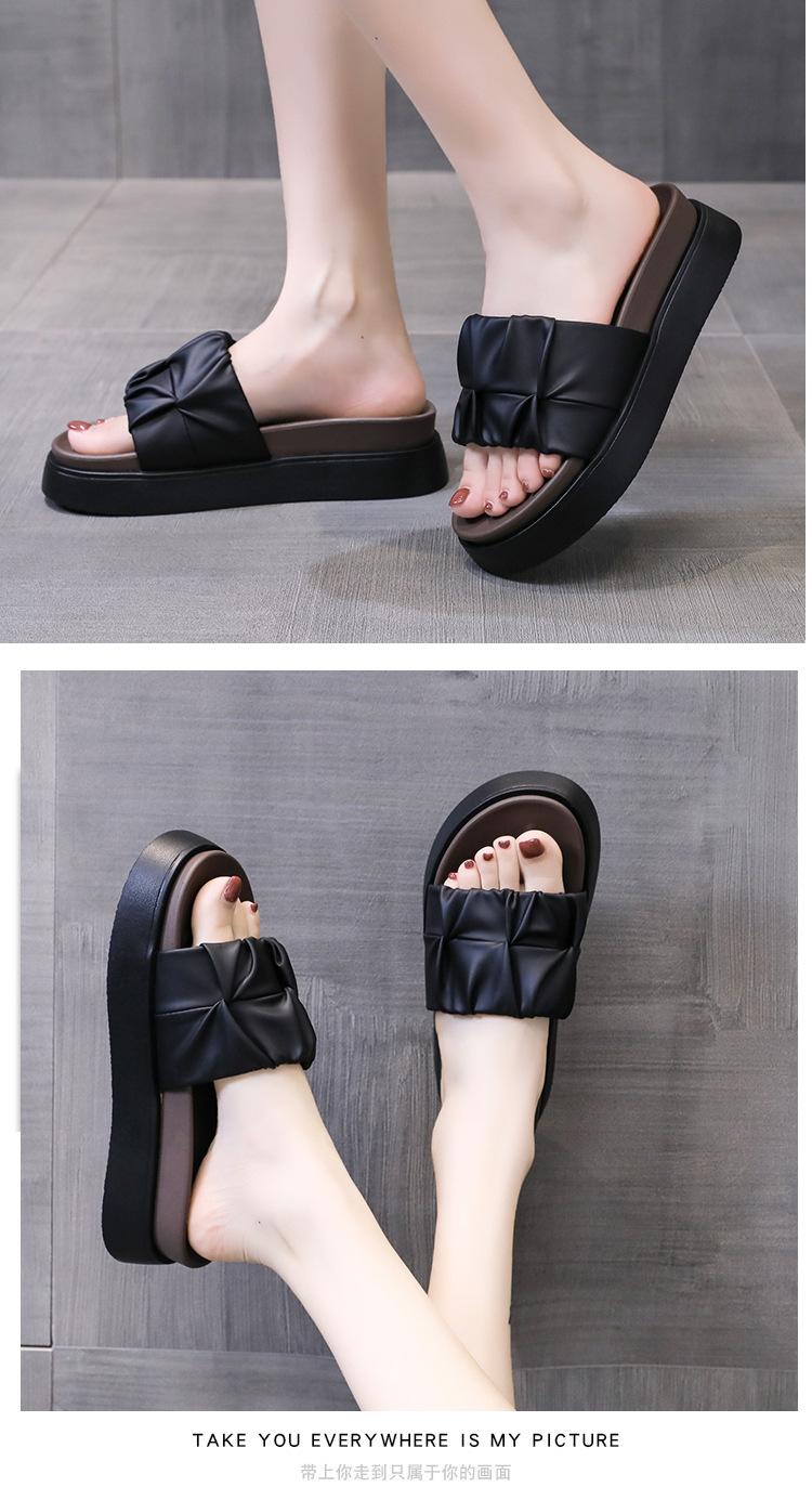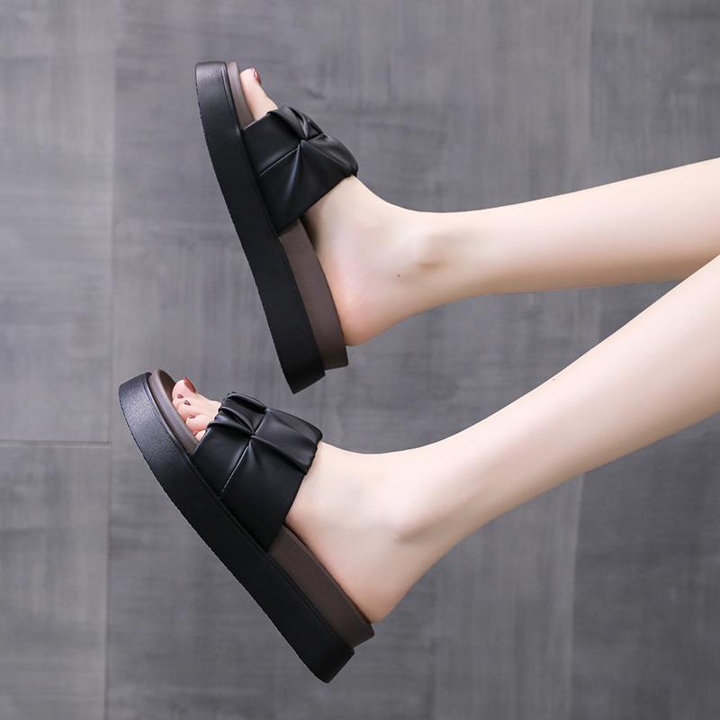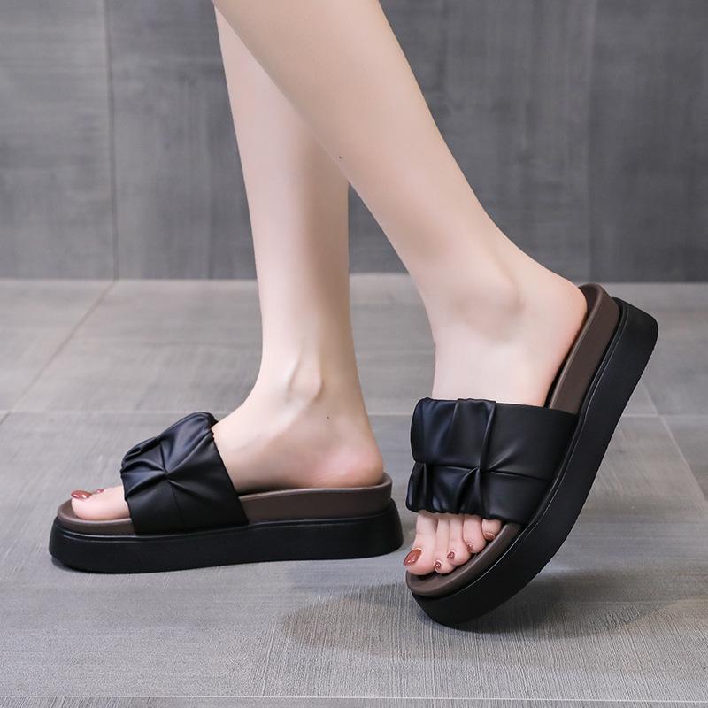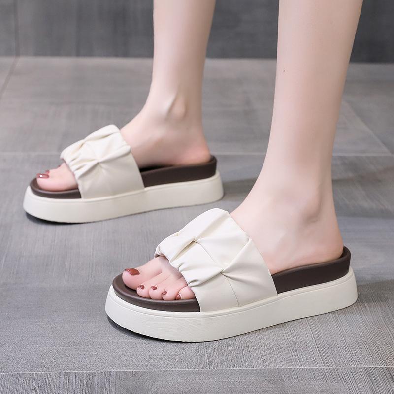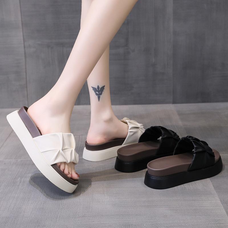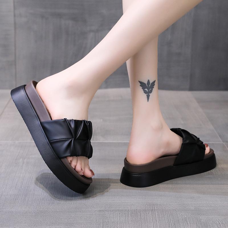 Sandalias y pantuflas para mujer verano para exteriores 2025 nuevo zapatos de playa de suela gruesa viento de hadas plisado suela suave pantuflas de playa