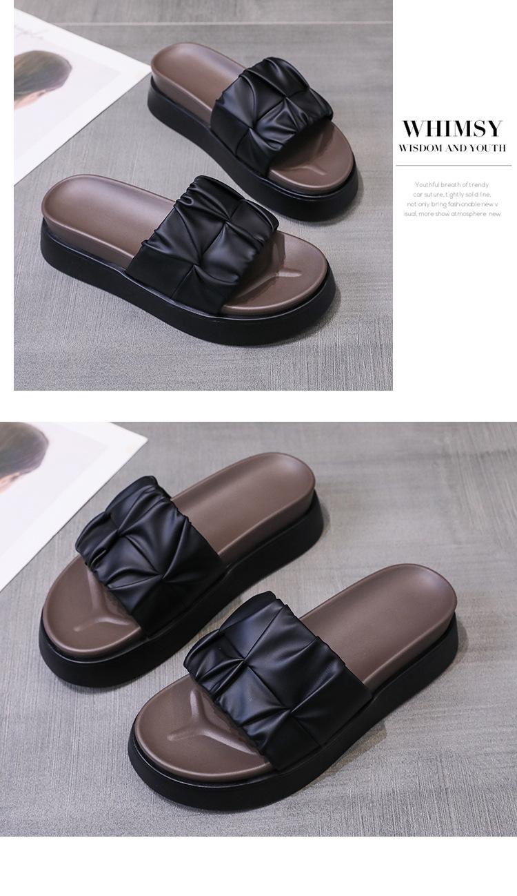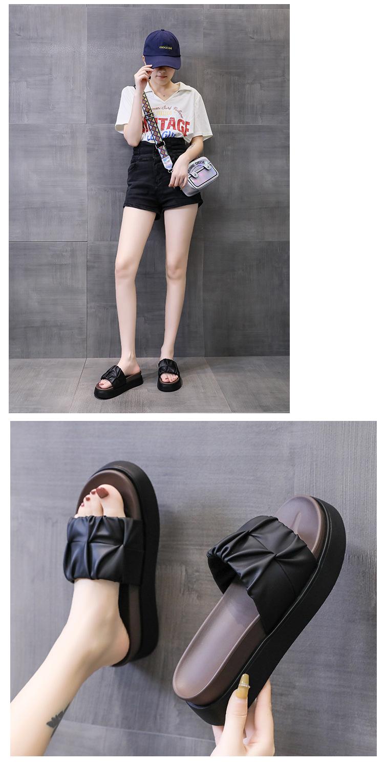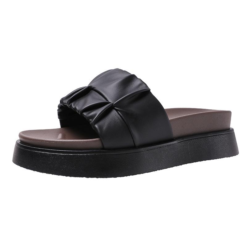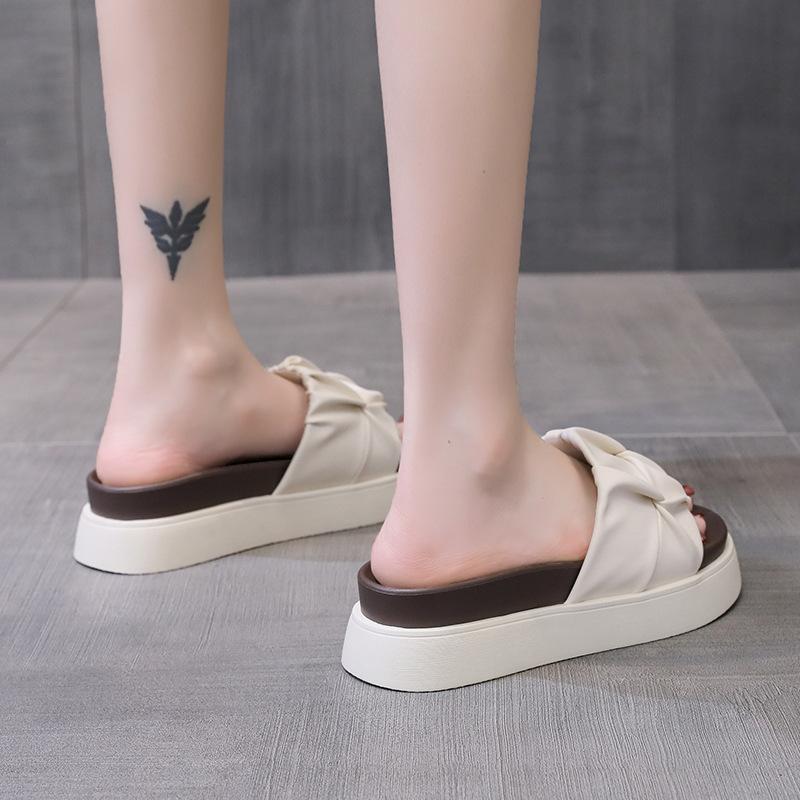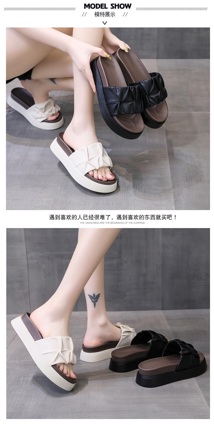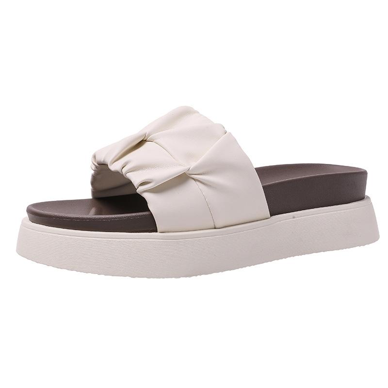 Sandalias y pantuflas para mujer verano para exteriores 2025 nuevo zapatos de playa de suela gruesa viento de hadas plisado suela suave pantuflas de playa