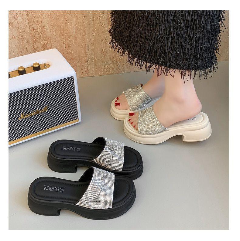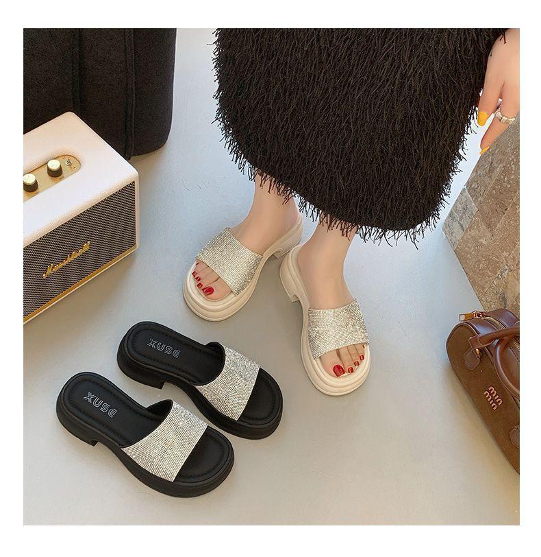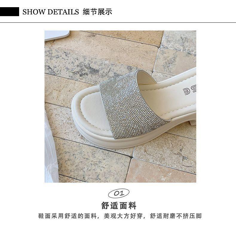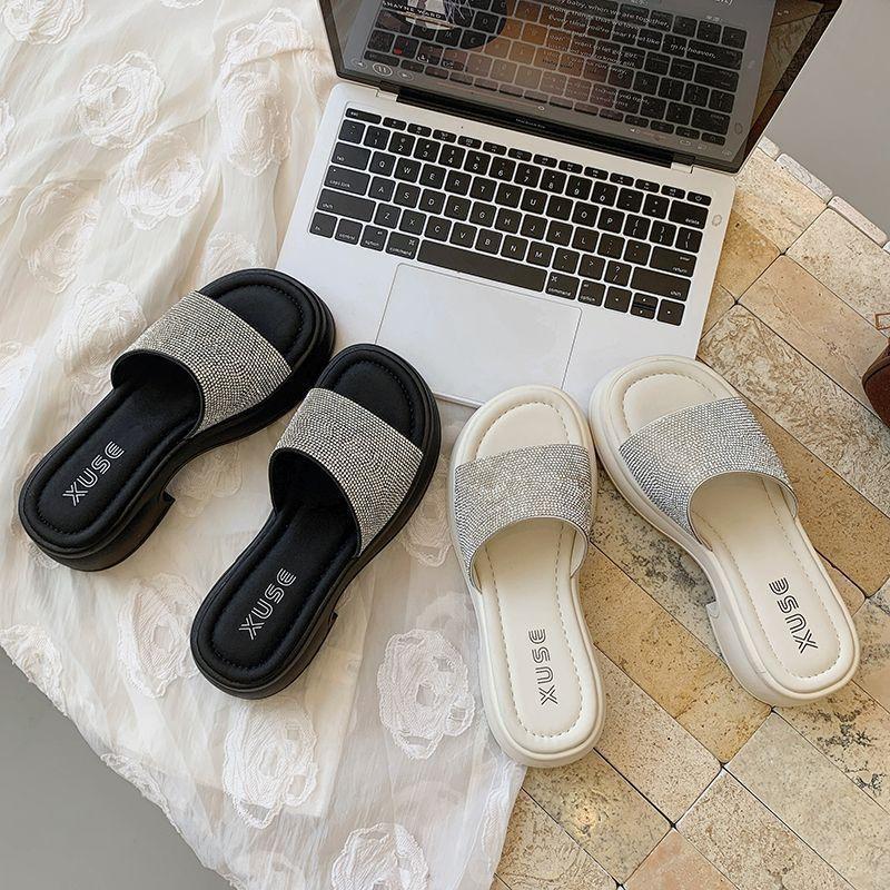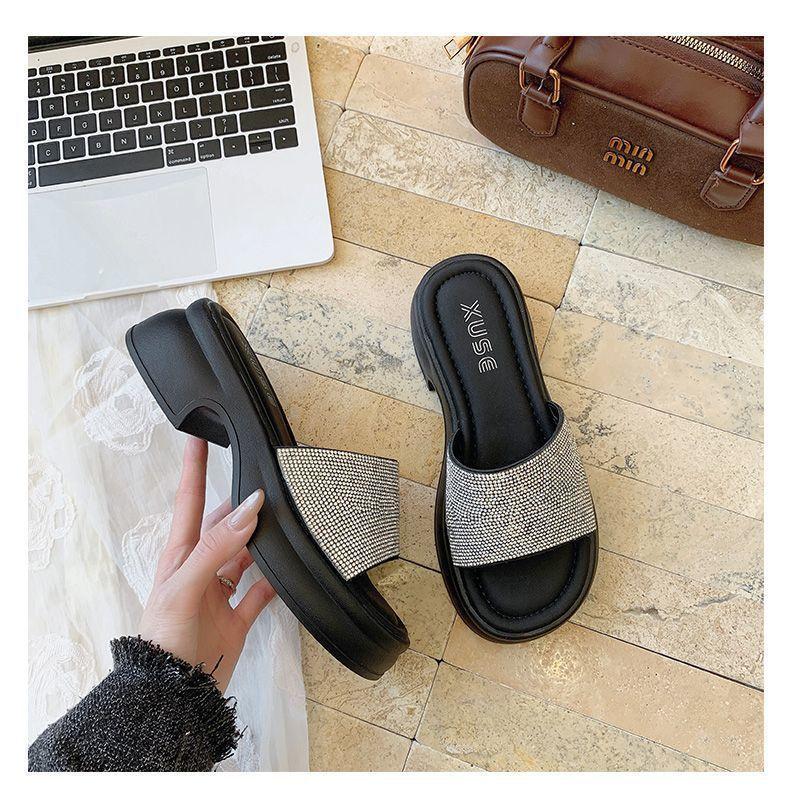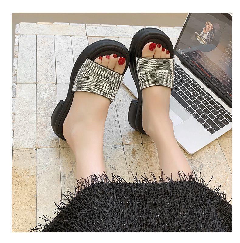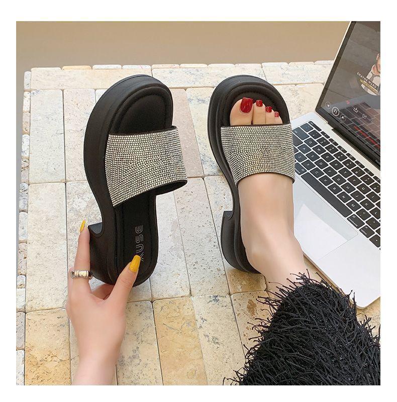 Zapatillas de Plataforma con Pedrería de Moda Zapatillas de Verano para Mujer 2025 Nuevas Red de Playa Zapatillas de Tira Única para Interior Antideslizantes Zapatillas Frescas