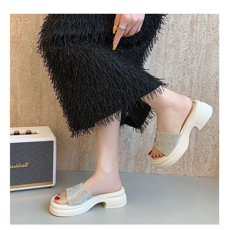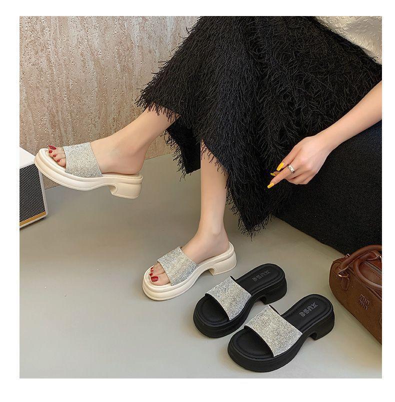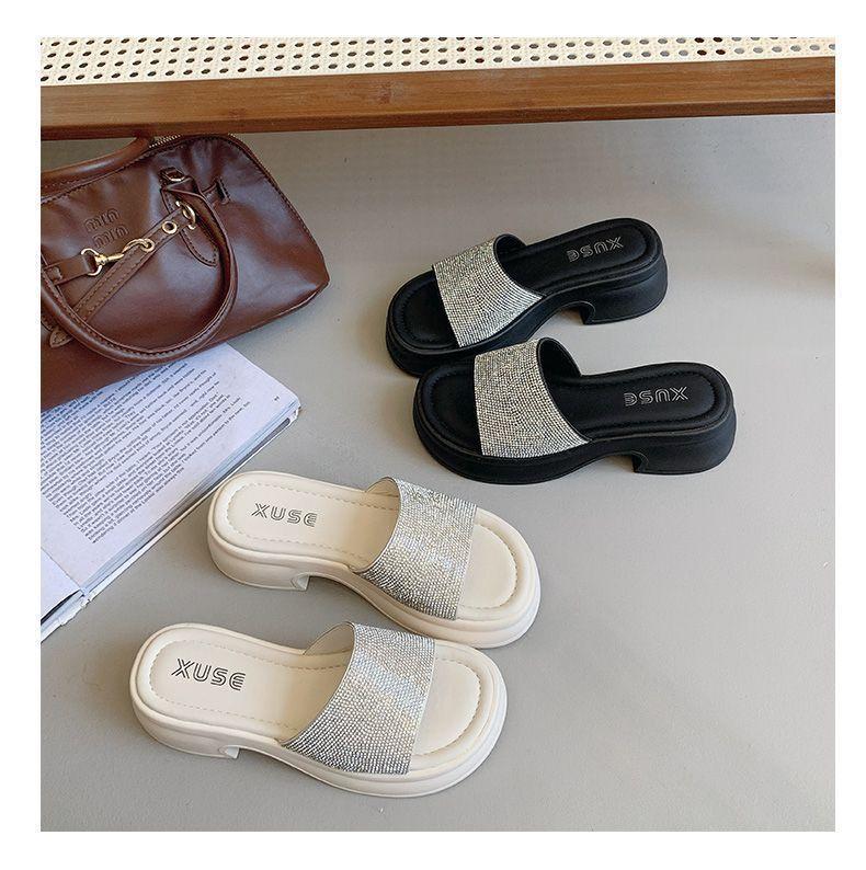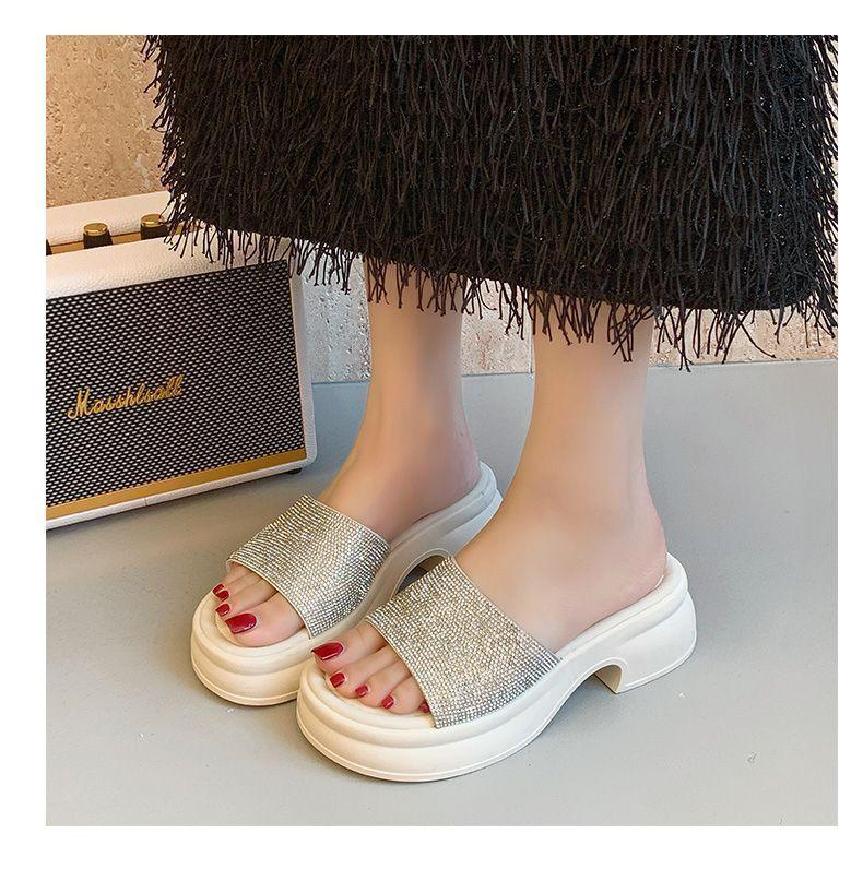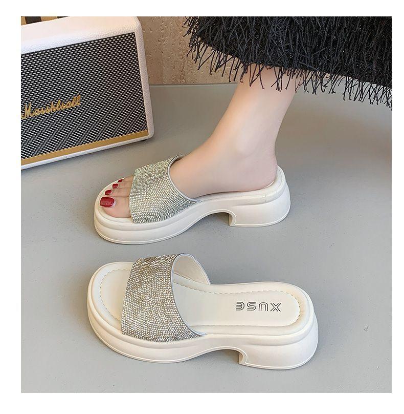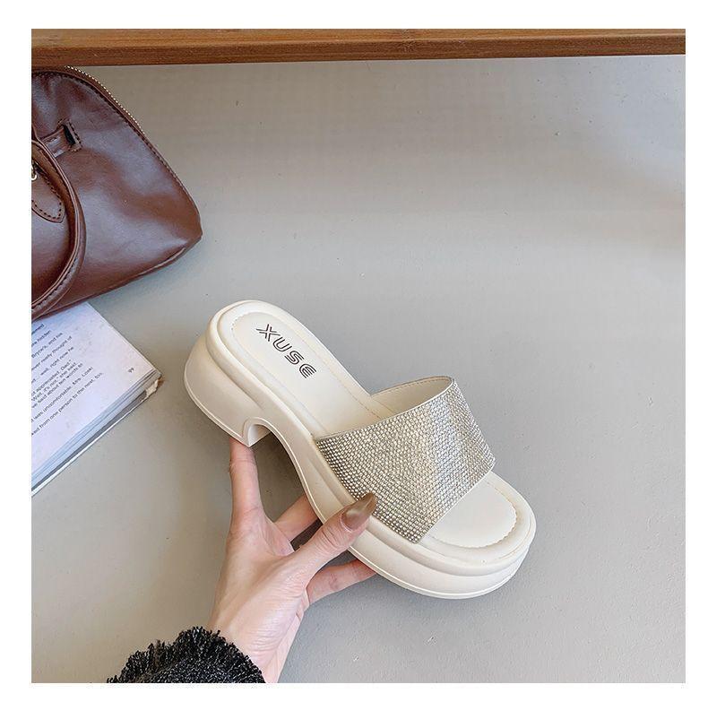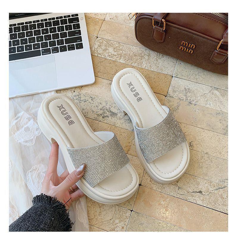 Zapatillas de Plataforma con Pedrería de Moda Zapatillas de Verano para Mujer 2025 Nuevas Red de Playa Zapatillas de Tira Única para Interior Antideslizantes Zapatillas Frescas