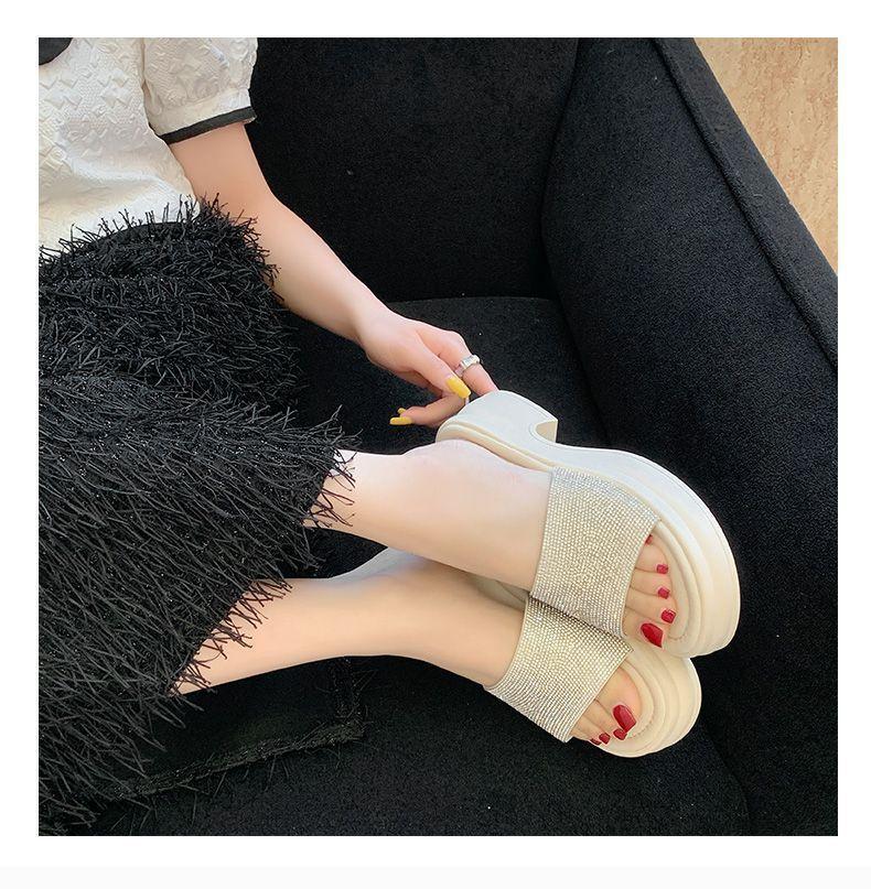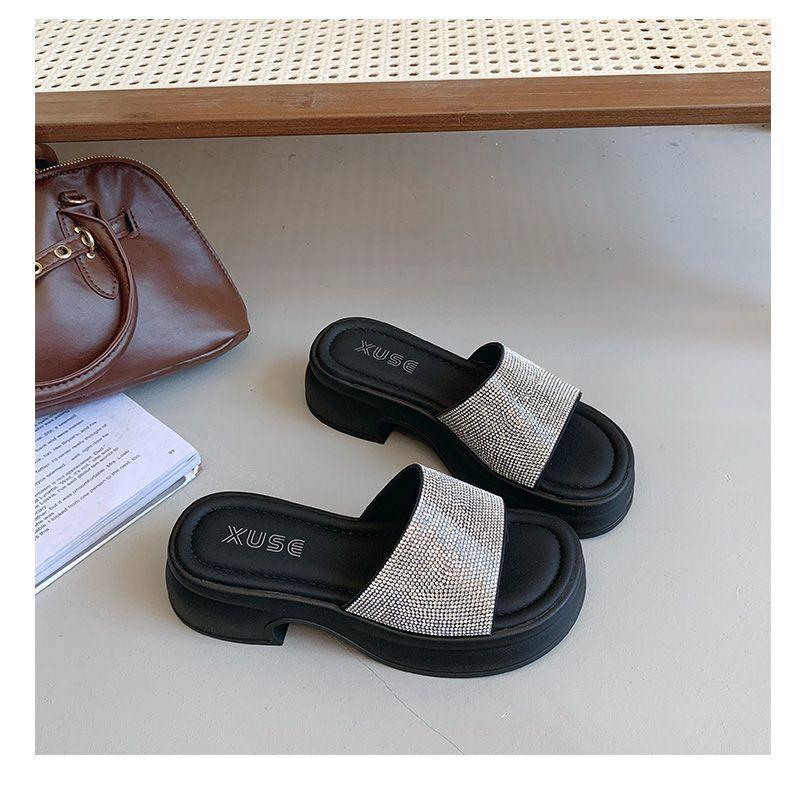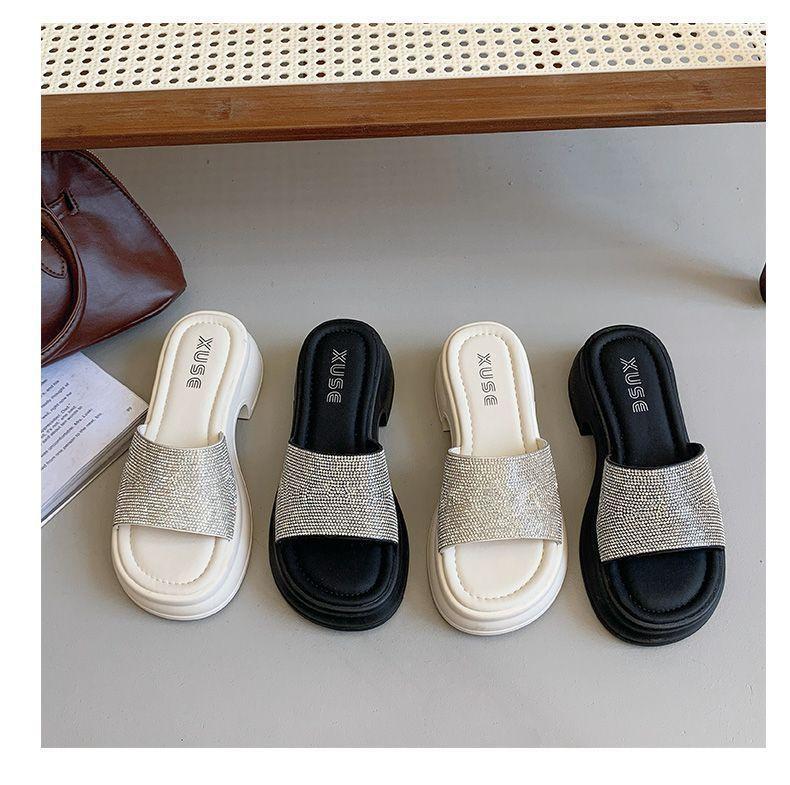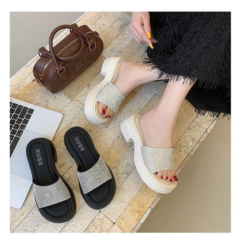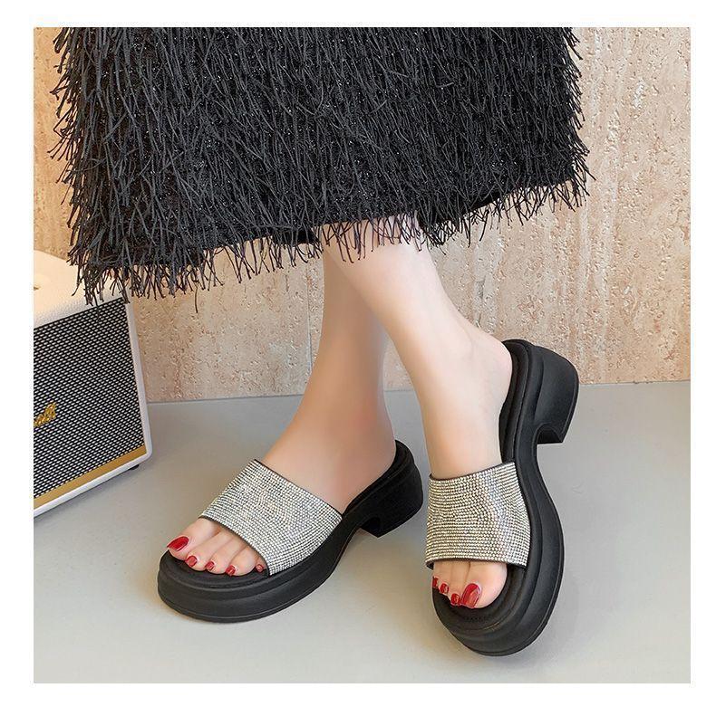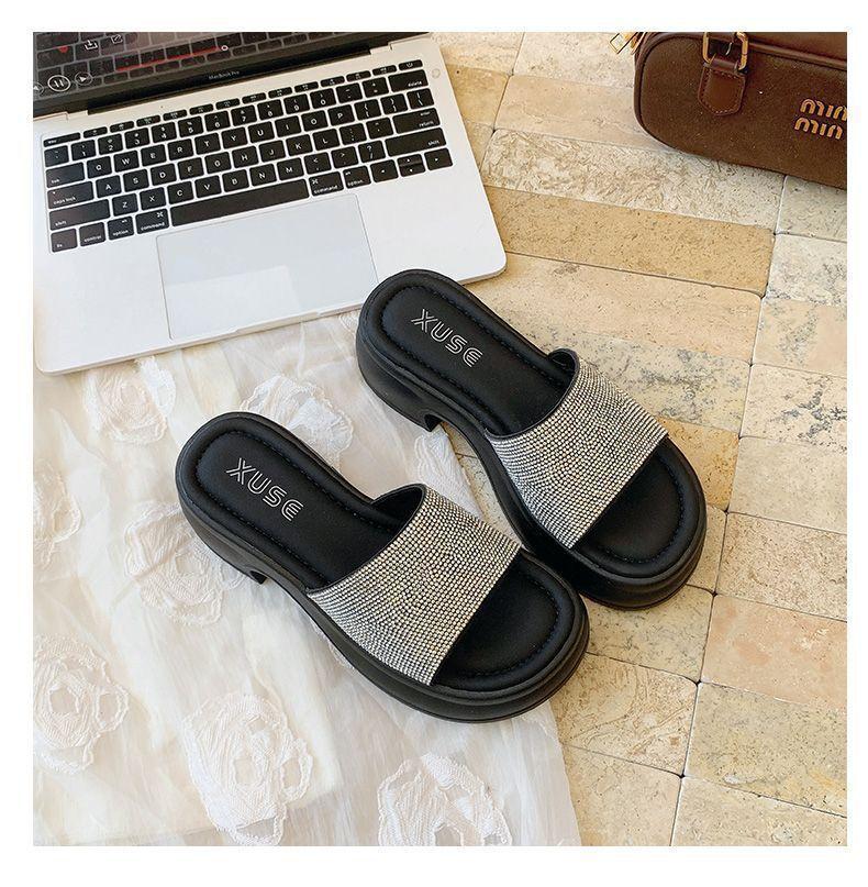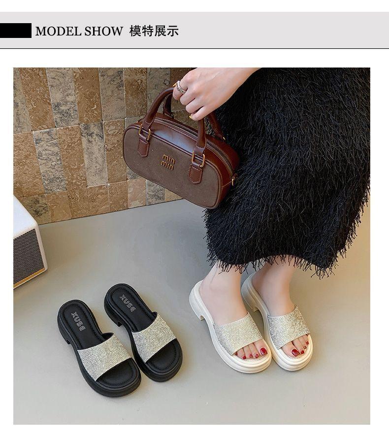 Zapatillas de Plataforma con Pedrería de Moda Zapatillas de Verano para Mujer 2025 Nuevas Red de Playa Zapatillas de Tira Única para Interior Antideslizantes Zapatillas Frescas
