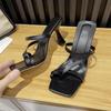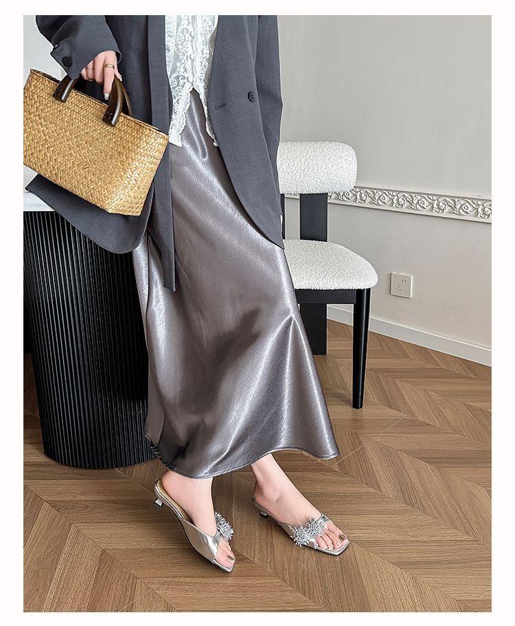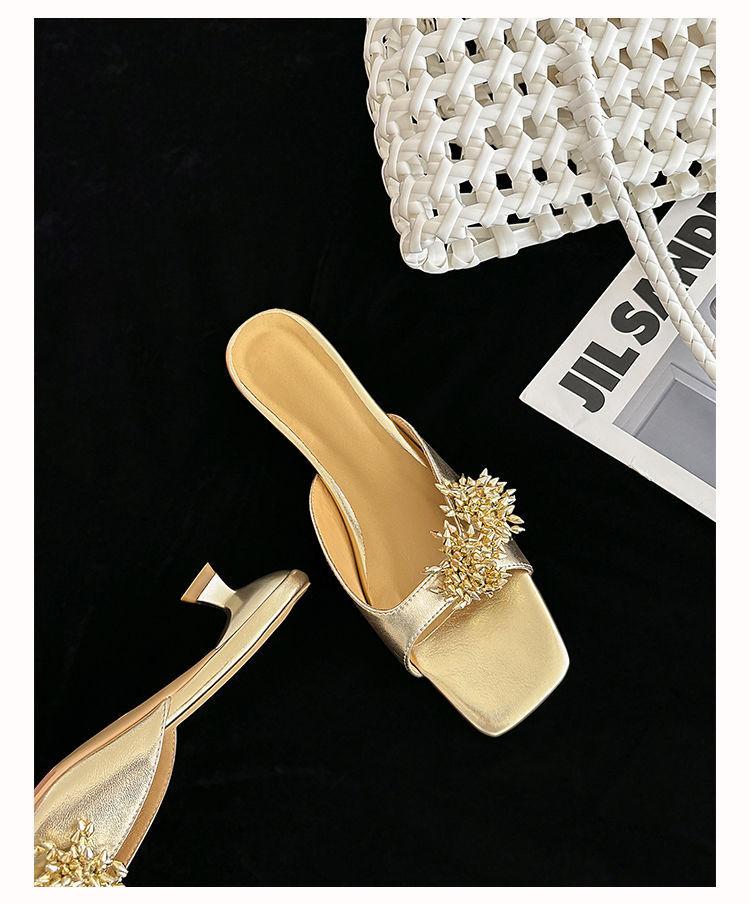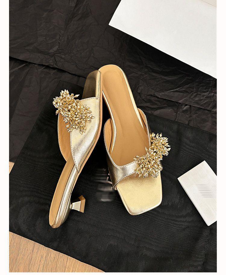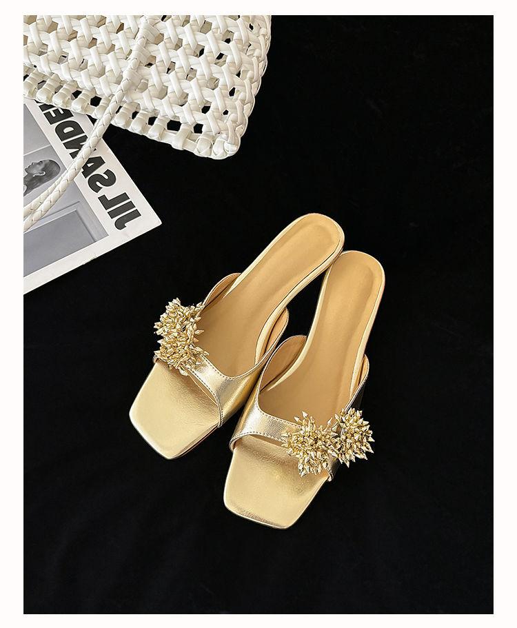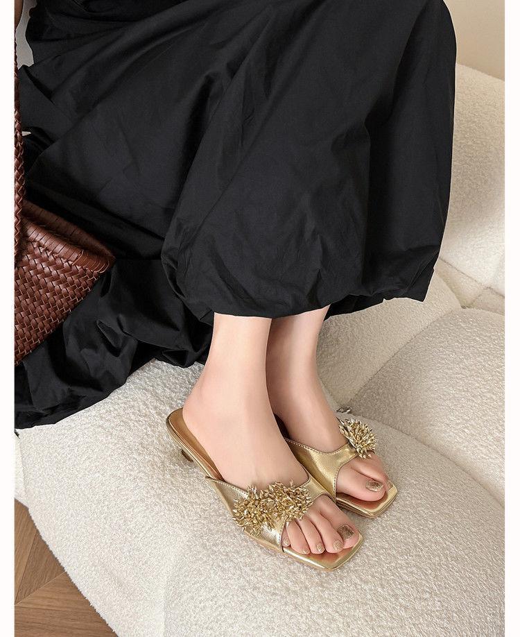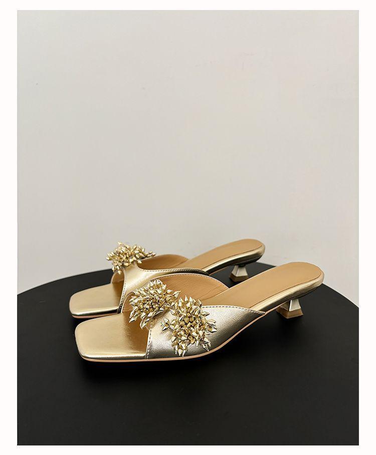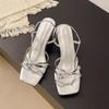 Hermosas Sandalias Florales Plateadas de Estilo Francés para Mujer 2025 Verano Nuevo Versátil Ultra-Cómodo Punta Cuadrada Punta Abierta Sandalias de Tacón Alto