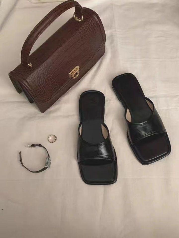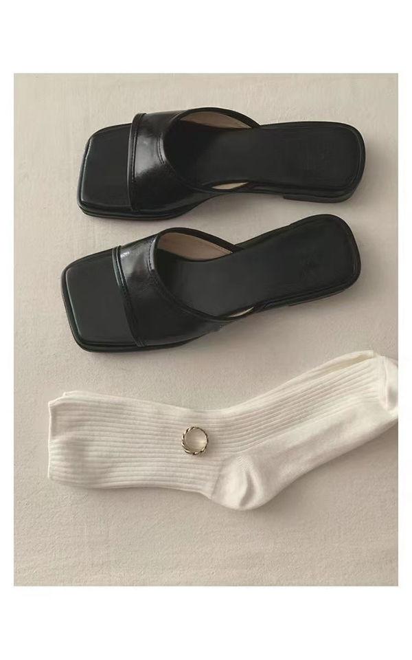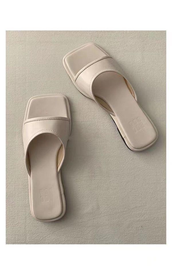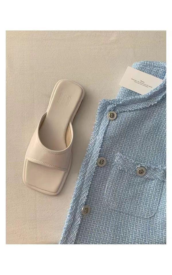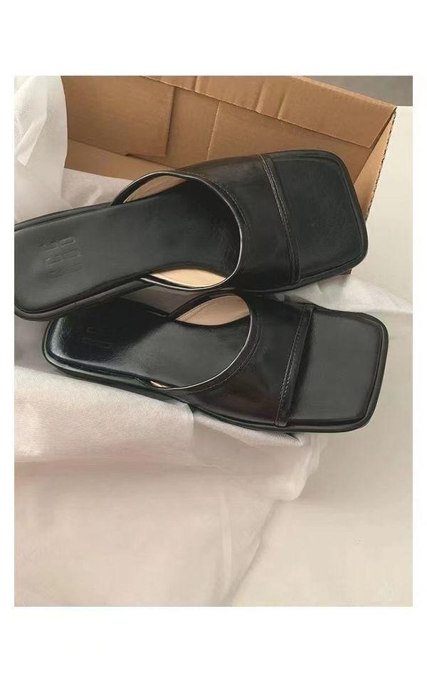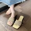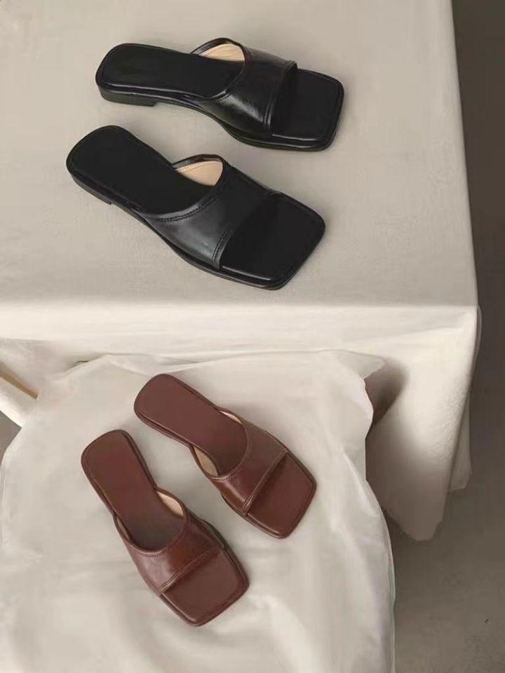 Pantuflas de Mujer 2025 Verano Nuevo Zapatos de Mujer Verano Estilo Coreano Punta Cuadrada Sandalias Boca de Pescado Ropa Exterior Plana para Mujer