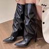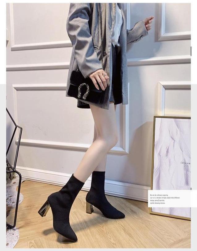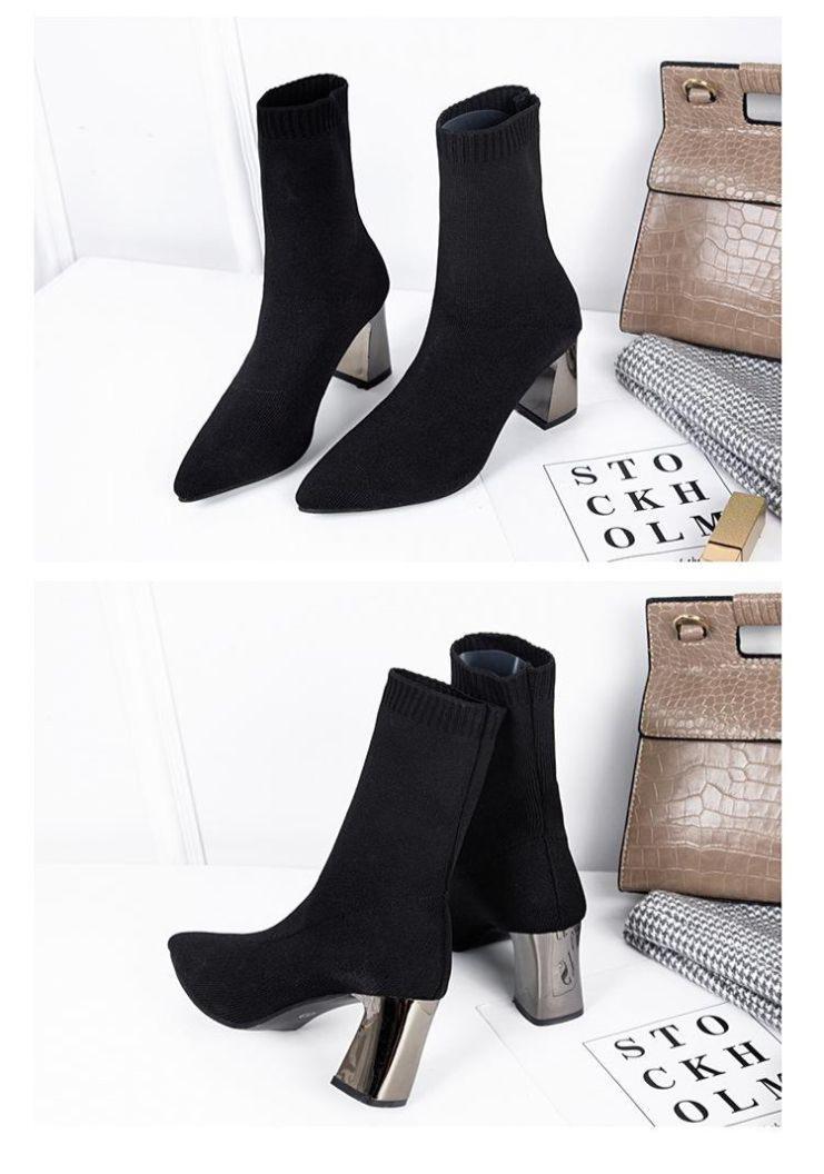 Celebridad de internet estilo hot botas negras cálidas de una línea para mujer cómodas moda tacones altos puntiagudos damas casual tacones gruesos