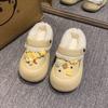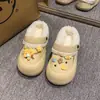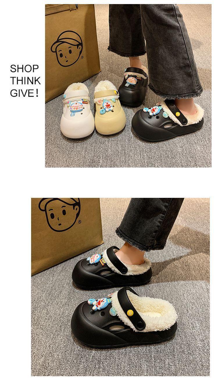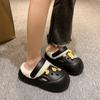 Pantuflas de felpa mullidas antideslizantes con suela gruesa para aumentar la altura para mujer, pantuflas de algodón cálidas y lindas de dibujos animados rojo de internet 2025 Invierno Nuevo