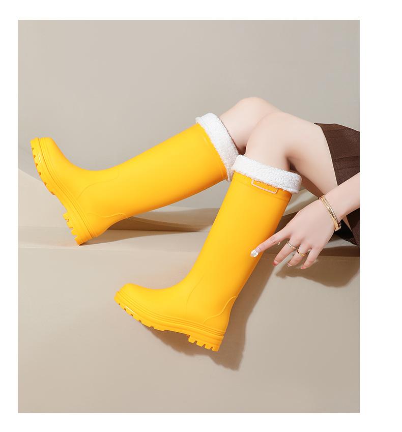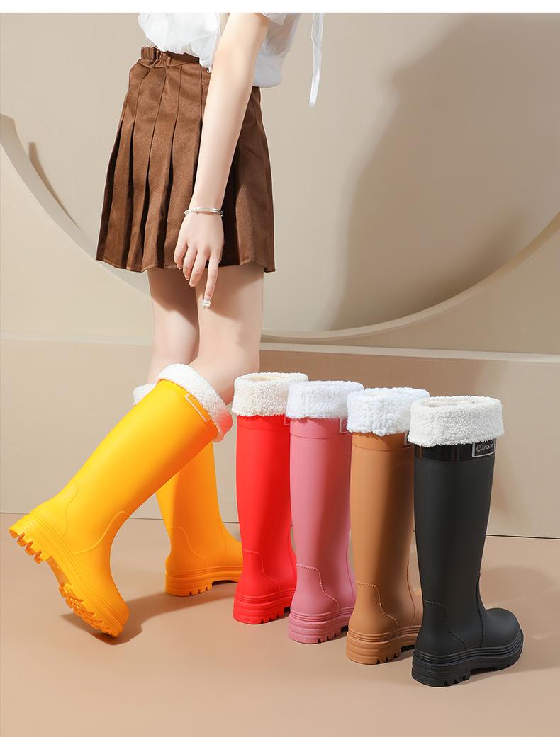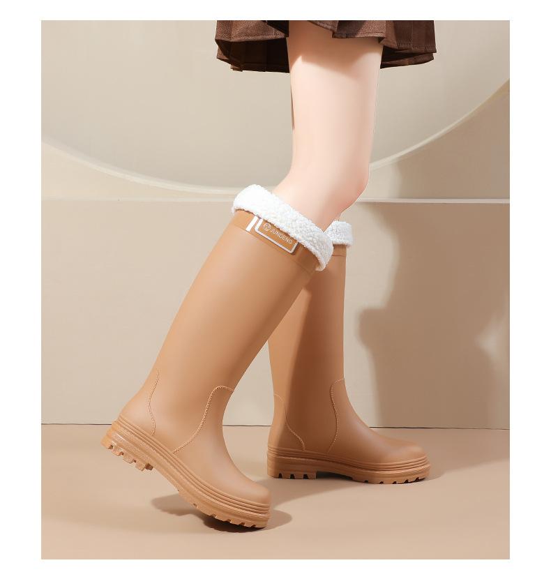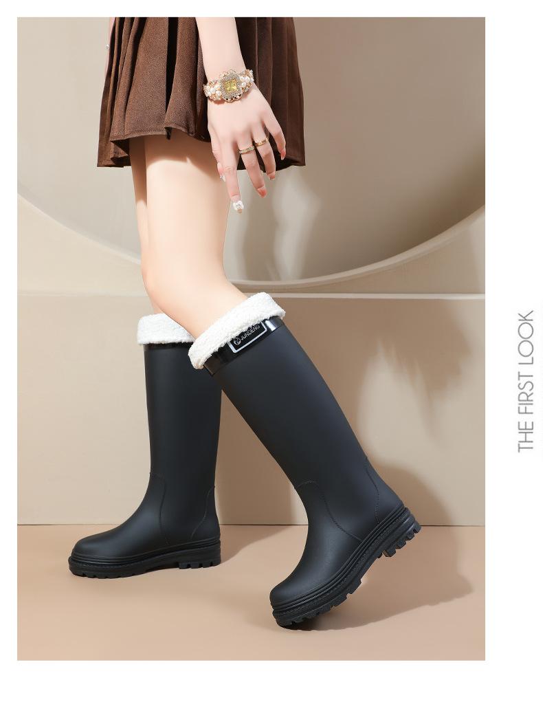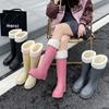 Botas de lluvia altas para mujer, botas de lluvia con forro polar, ropa exterior de moda, nuevo estilo, zapatos para agua, suela gruesa, antideslizantes, impermeables, para buscar conchas en la playa, botas de goma de tubo largo