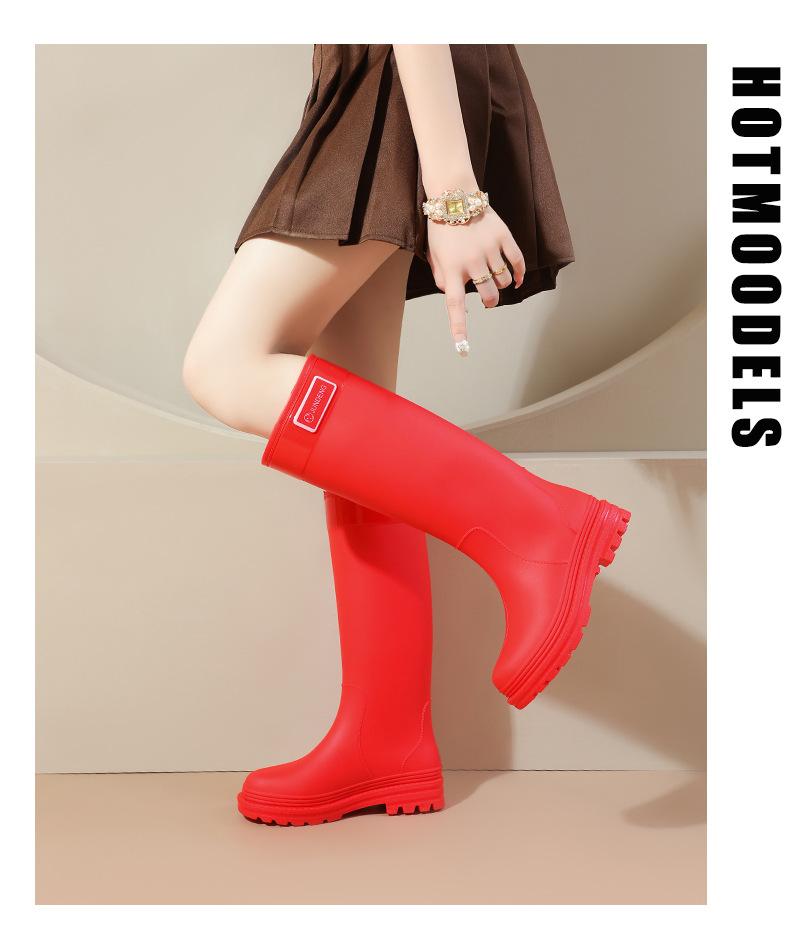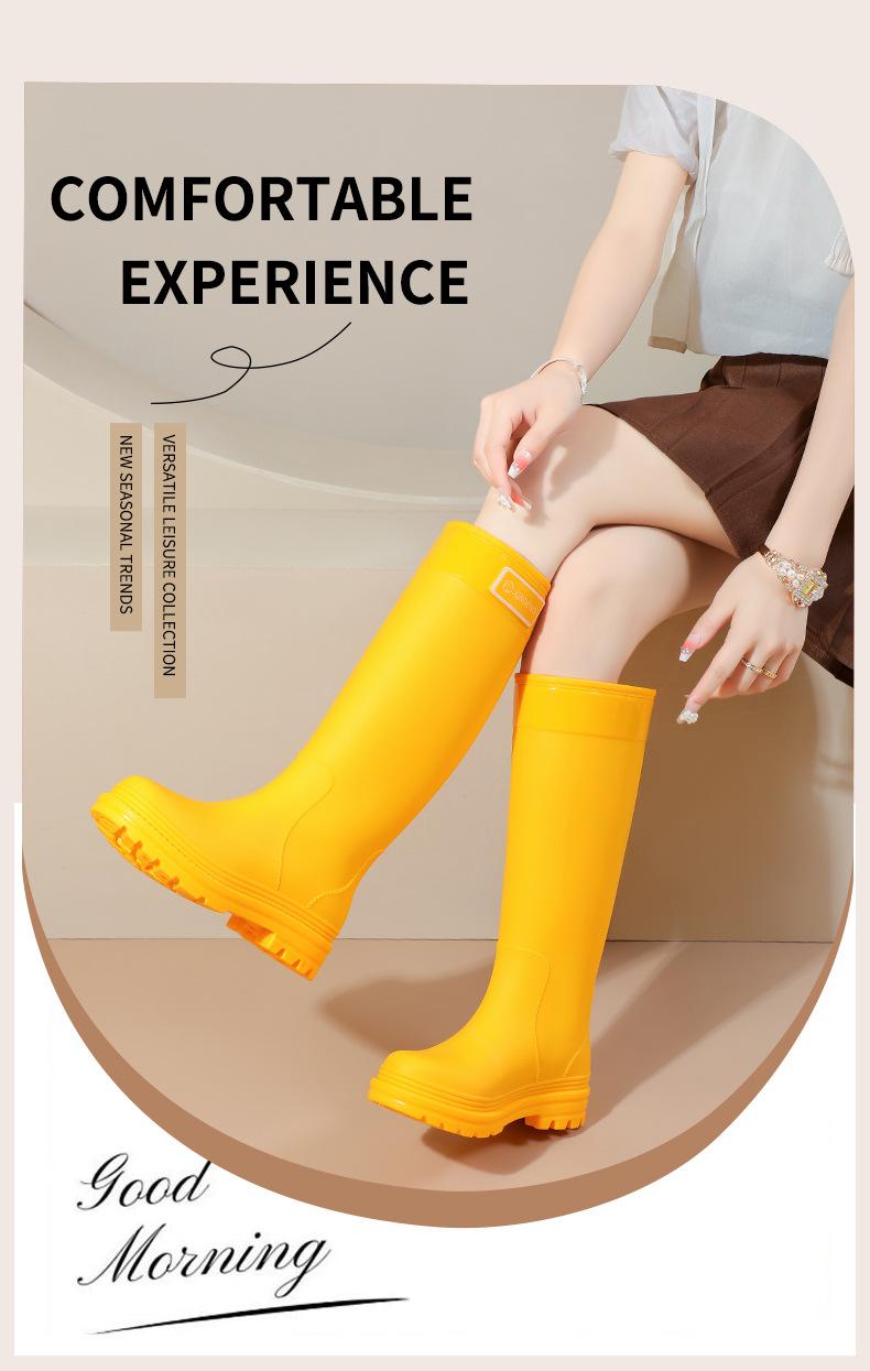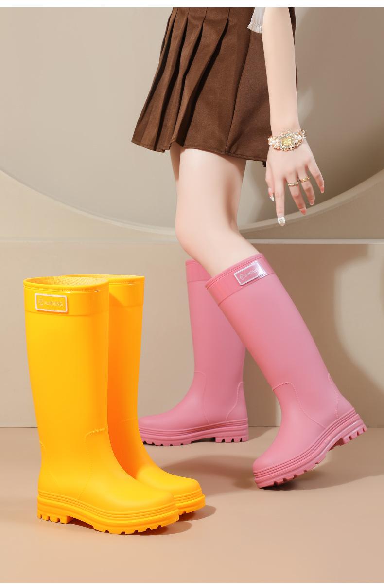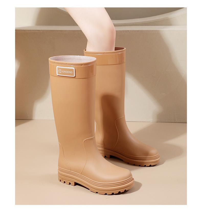 Botas de lluvia altas para mujer, botas de lluvia con forro polar, ropa exterior de moda, nuevo estilo, zapatos para agua, suela gruesa, antideslizantes, impermeables, para buscar conchas en la playa, botas de goma de tubo largo