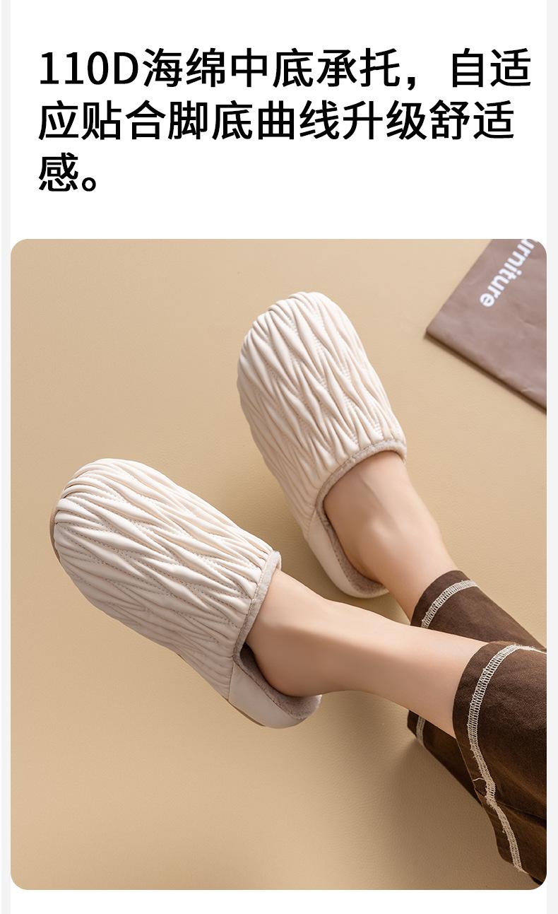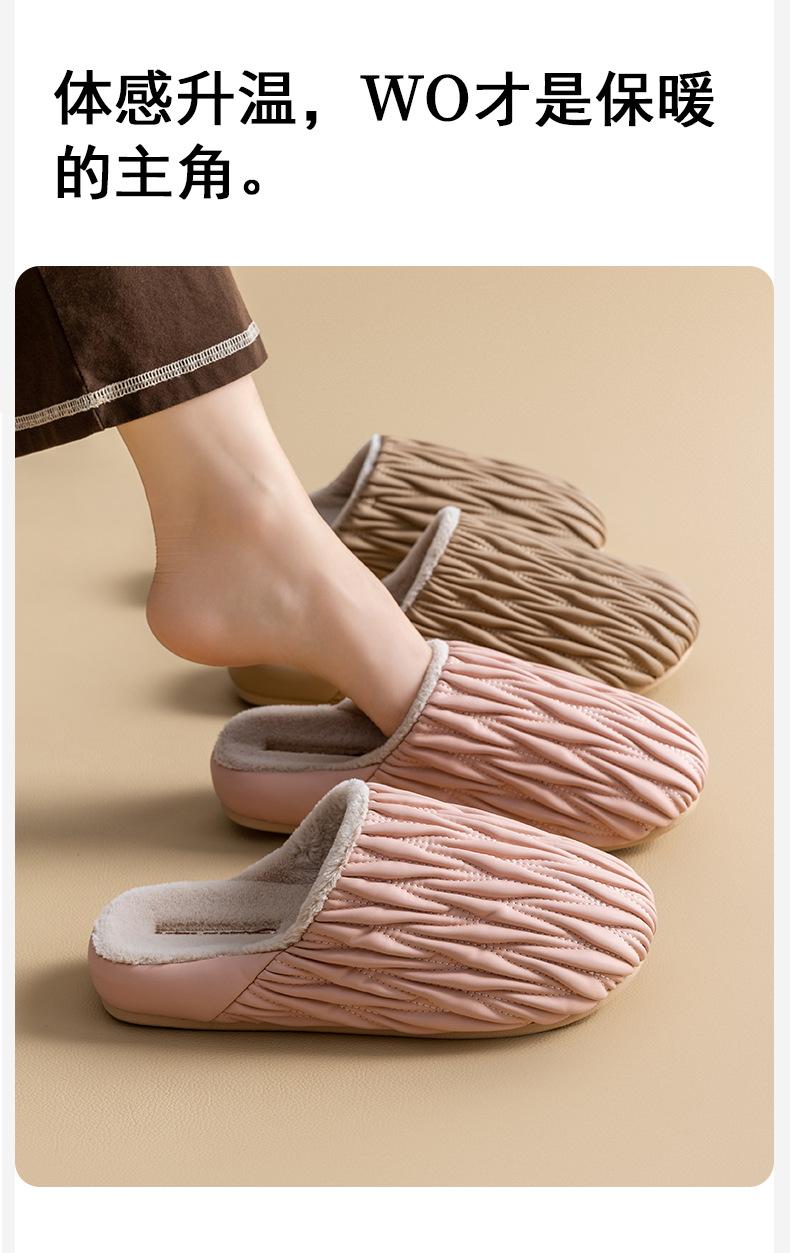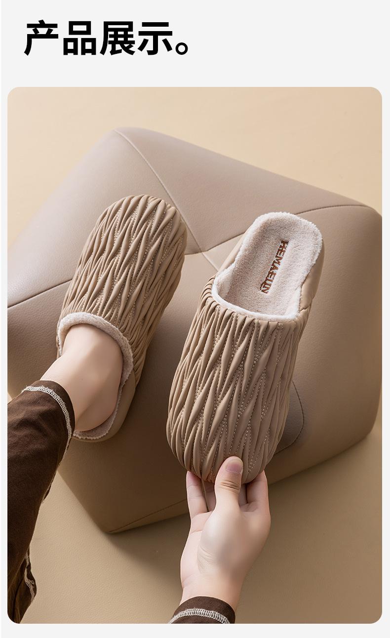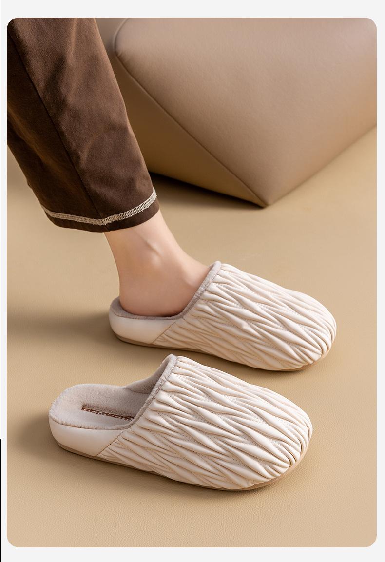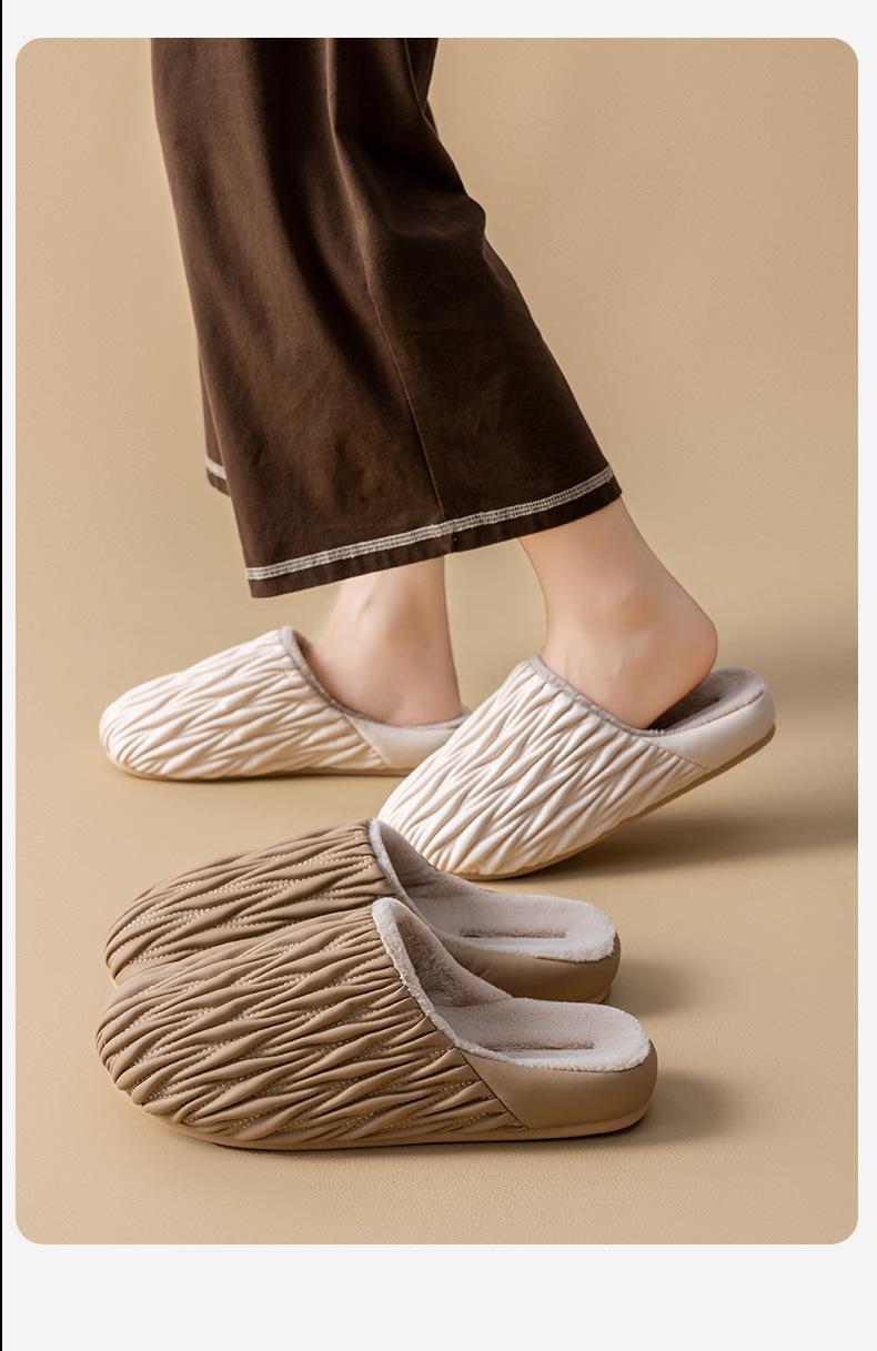 2025 Nuevas Pantuflas de Algodón Plisado para Mujer Otoño Invierno Interior Hogar Antideslizantes Impermeables Cálidas Hogar Felpa Cuero Pantuflas Hombres