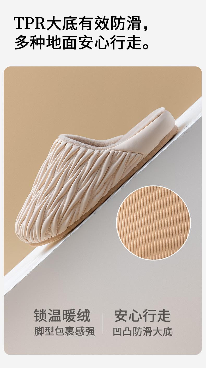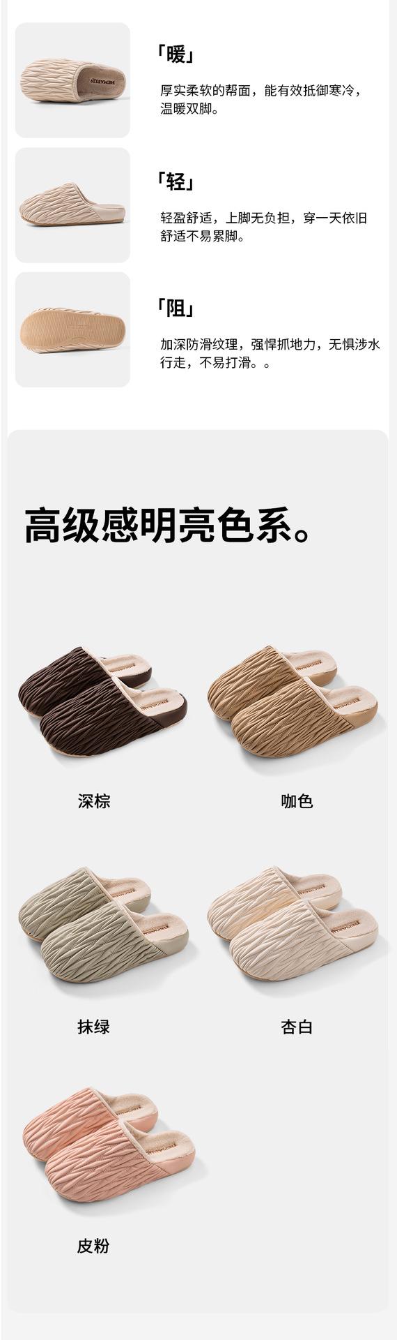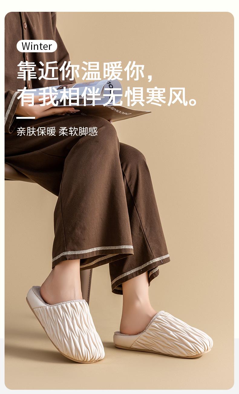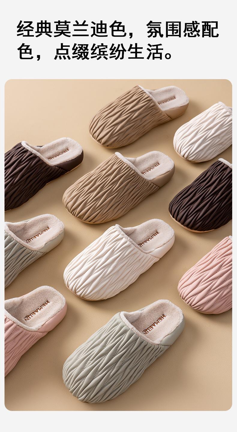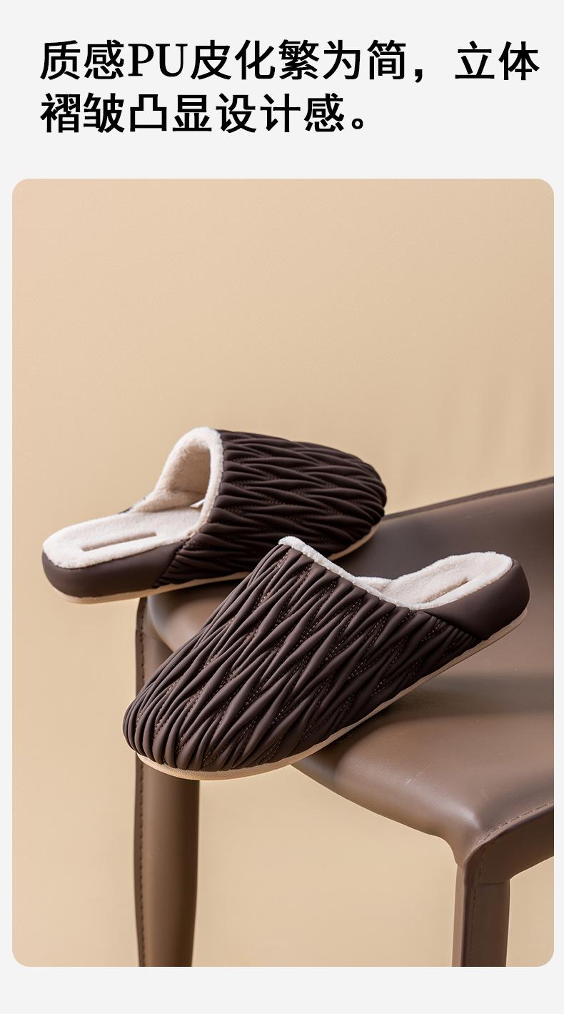 2025 Nuevas Pantuflas de Algodón Plisado para Mujer Otoño Invierno Interior Hogar Antideslizantes Impermeables Cálidas Hogar Felpa Cuero Pantuflas Hombres