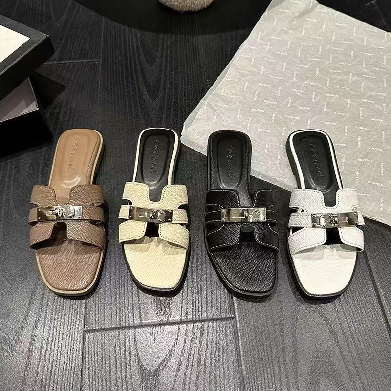 Sandalias de Moda Versátiles de Una Tira Zapatos de Playa de Moda Verano 2025 Nuevas Pantuflas Planas para Mujer