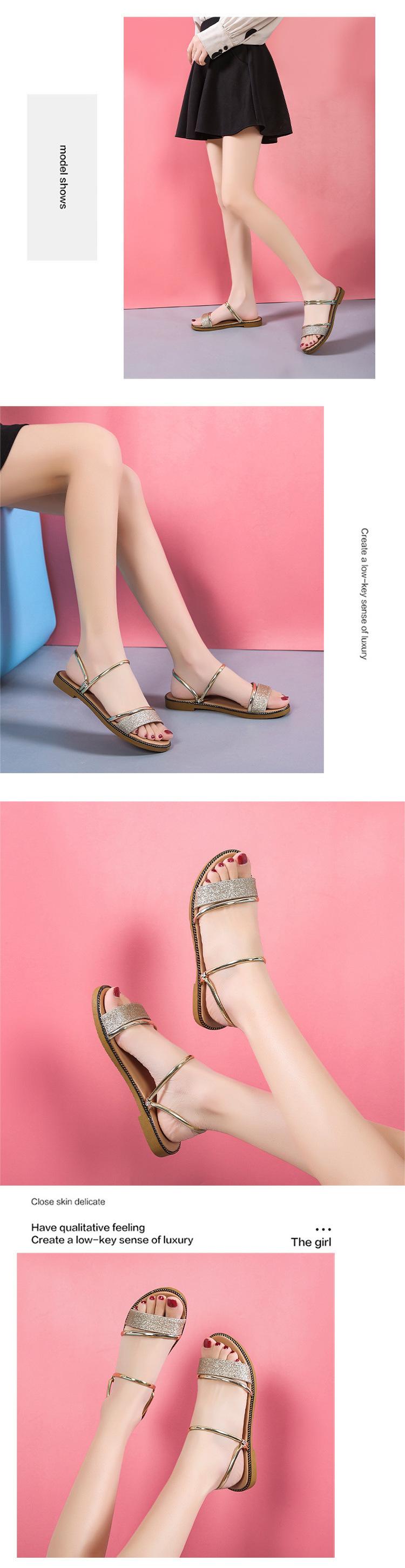 Sandalias de Moda de Dos Vías Nuevo Verano Celebridad de Internet Versátil Pedrería Elegante Plano Exterior Zapatos de Mujer Antideslizantes Estilo Coreano Playa