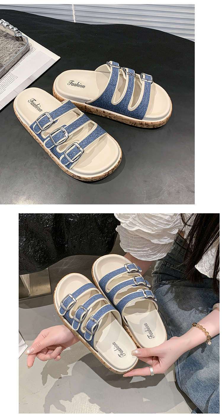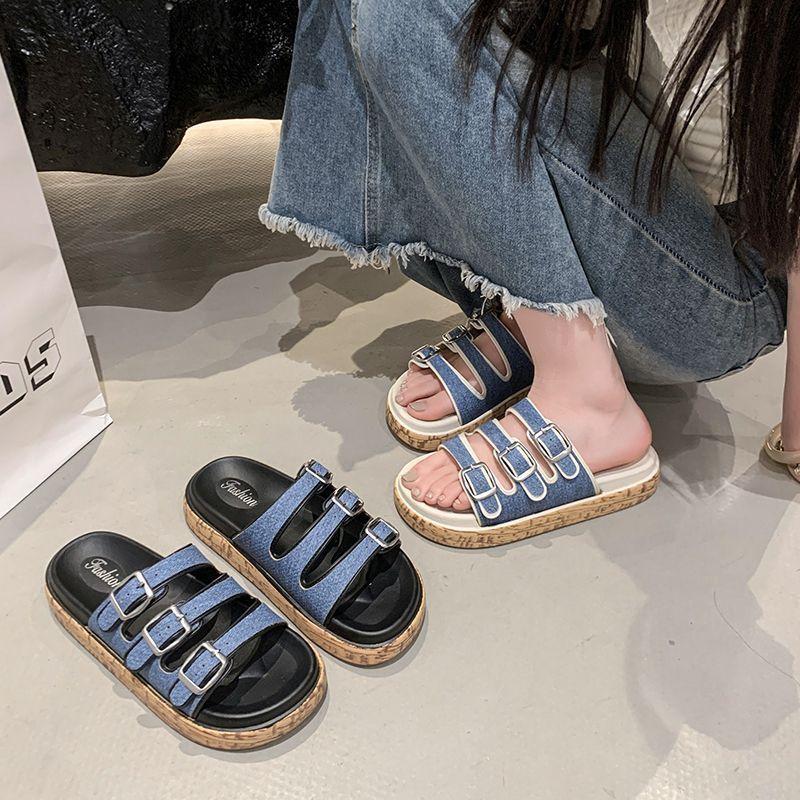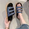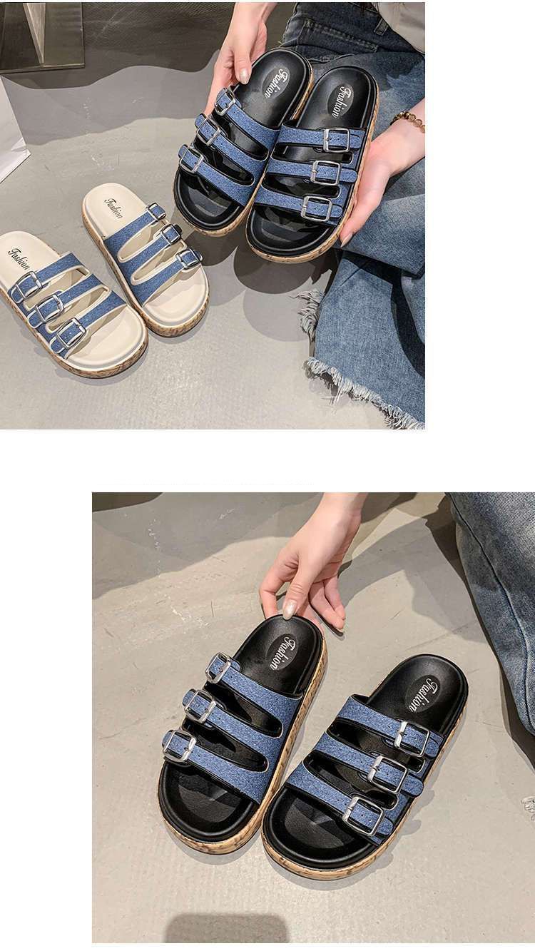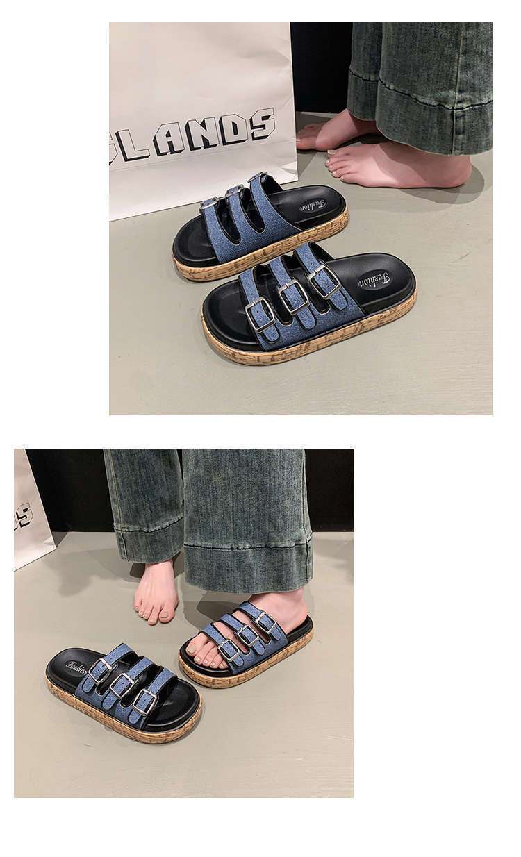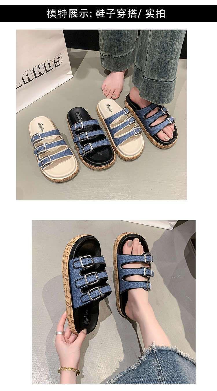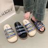2025 nueva moda retro versátiles sandalias de hebilla de una correa para mujer moda sandalias romanas de suela gruesa para exteriores