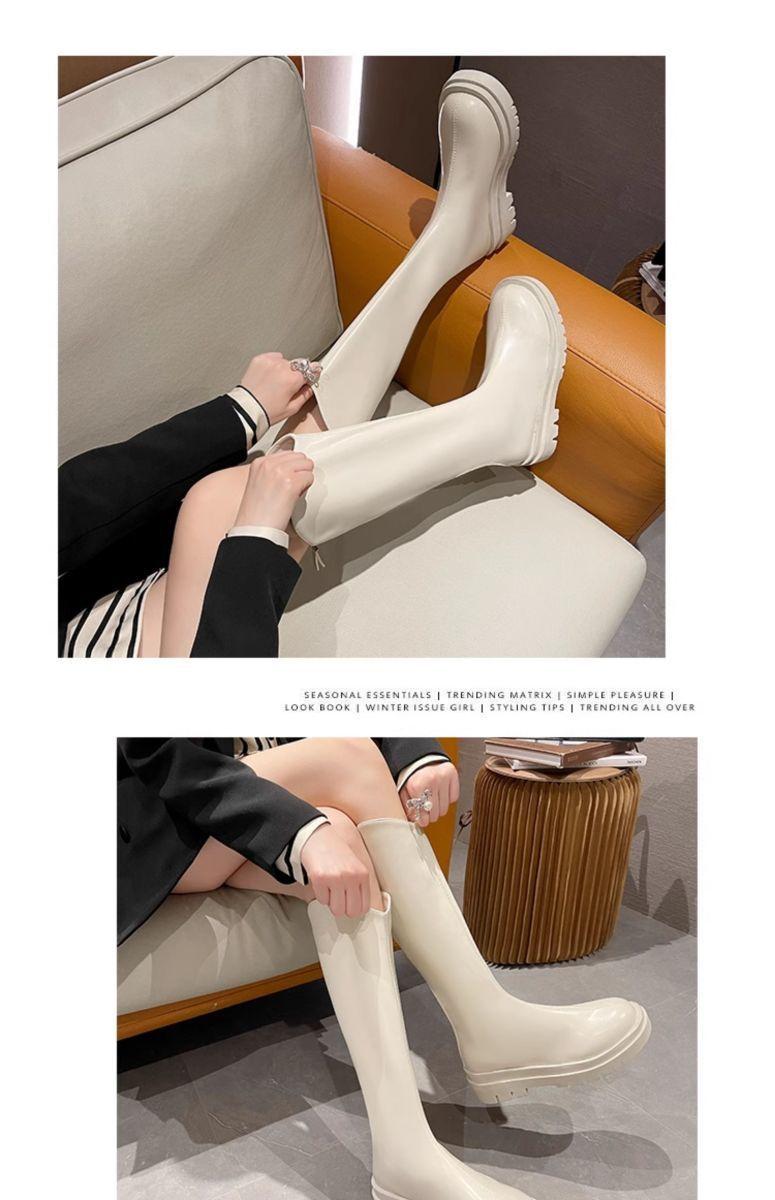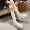 Botas de Mujer por Encima de la Rodilla 2025 Nuevo Otoño e Invierno Versátil Blanco Suela Gruesa Botas para Aumentar la Altura Botas Altas de Caballero